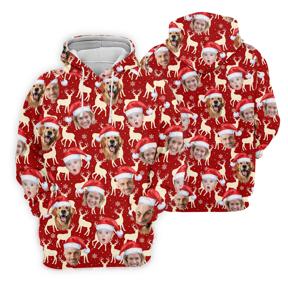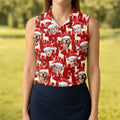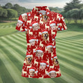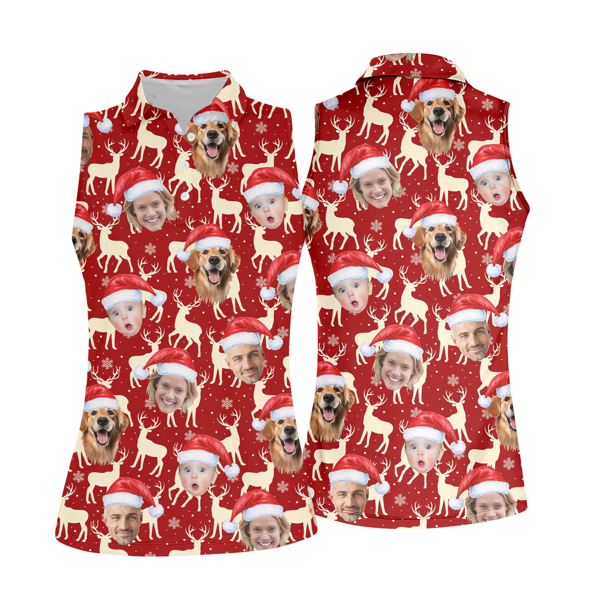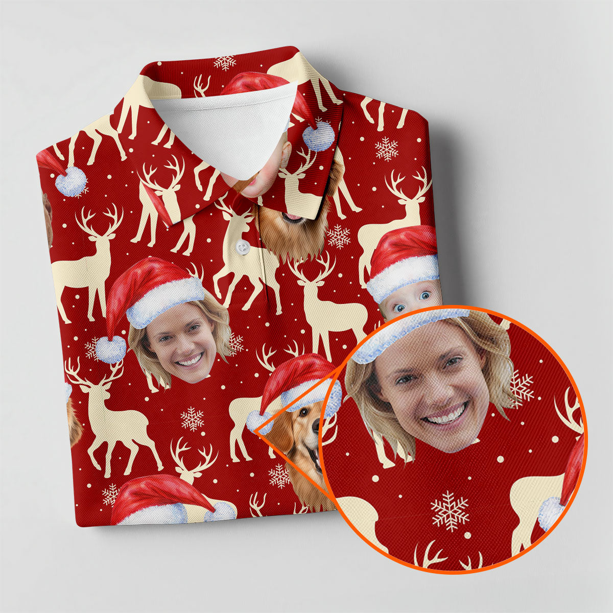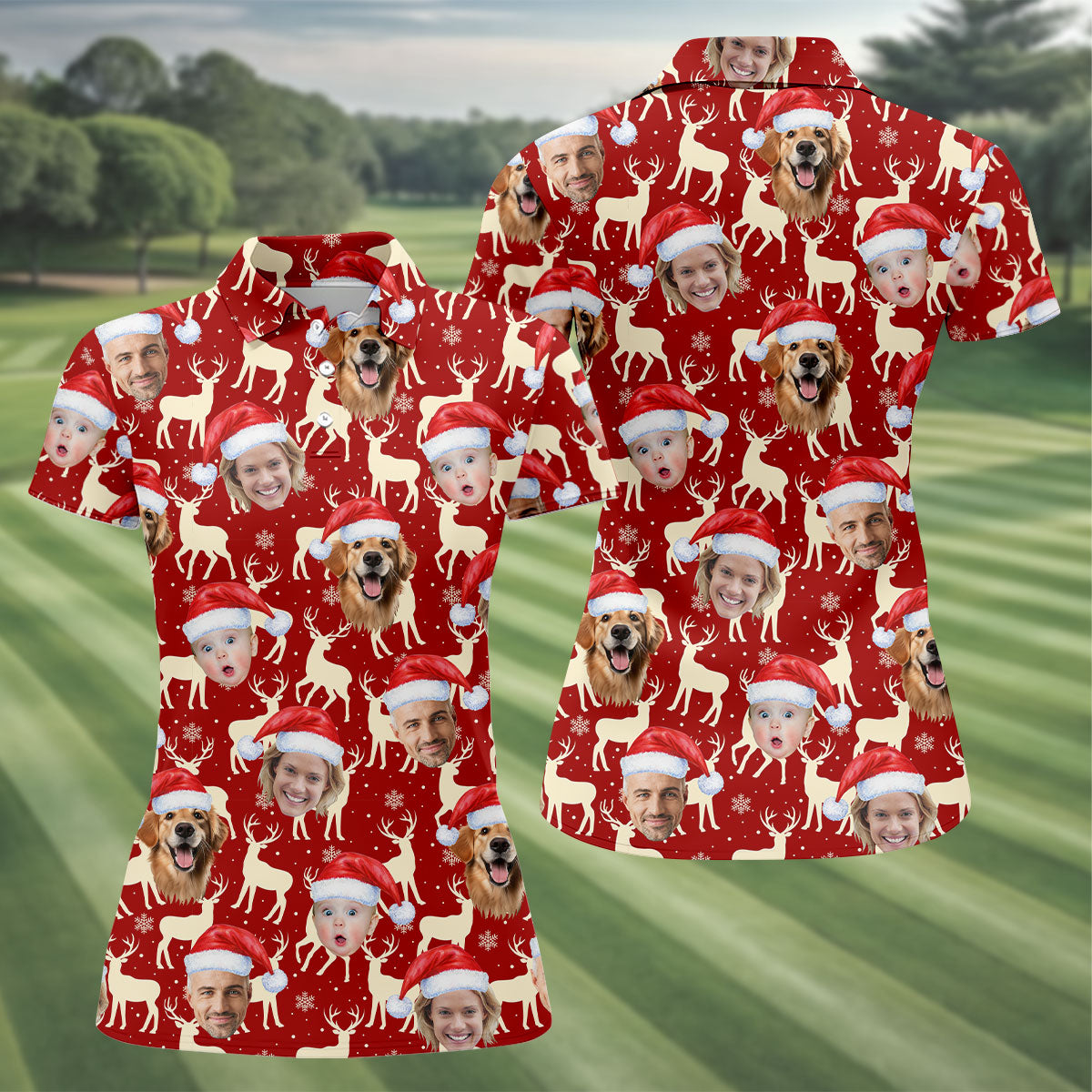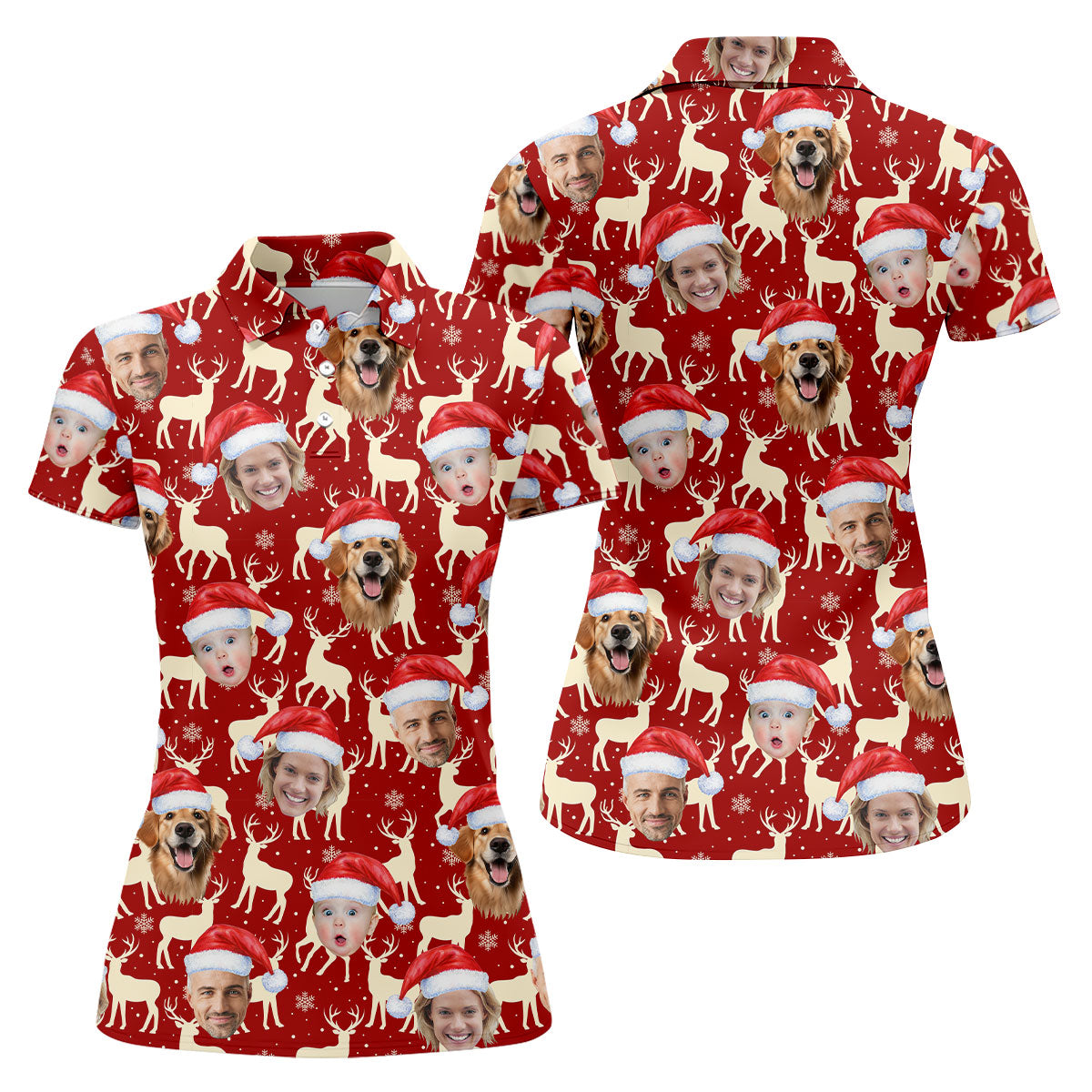 Custom Face Reindeer Pattern Beige And Red Christmas Golf Shirt, Ladies Golf Shirts, Golf Gifts For Women
