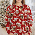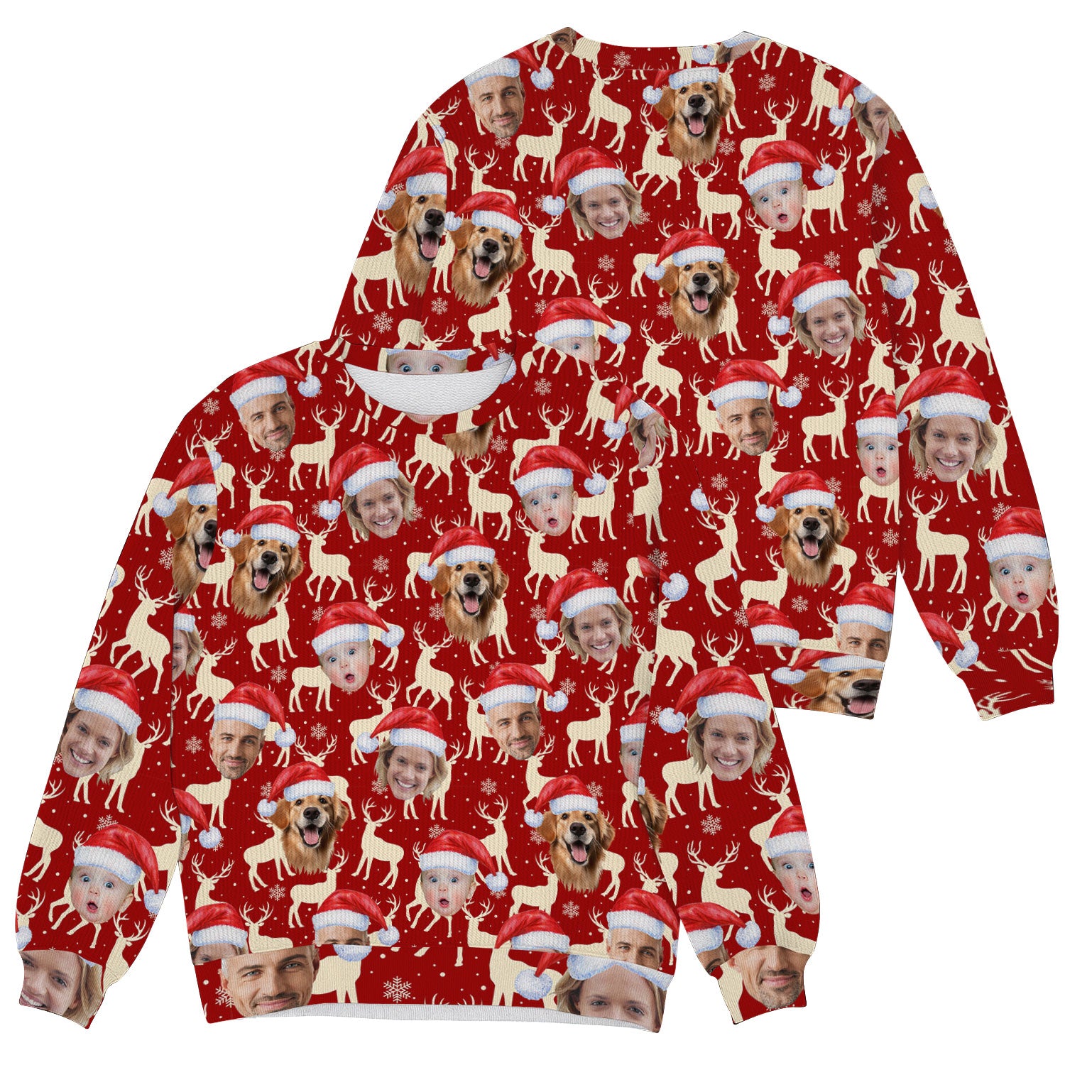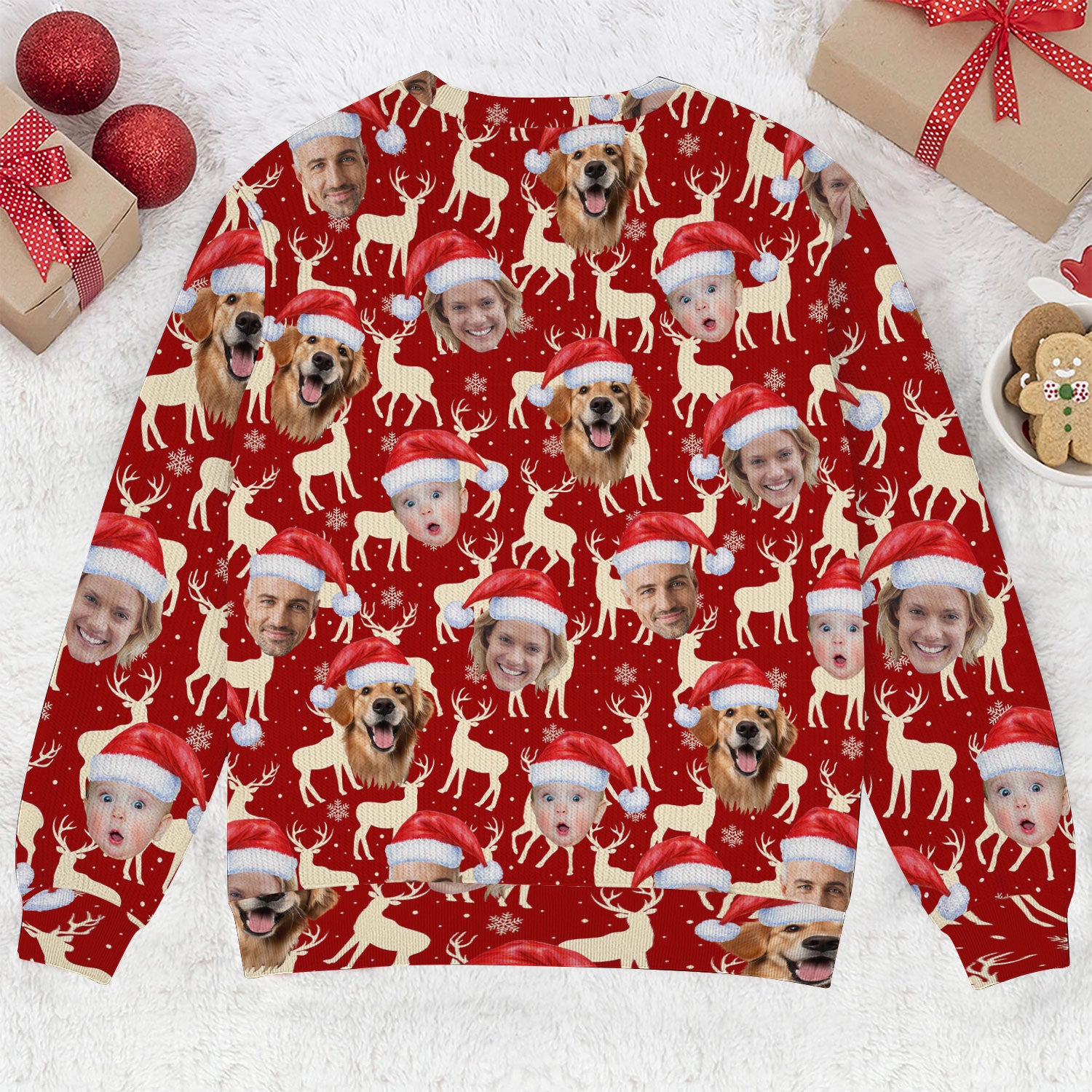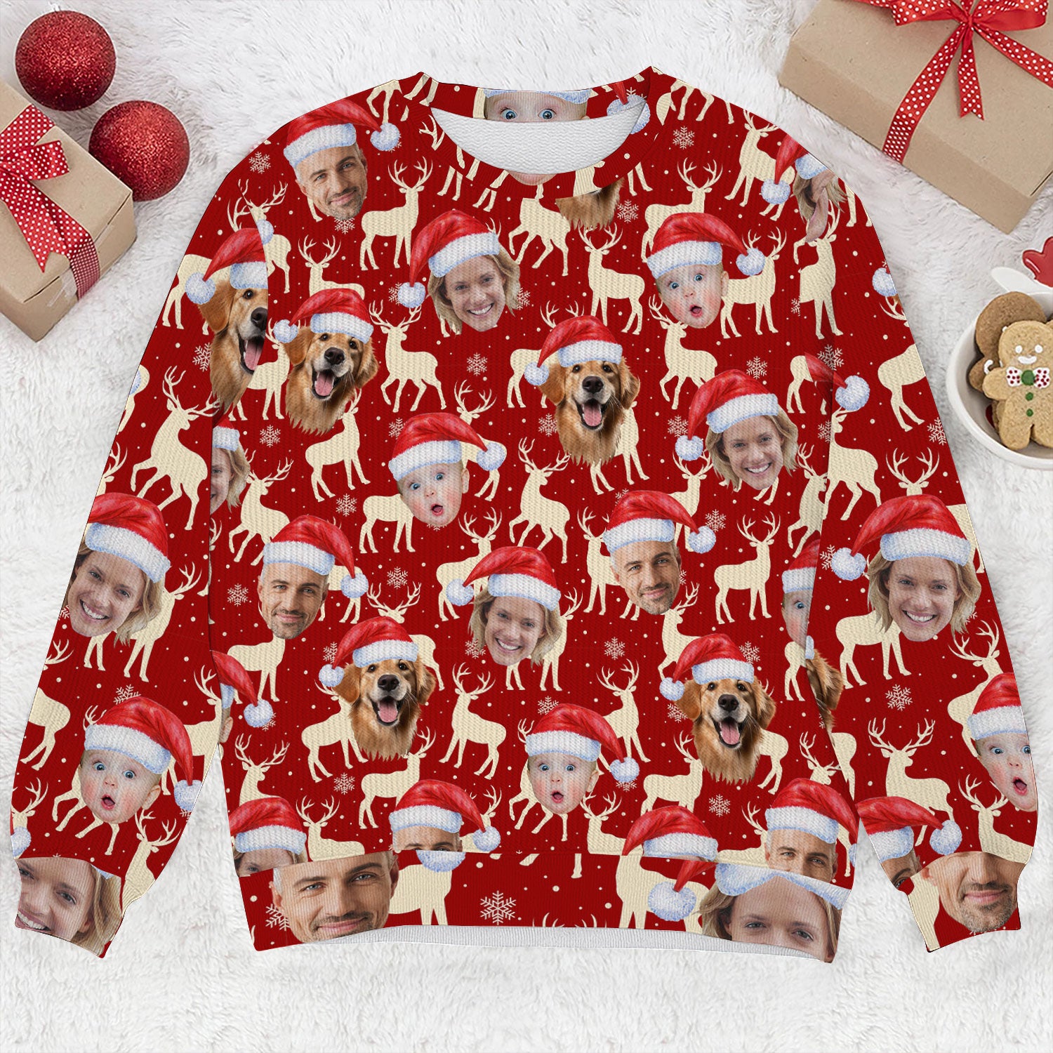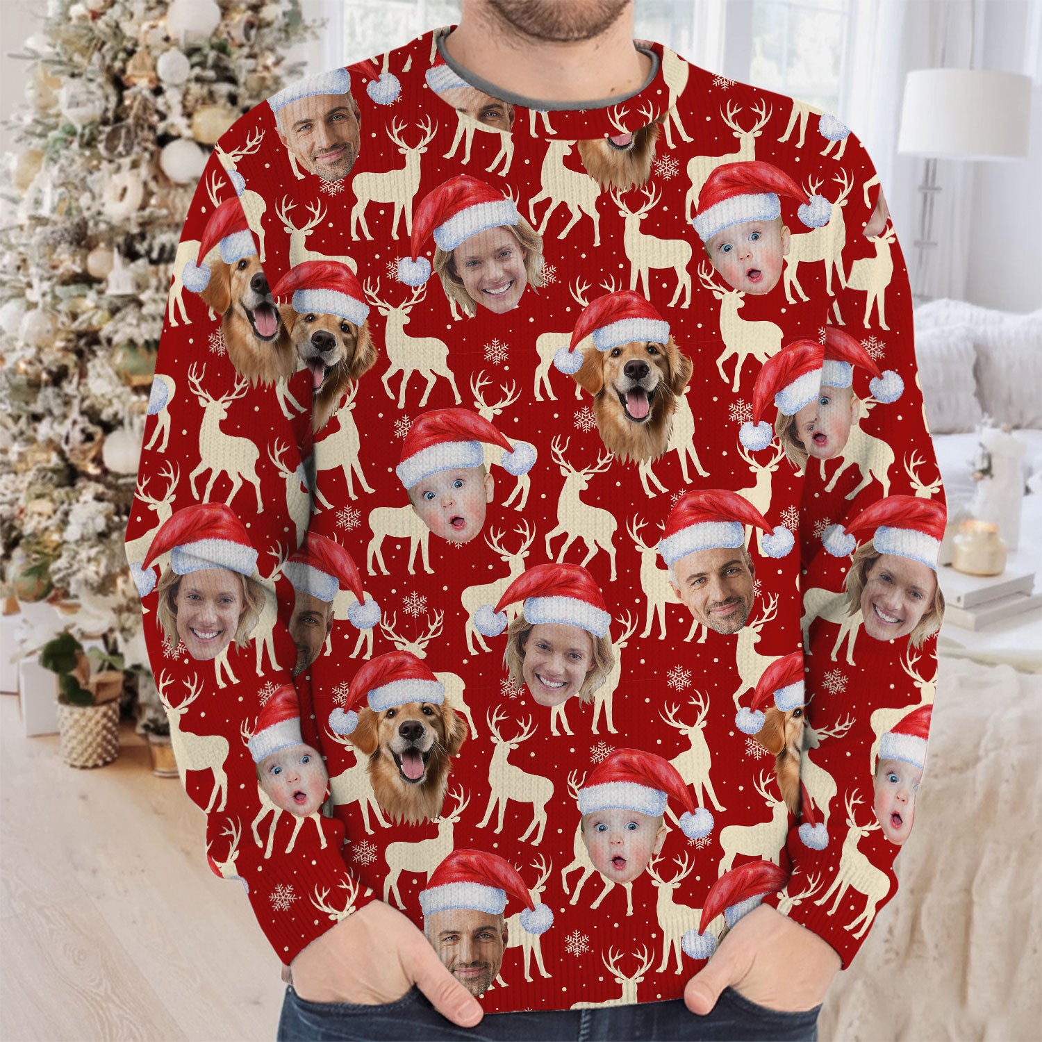 Custom Face Reindeer Pattern Beige And Red Golf Ugly Sweater, Christmas Golf Shirt, Golf Sweater