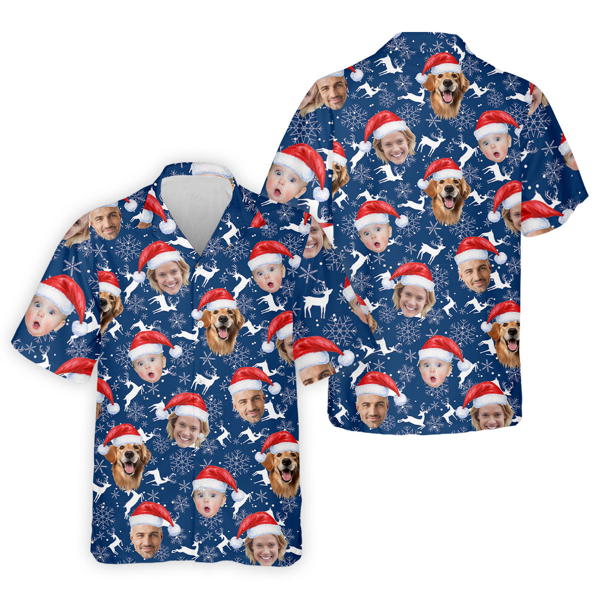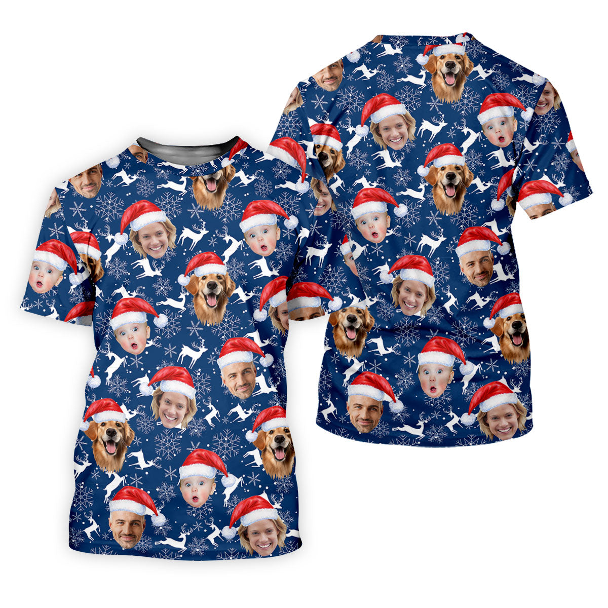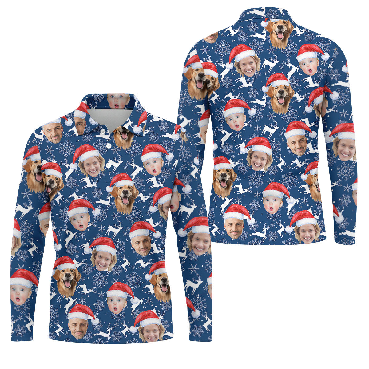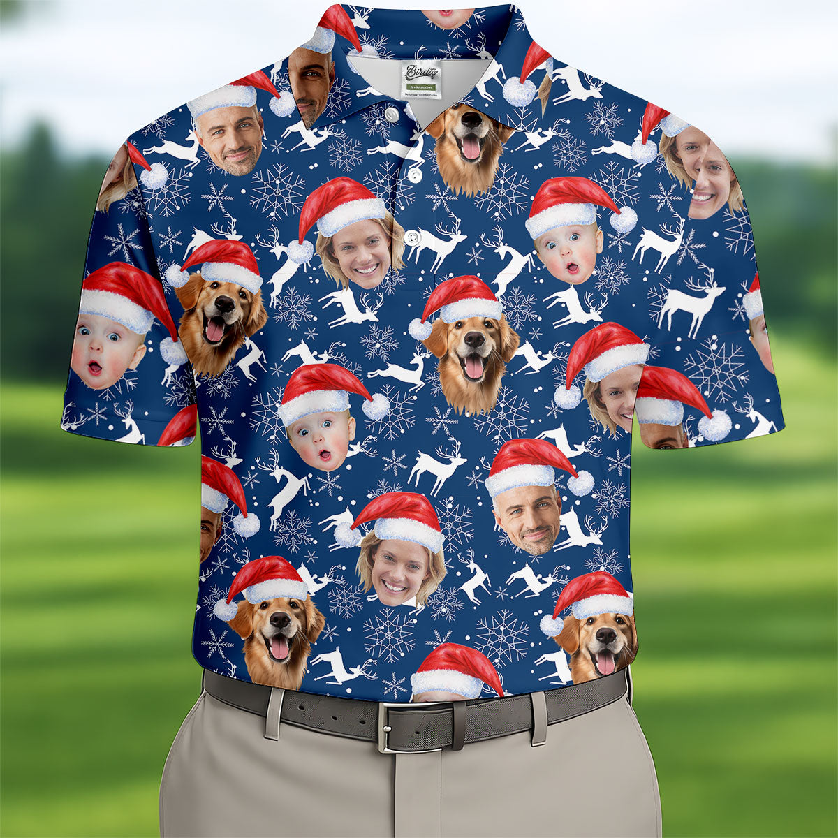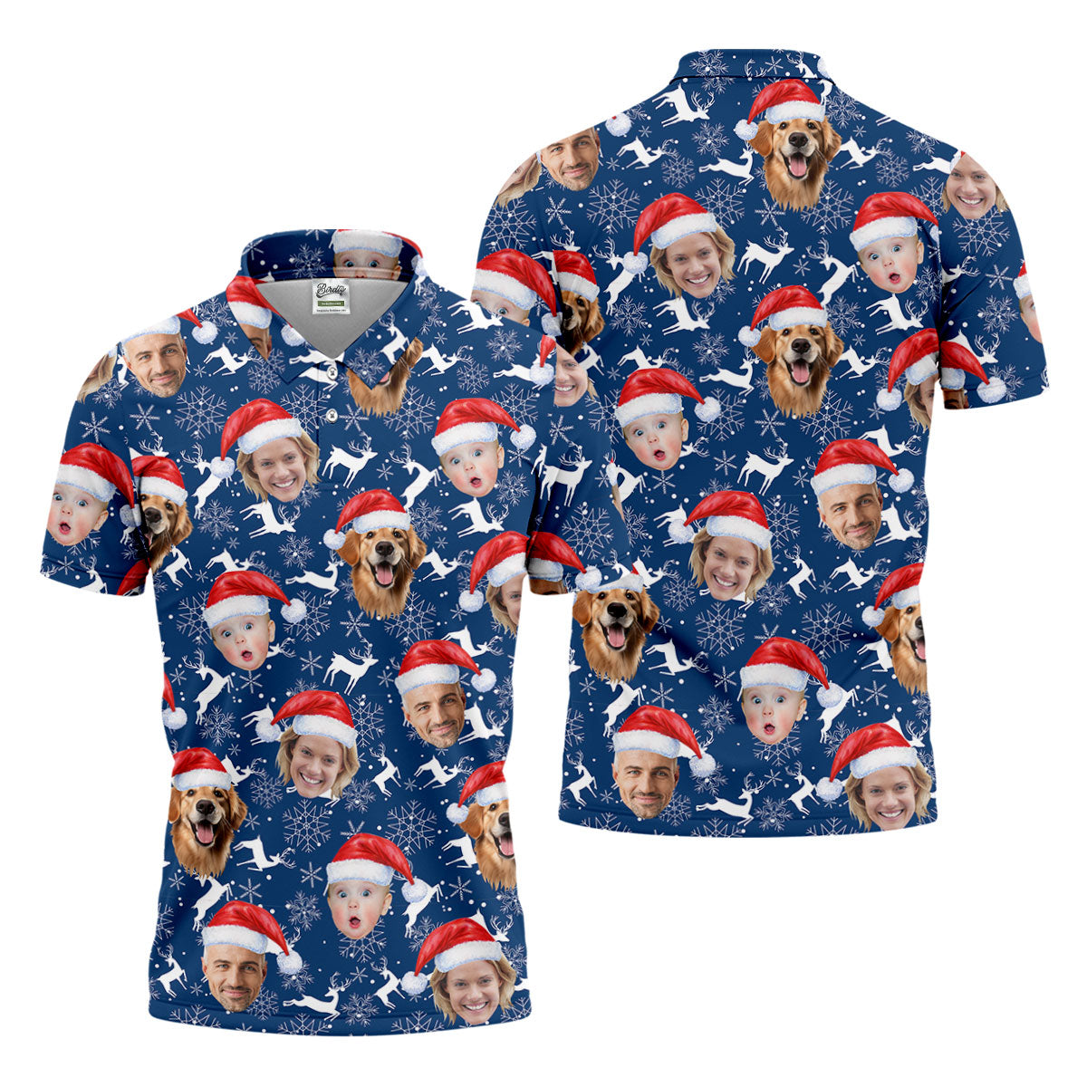 Custom Face Reindeer Pattern Navy Golf Shirt, Christmas Golf Shirt, Polo Shirts For Men, Golf Gift For Men