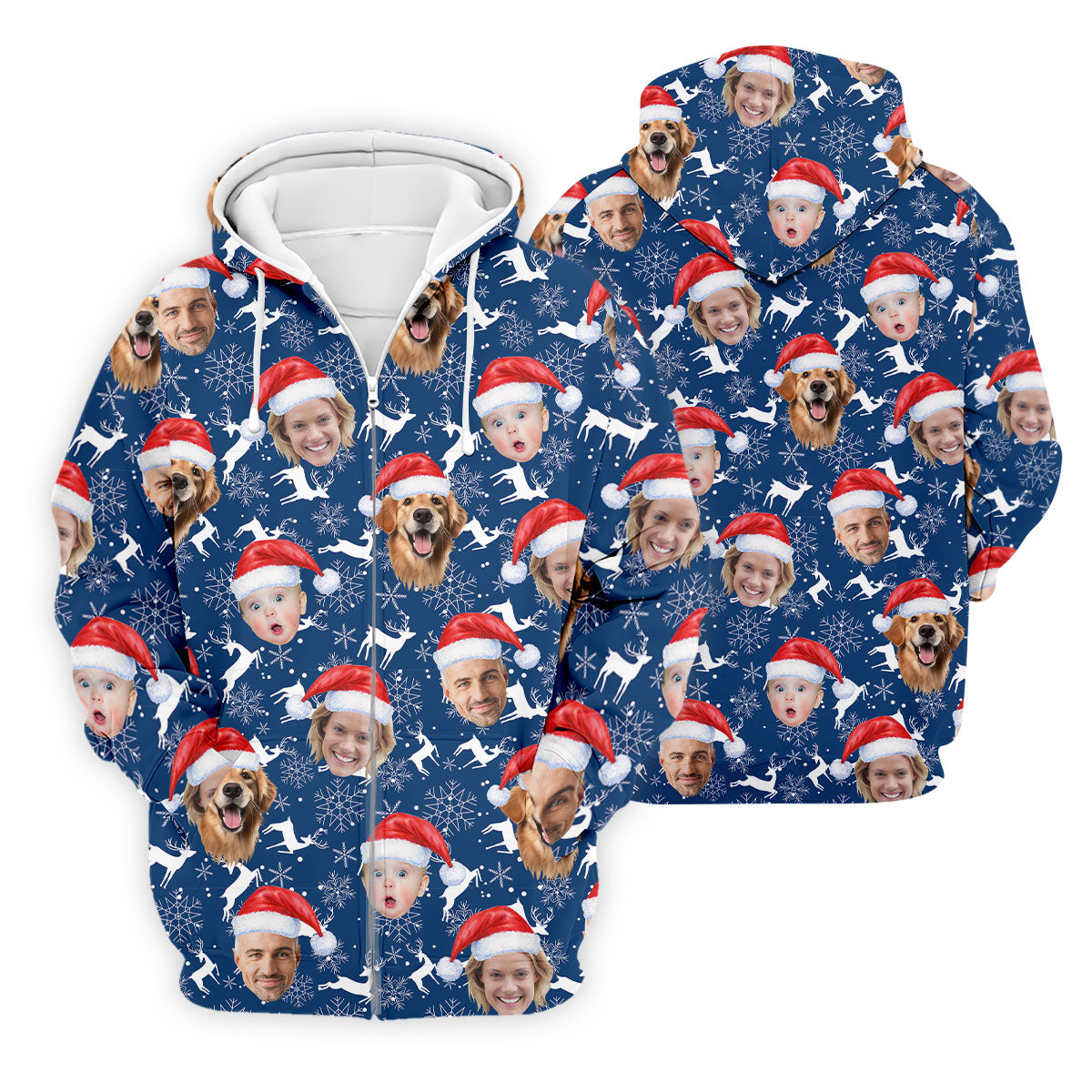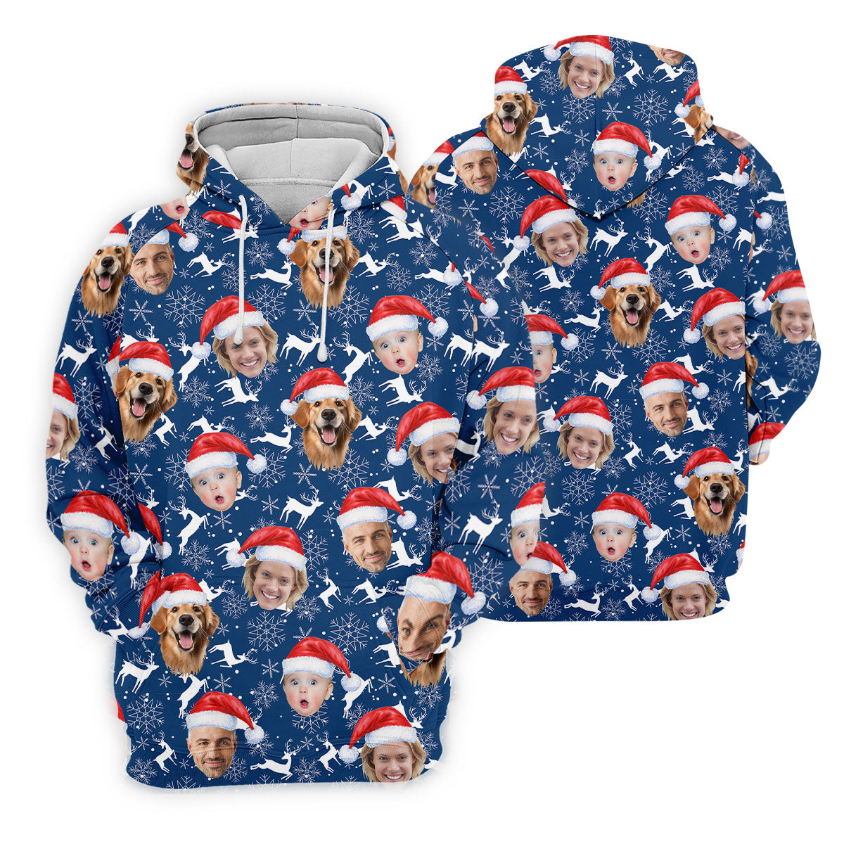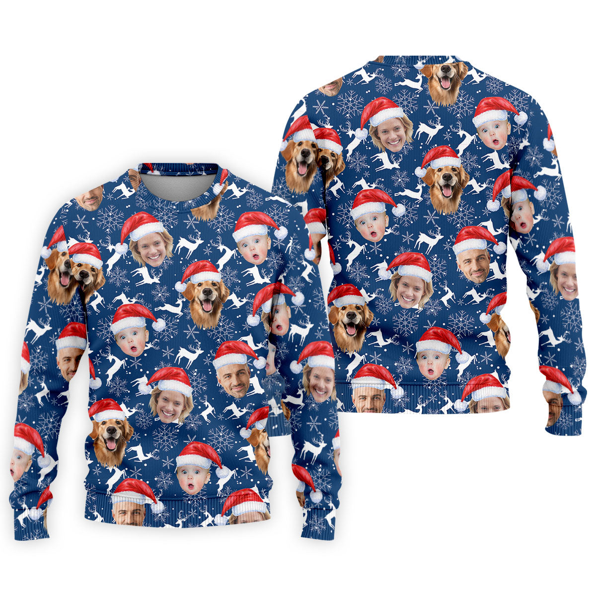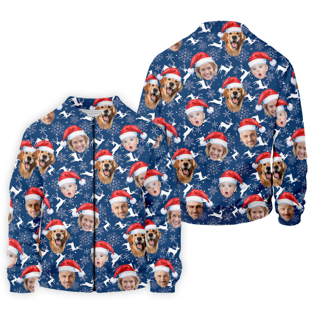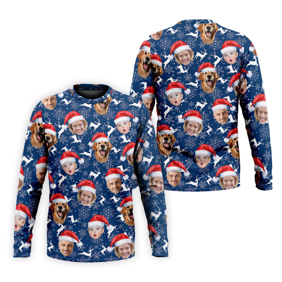Custom Face Reindeer Pattern Navy Golf Shirt, Christmas Golf Shirt, Polo Shirts For Men, Golf Gift For Men