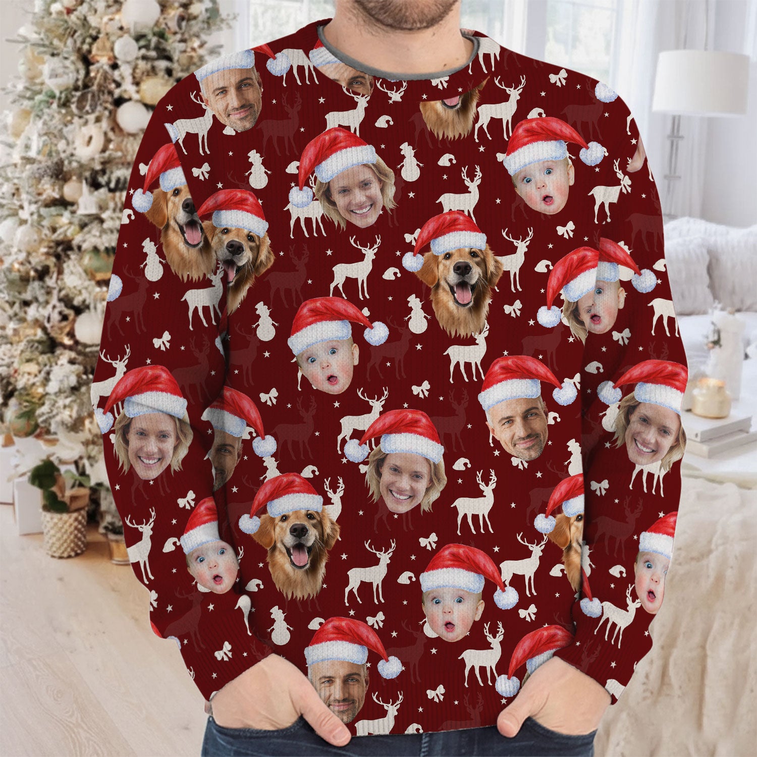 Custom Face Snow Figure Maroon Golf Ugly Sweater, Christmas Golf Shirt, Golf Sweater, Christmas Golf Gift