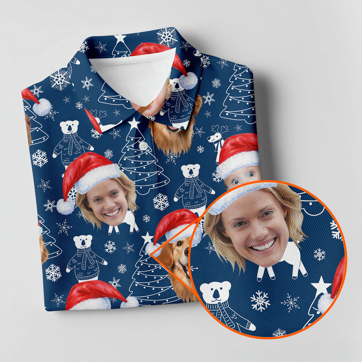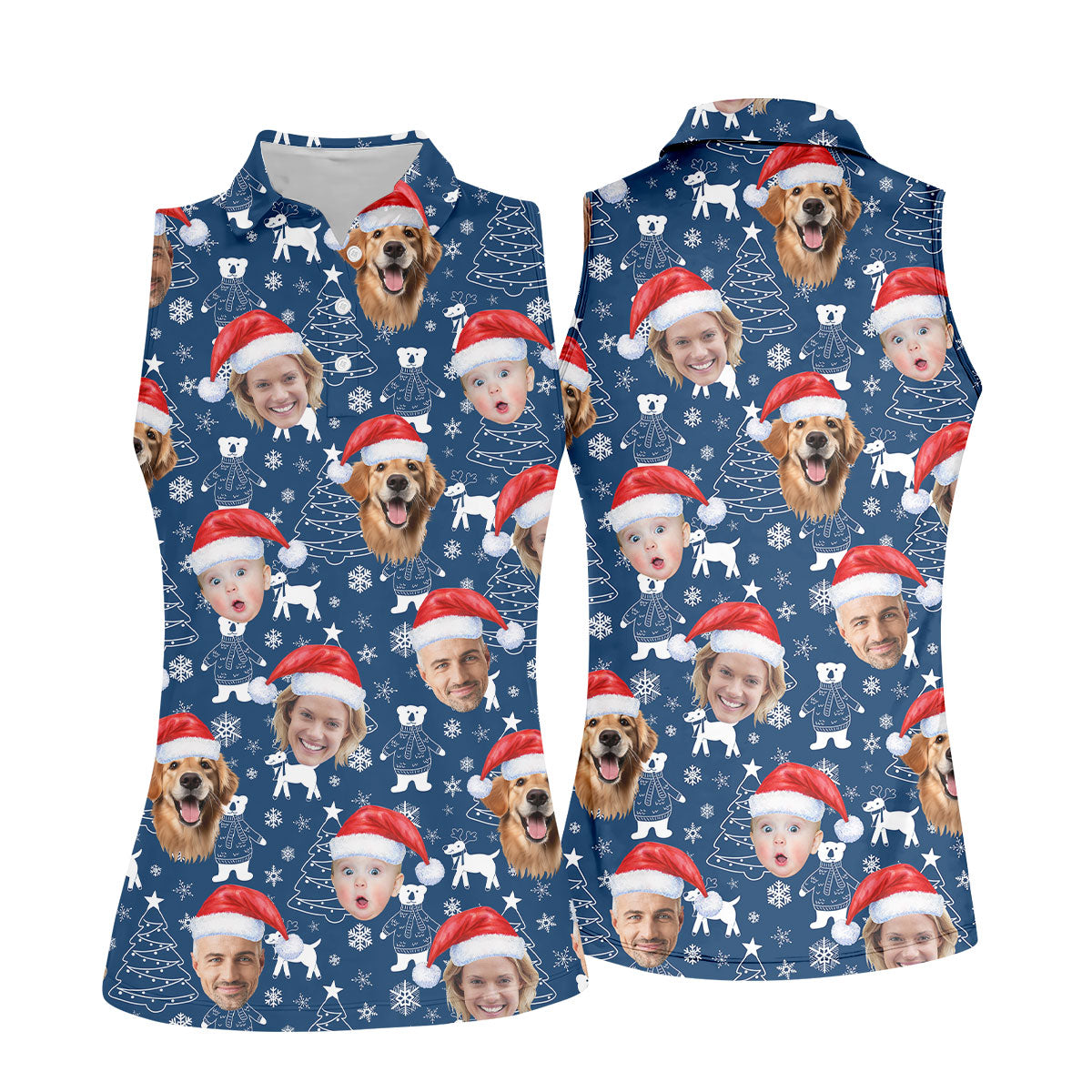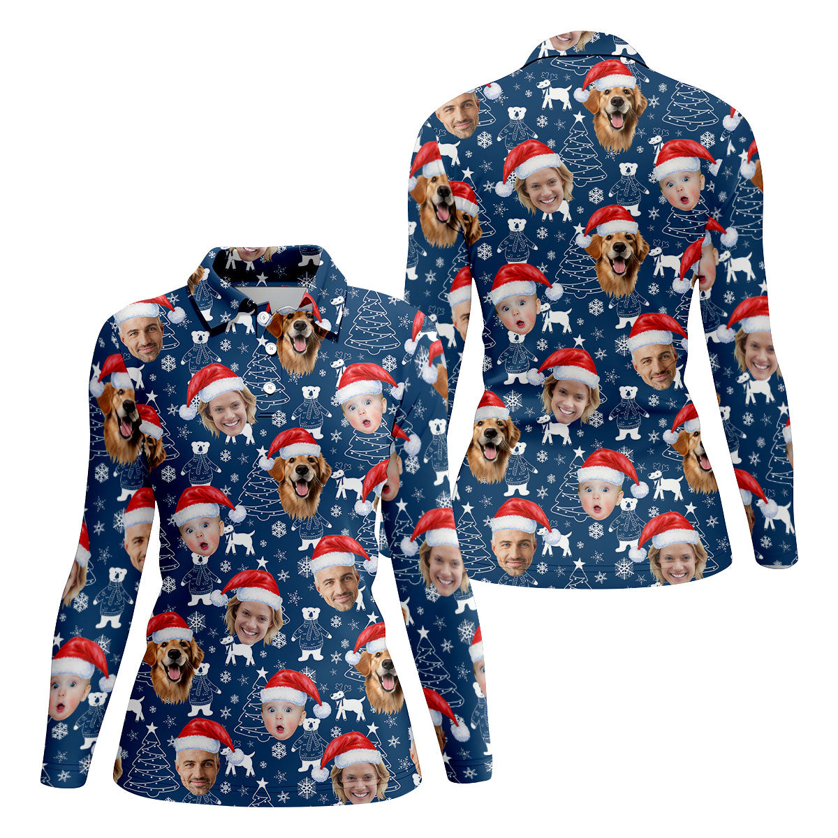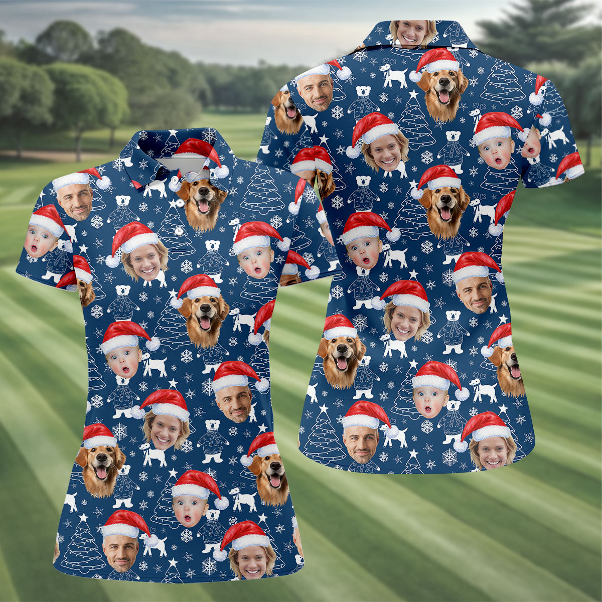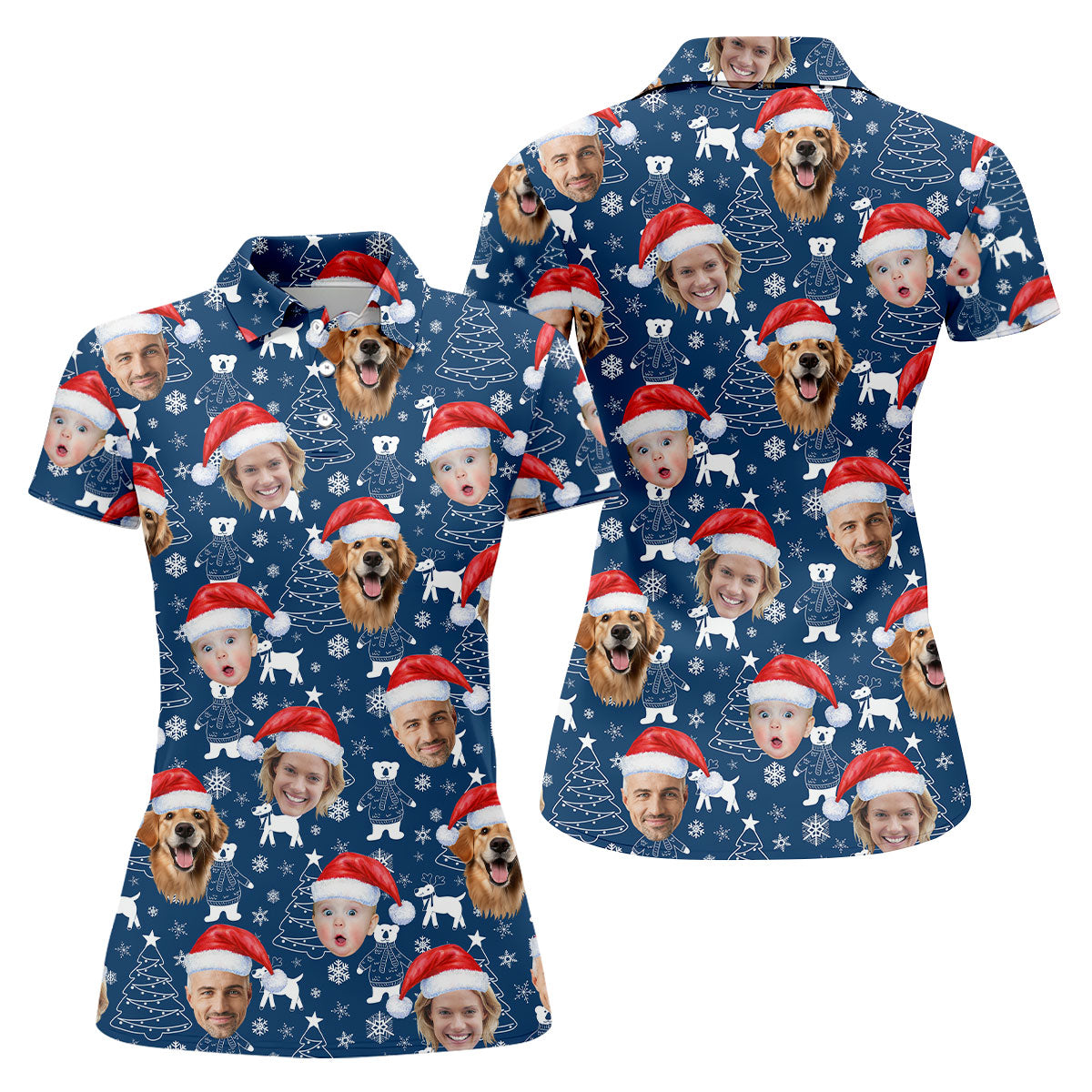 Custom Face Snow Figure Navy Golf Shirt, Christmas Golf Shirt, Women's Golf Tops, Ladies Golf Shirts
