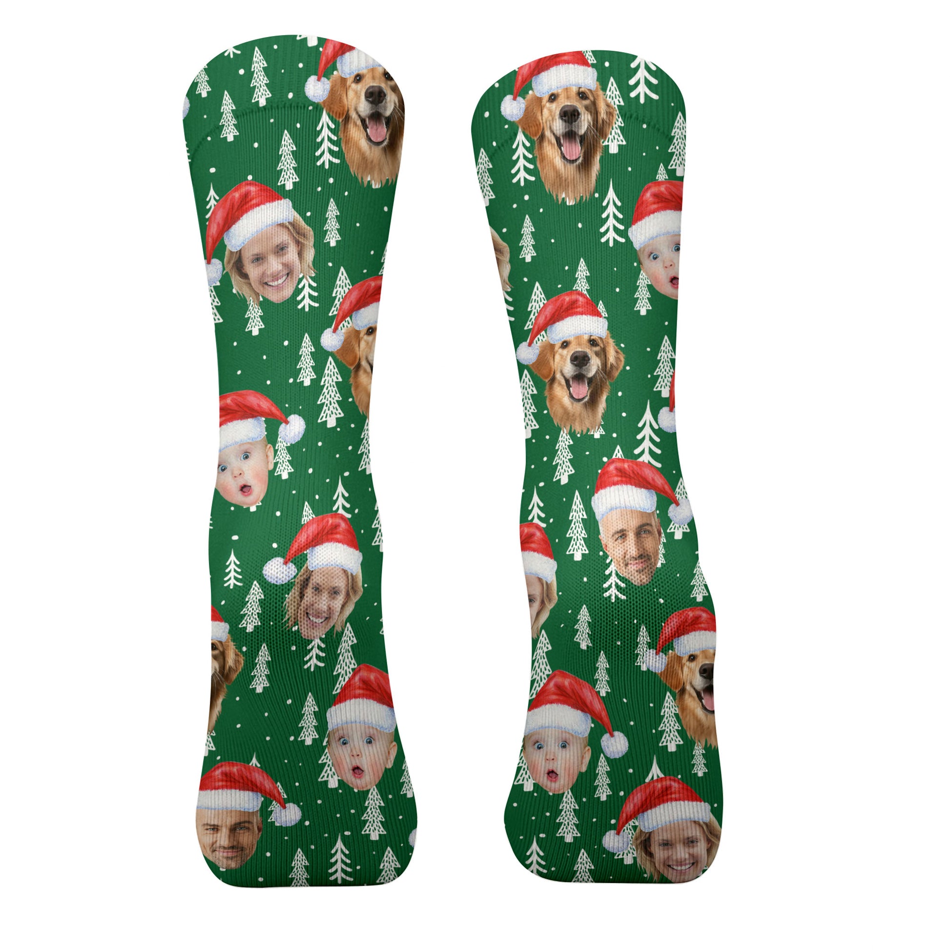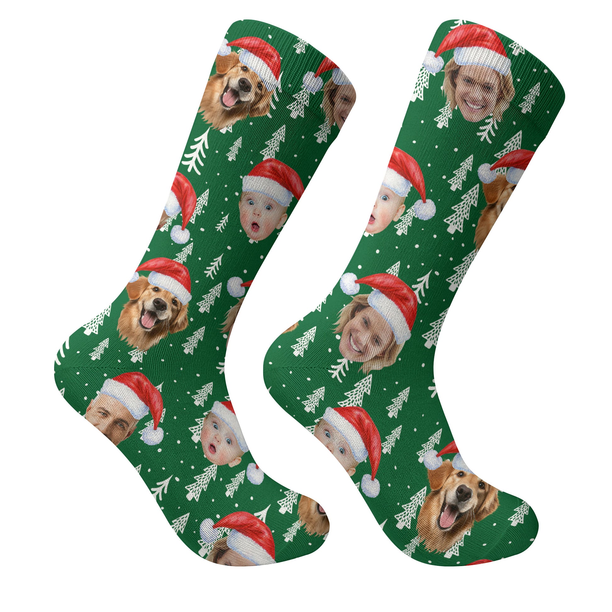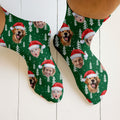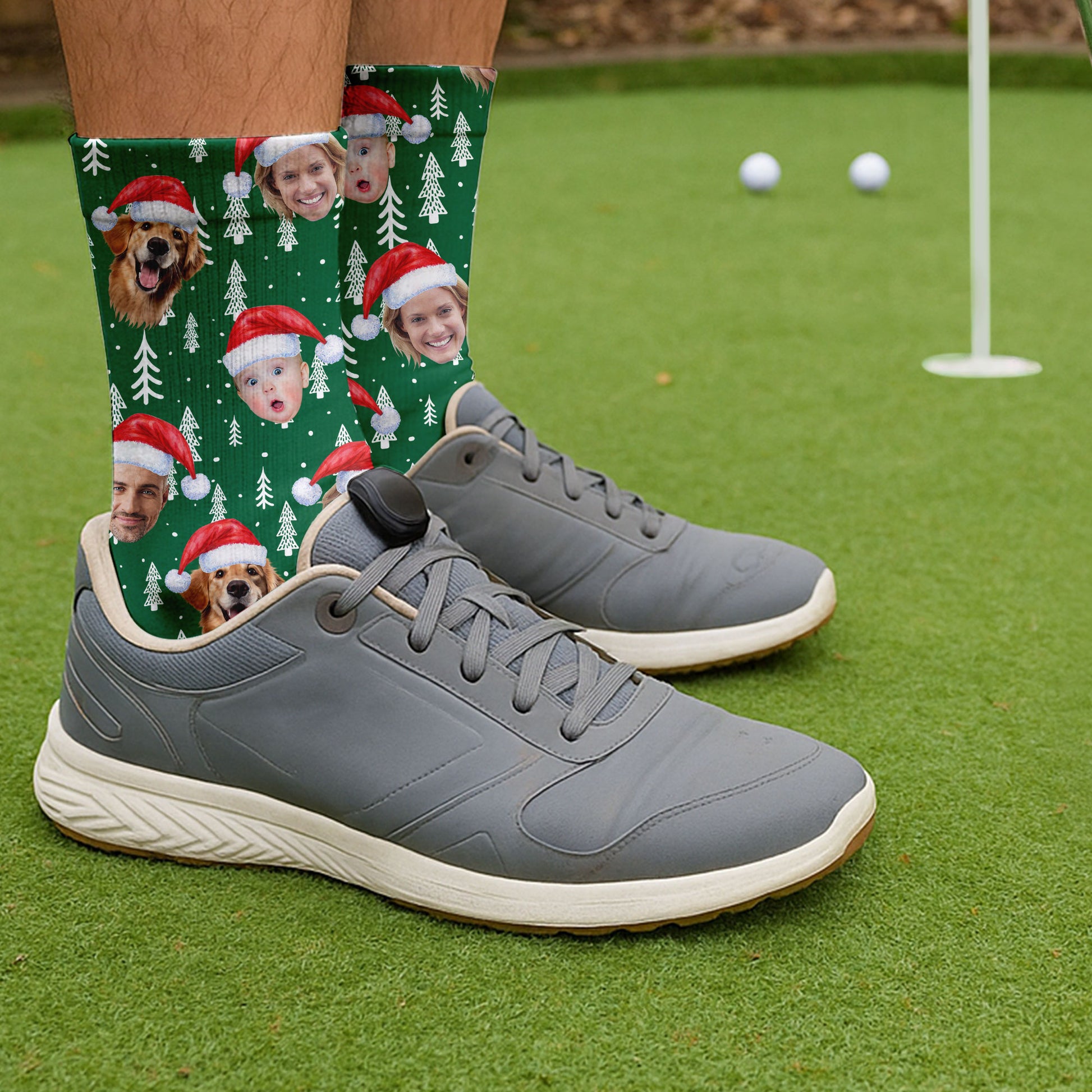 Custom Face Snow Pine Tree Green Golf Socks, Christmas Golf Socks, Golf Gift Idea