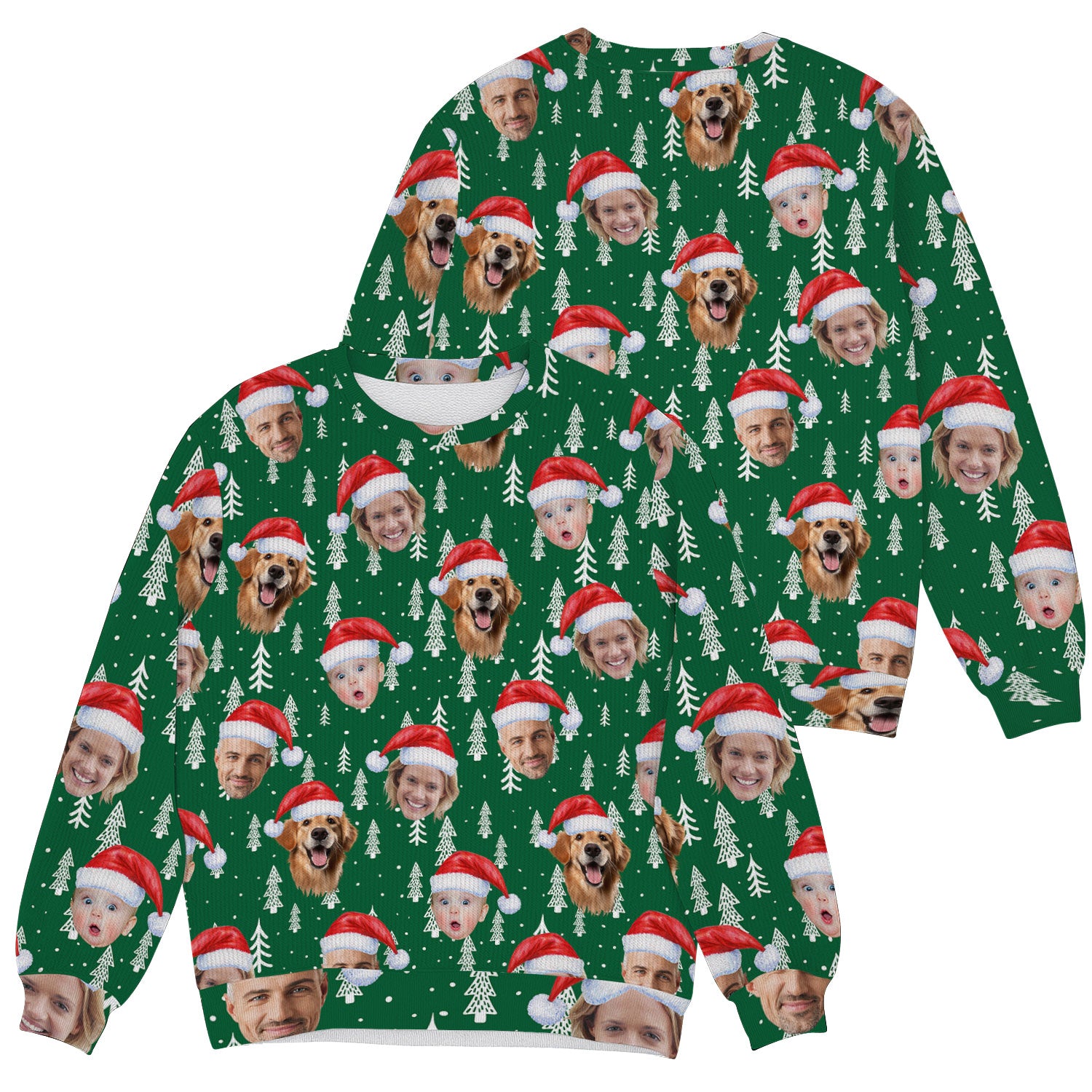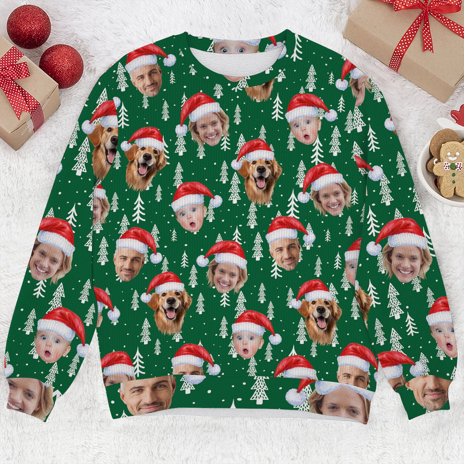Custom Face Snow Pine Tree Green Golf Ugly Sweater, Golf Ugly Christmas Sweater, Christmas Golf Shirt