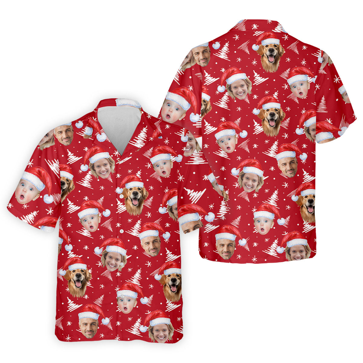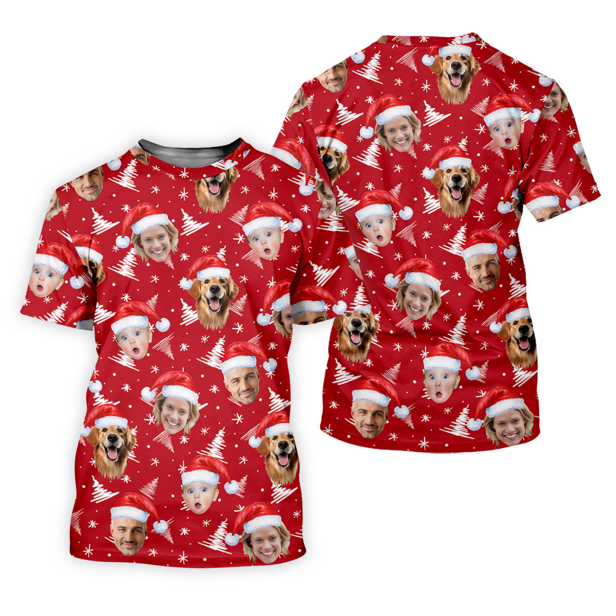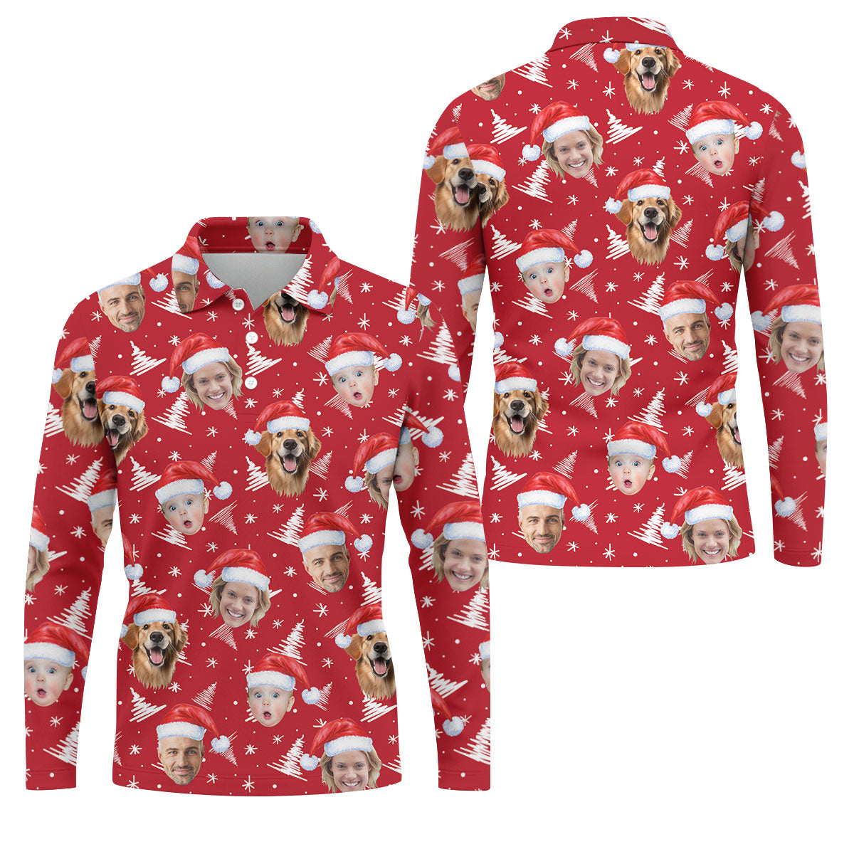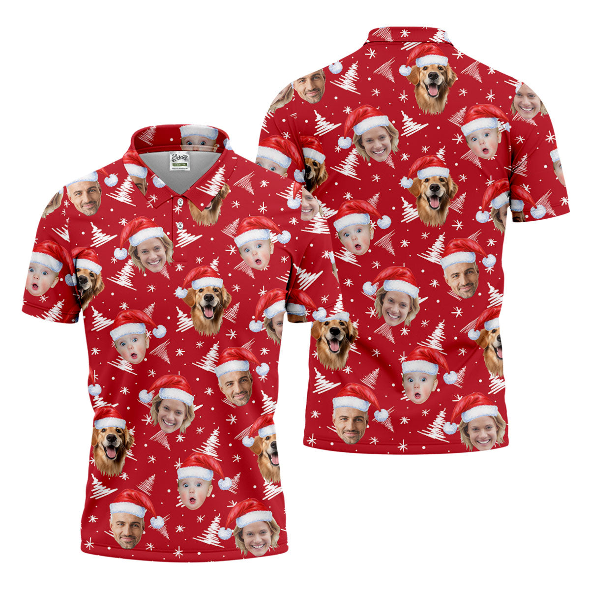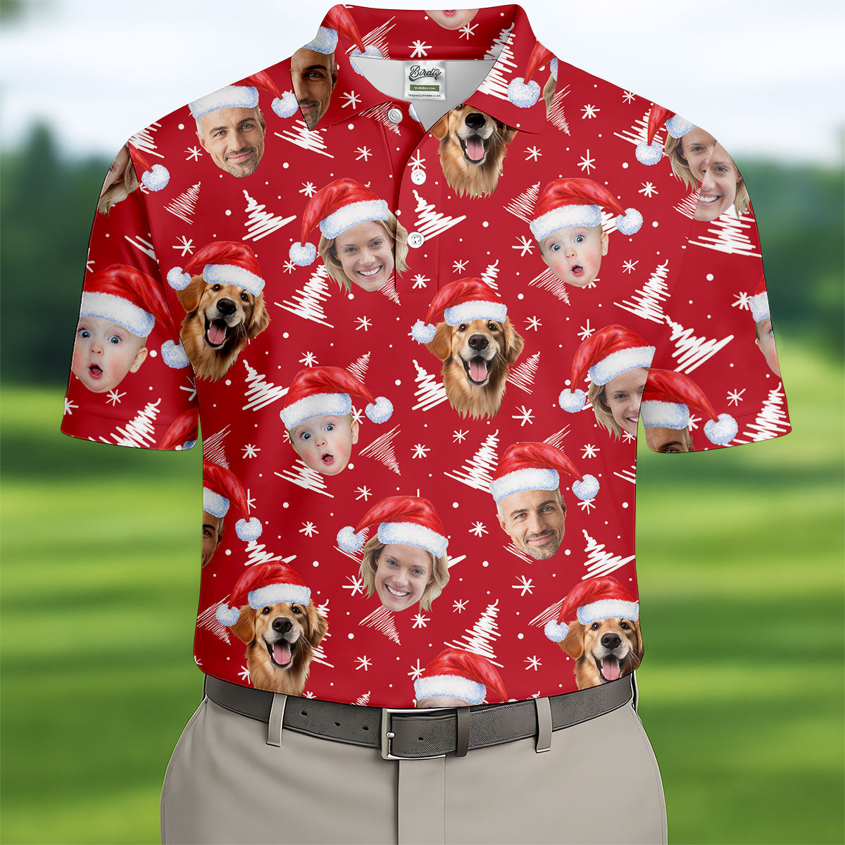 Custom Face Snow Pine Tree Red Golf Shirt, Christmas Golf Shirt, Golf Shirts For Men, Golf Gift For Men