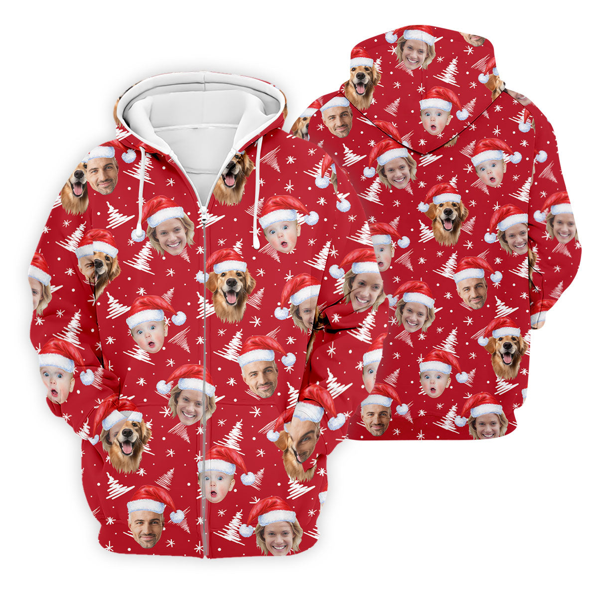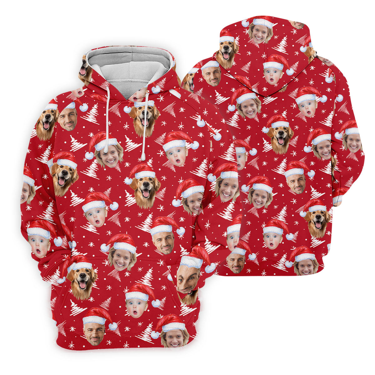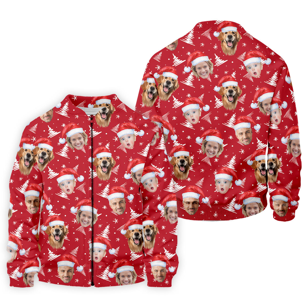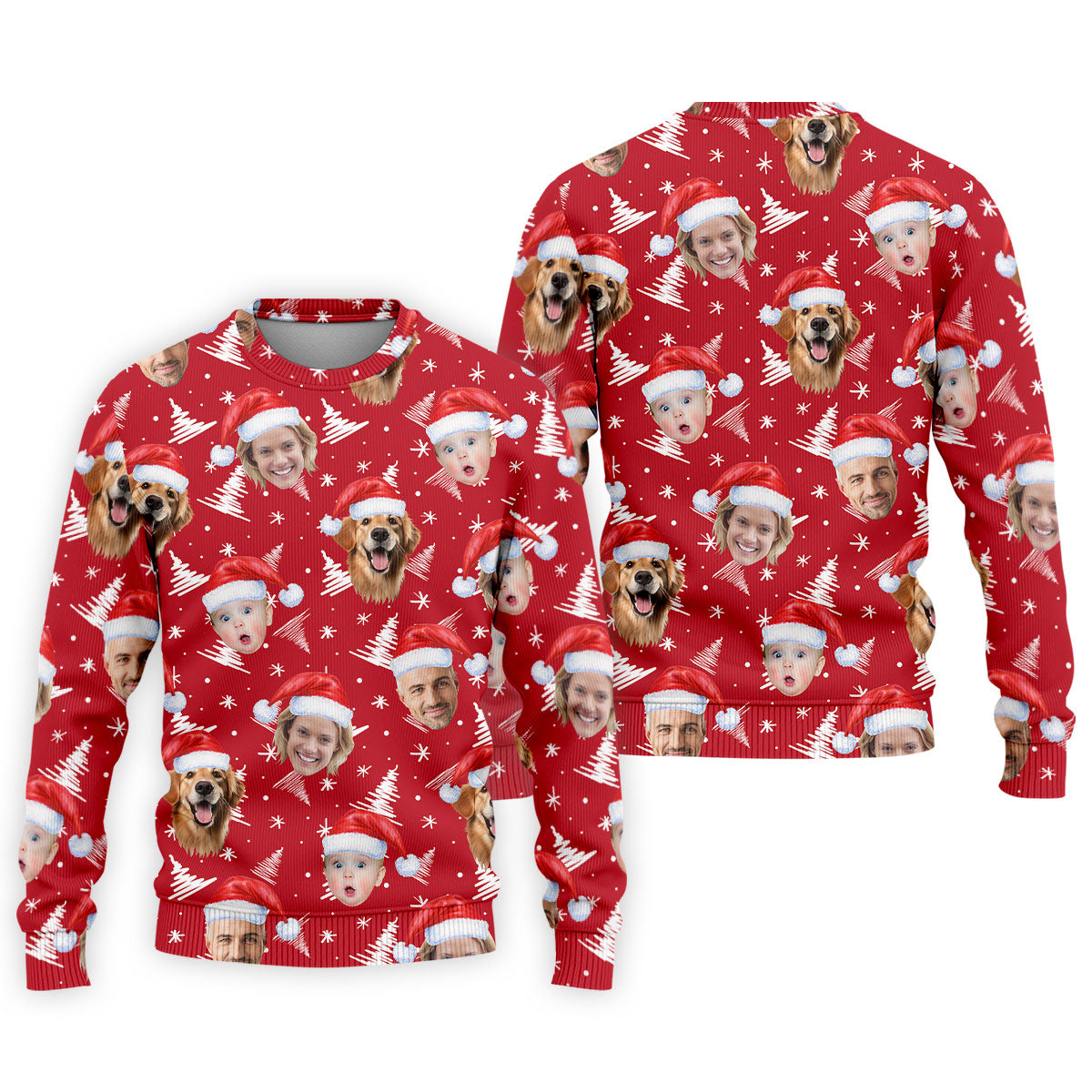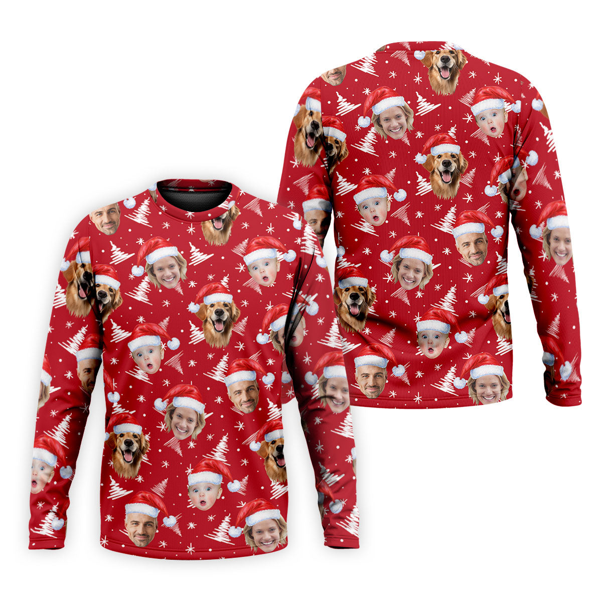 Custom Face Snow Pine Tree Red Golf Shirt, Christmas Golf Shirt, Golf Shirts For Men, Golf Gift For Men