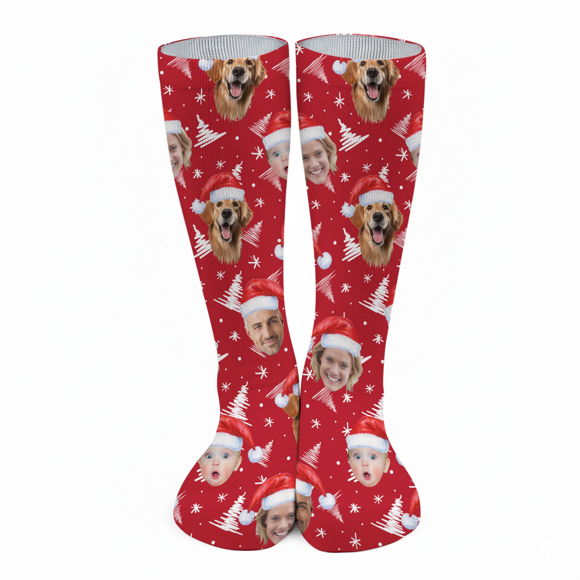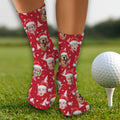 Custom Face Snow Pine Tree Red Golf Socks, Christmas Golf Gift, Custom Golf Accessories