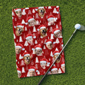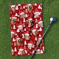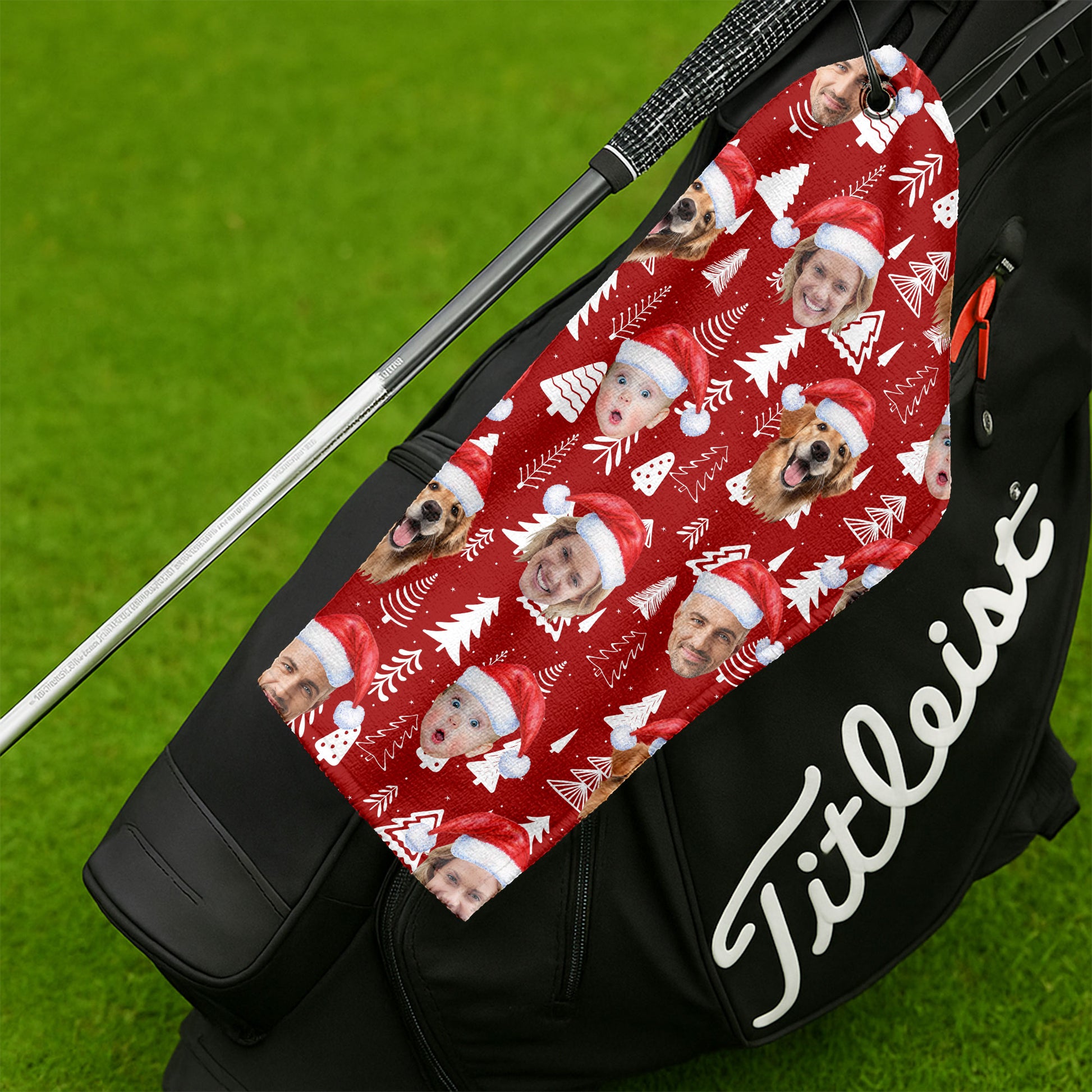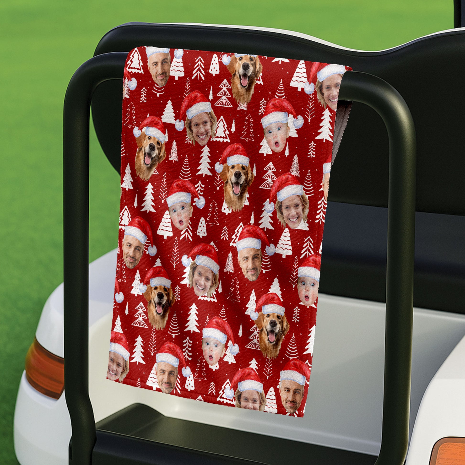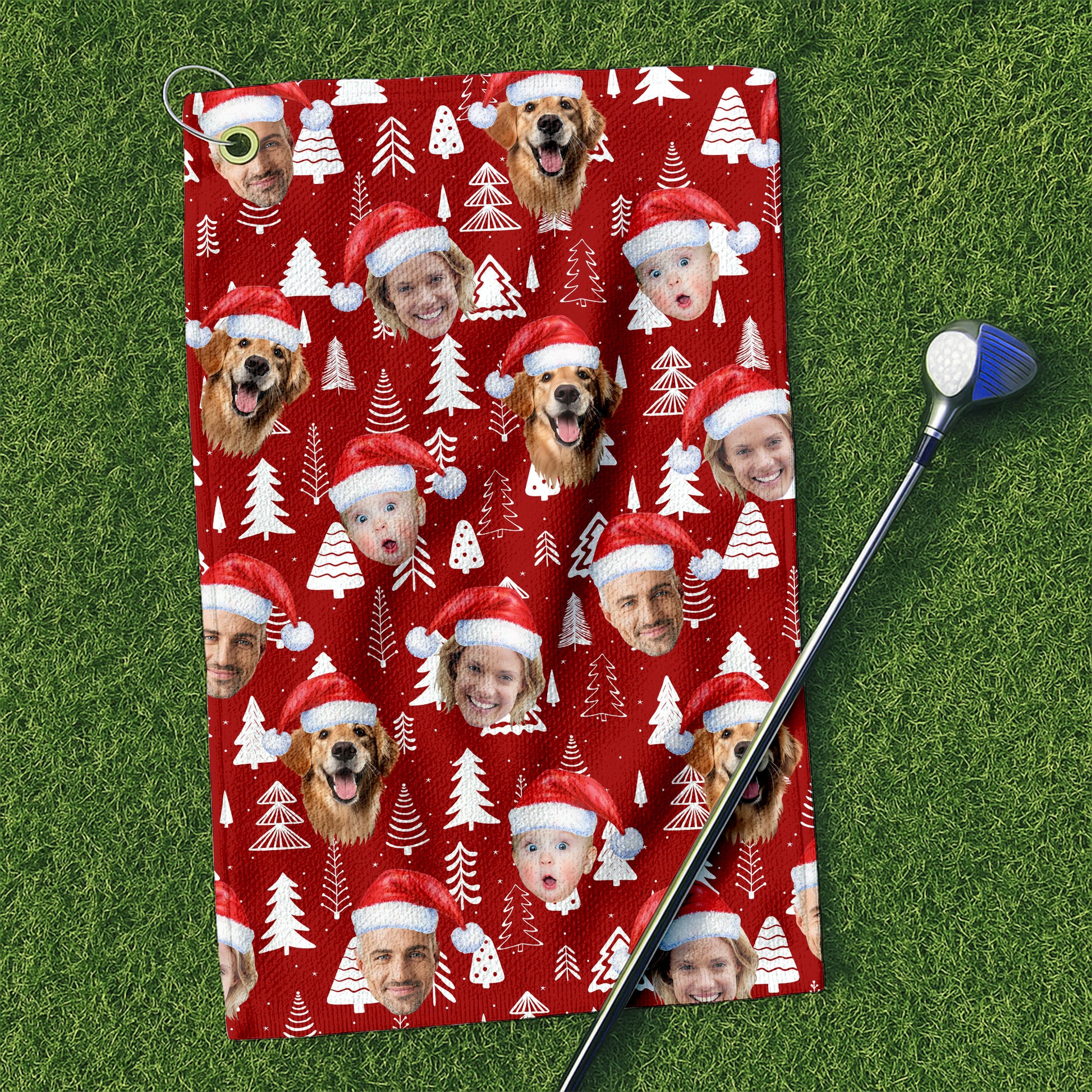 Custom Face Snow Pine Tree Red Golf Towel, Christmas Golf Gift, Golf Gift Idea