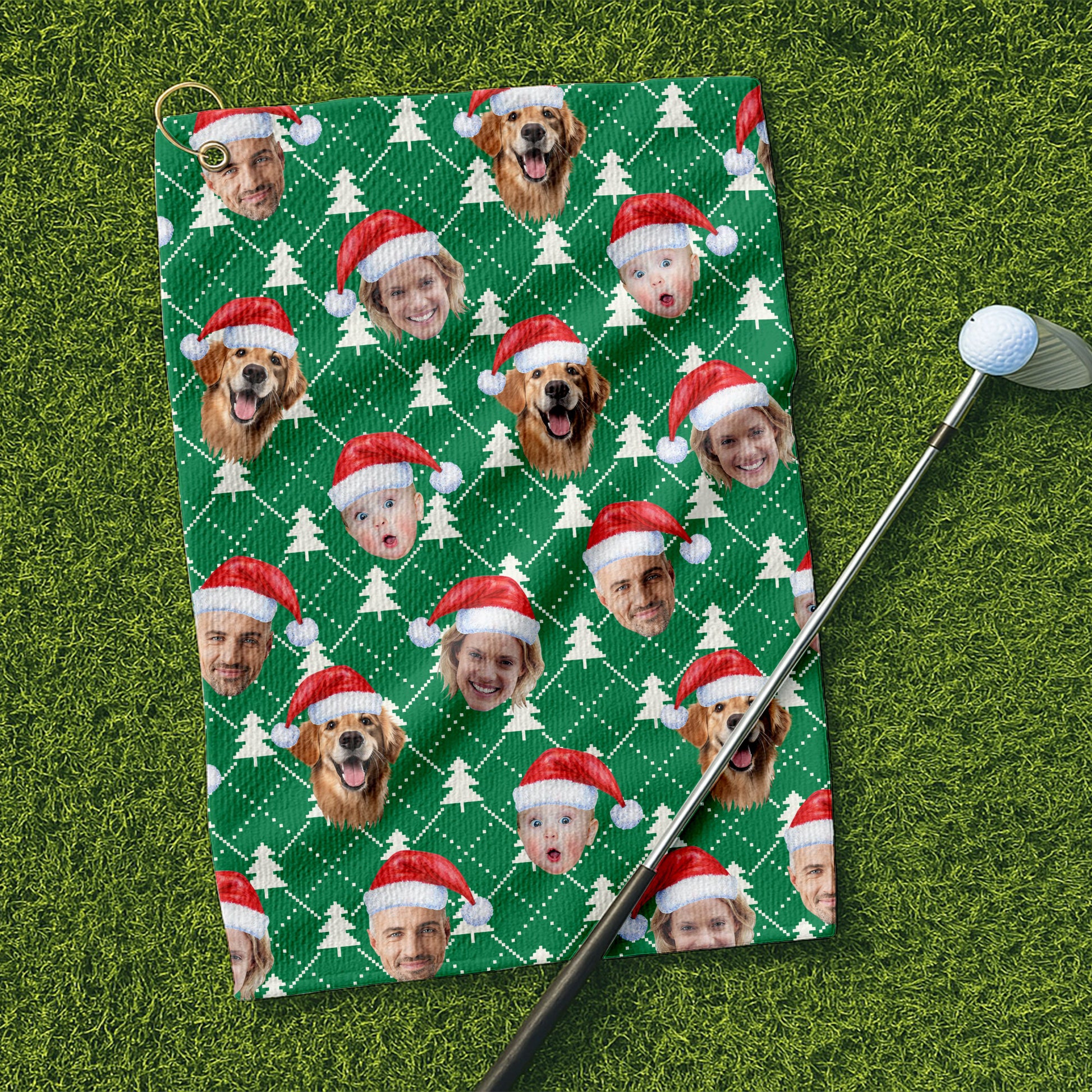 Custom Face Snow Pine Tree White Dotted Golf Towels, Christmas Golf Gift, Custom Golf Accessories