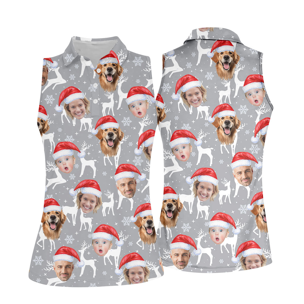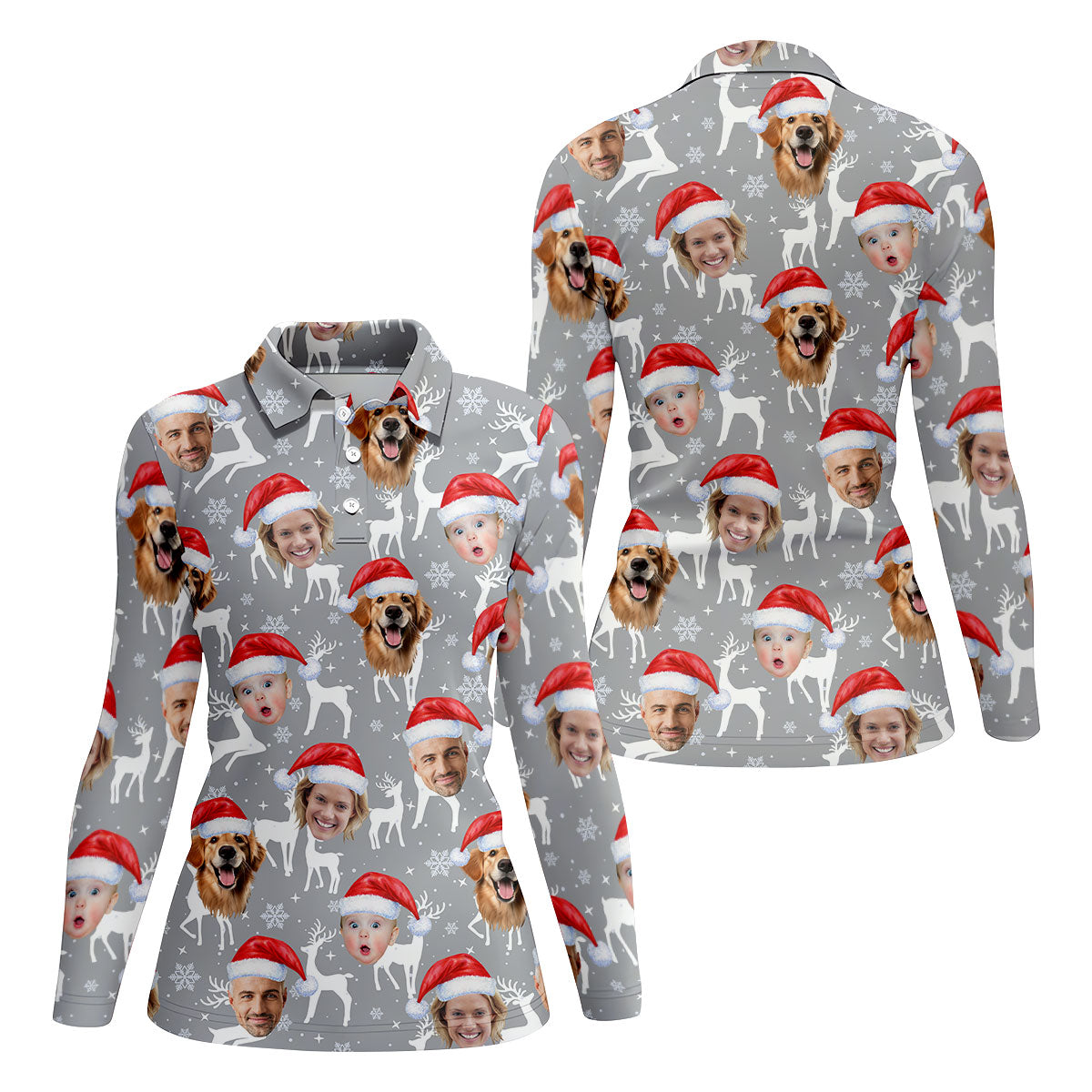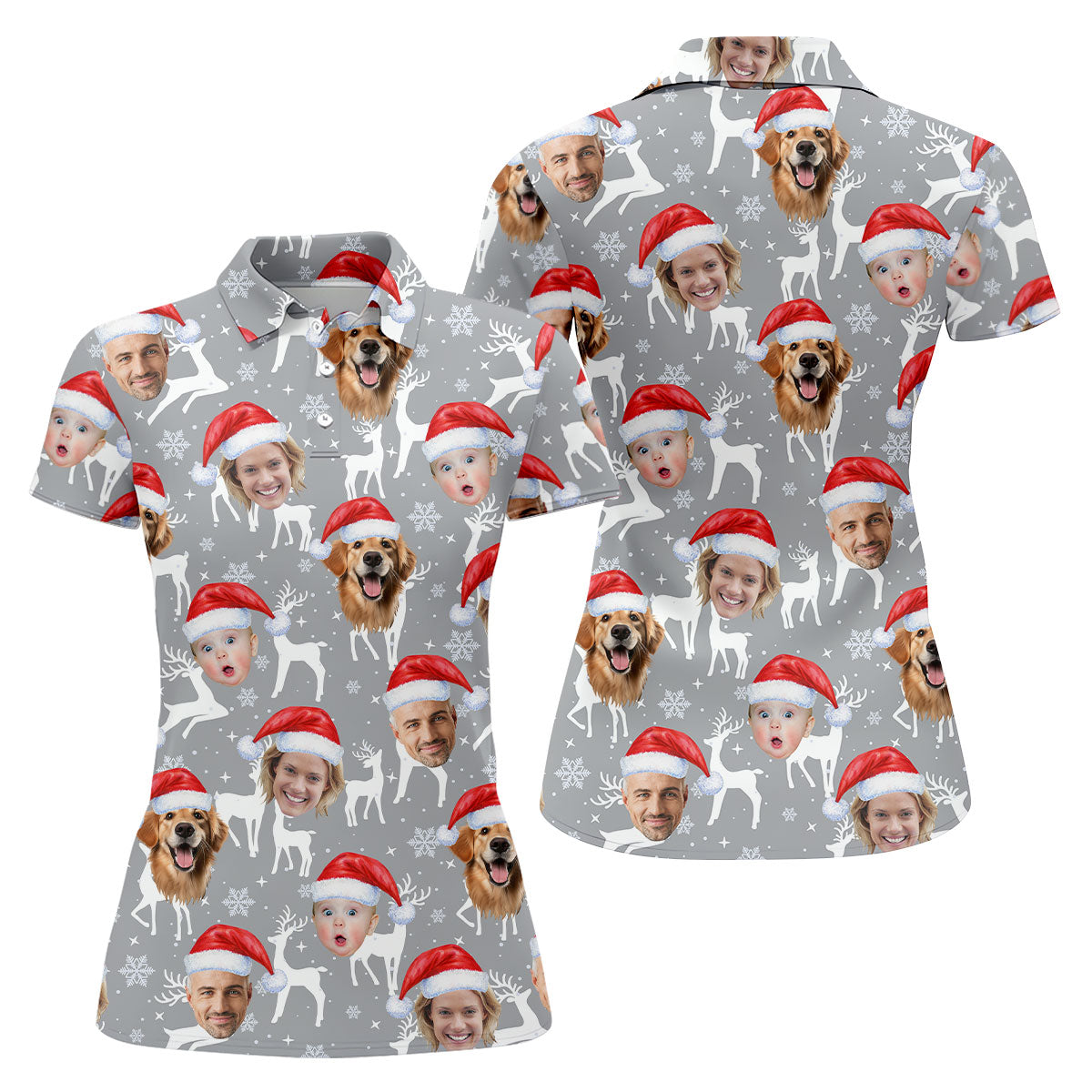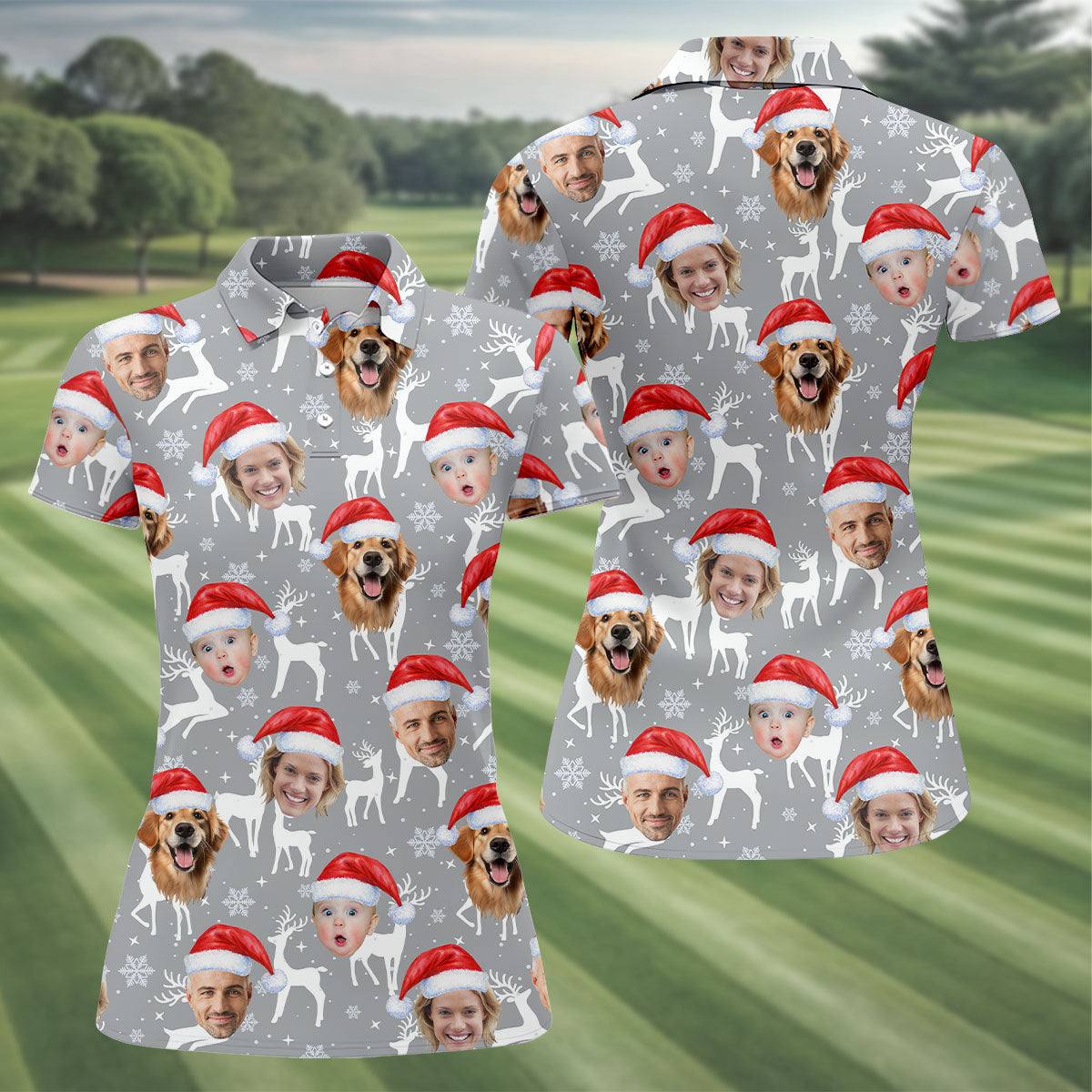 Custom Face Snow Reindeer Grey Golf Shirt, Christmas Golf Shirt, Ladies Golf Shirts, Golf Gifts For Women
