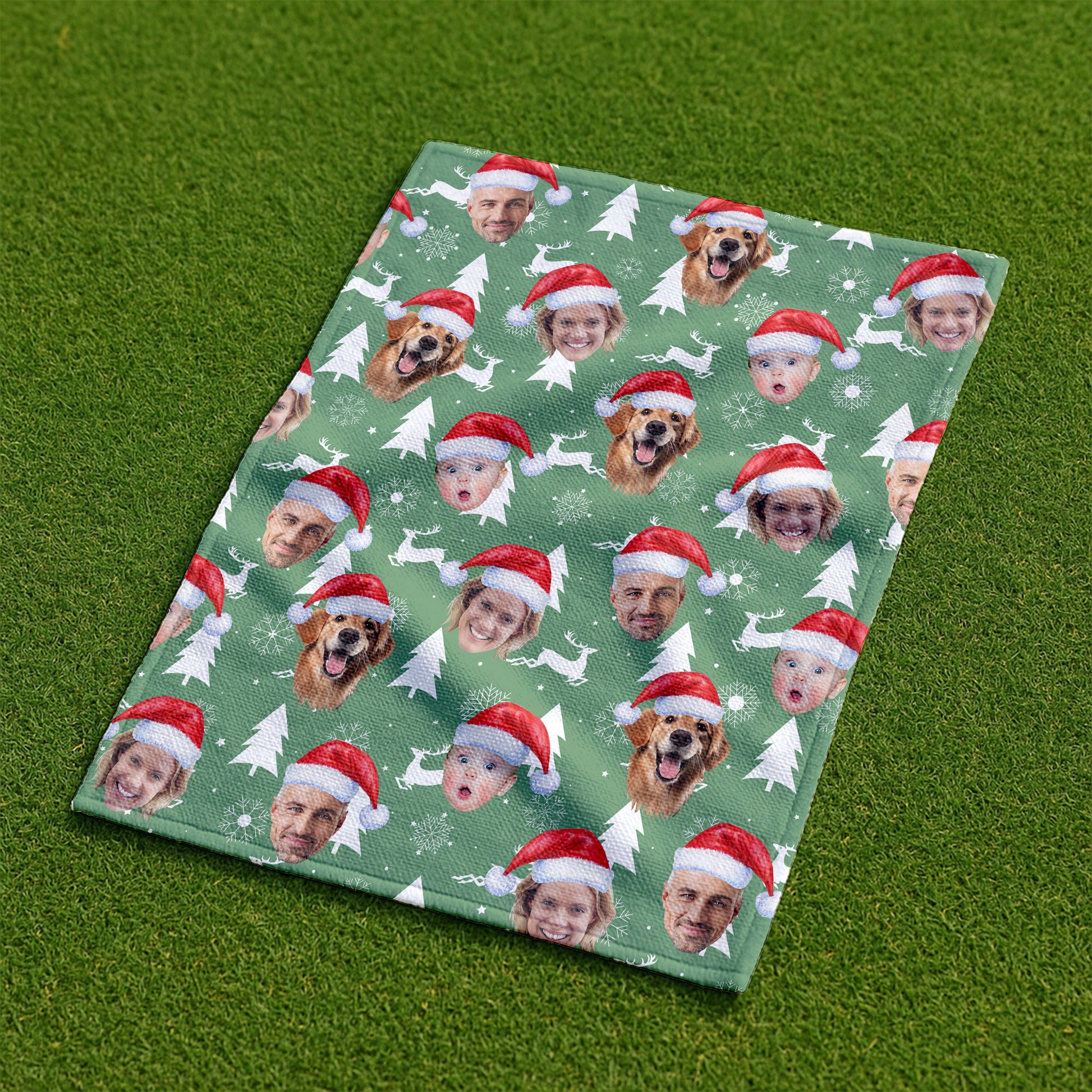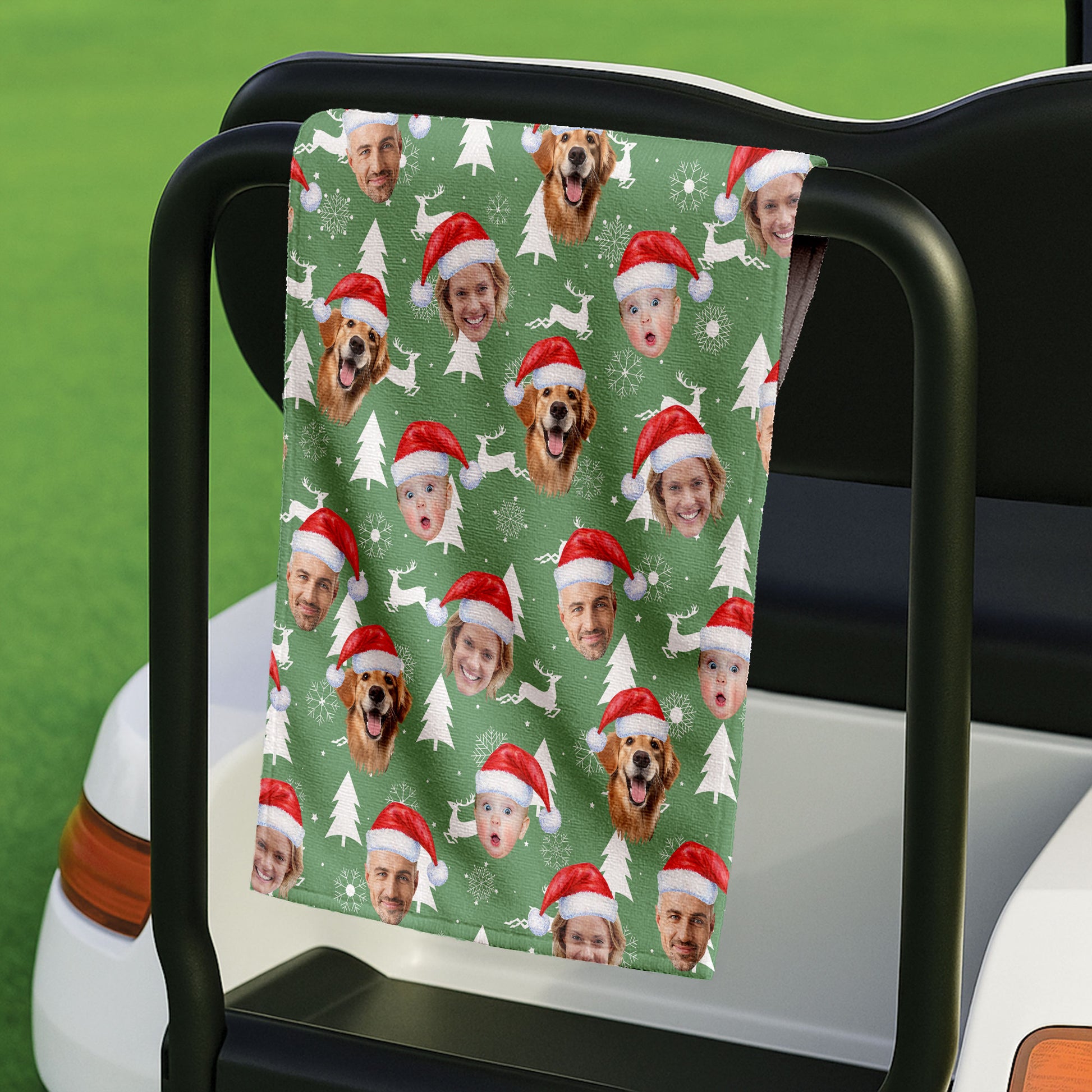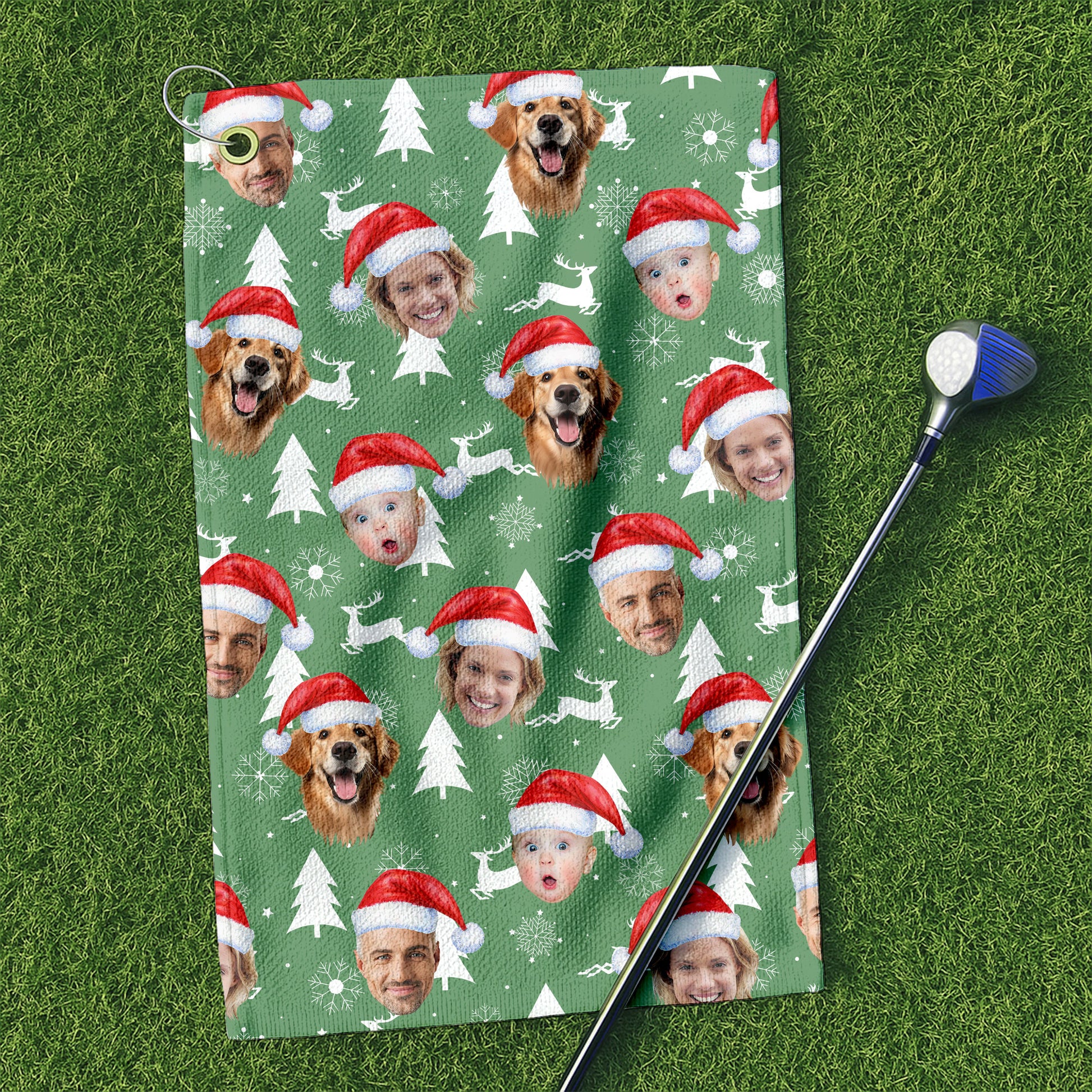 Custom Face Snow Reindeer Sage Green Cute Golf Towels, Christmas Golf Gift, Custom Golf Accessories