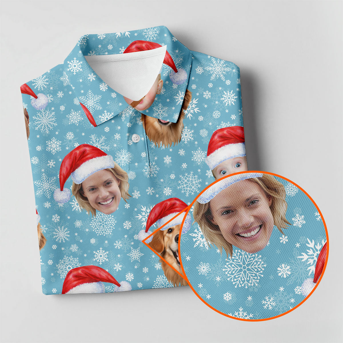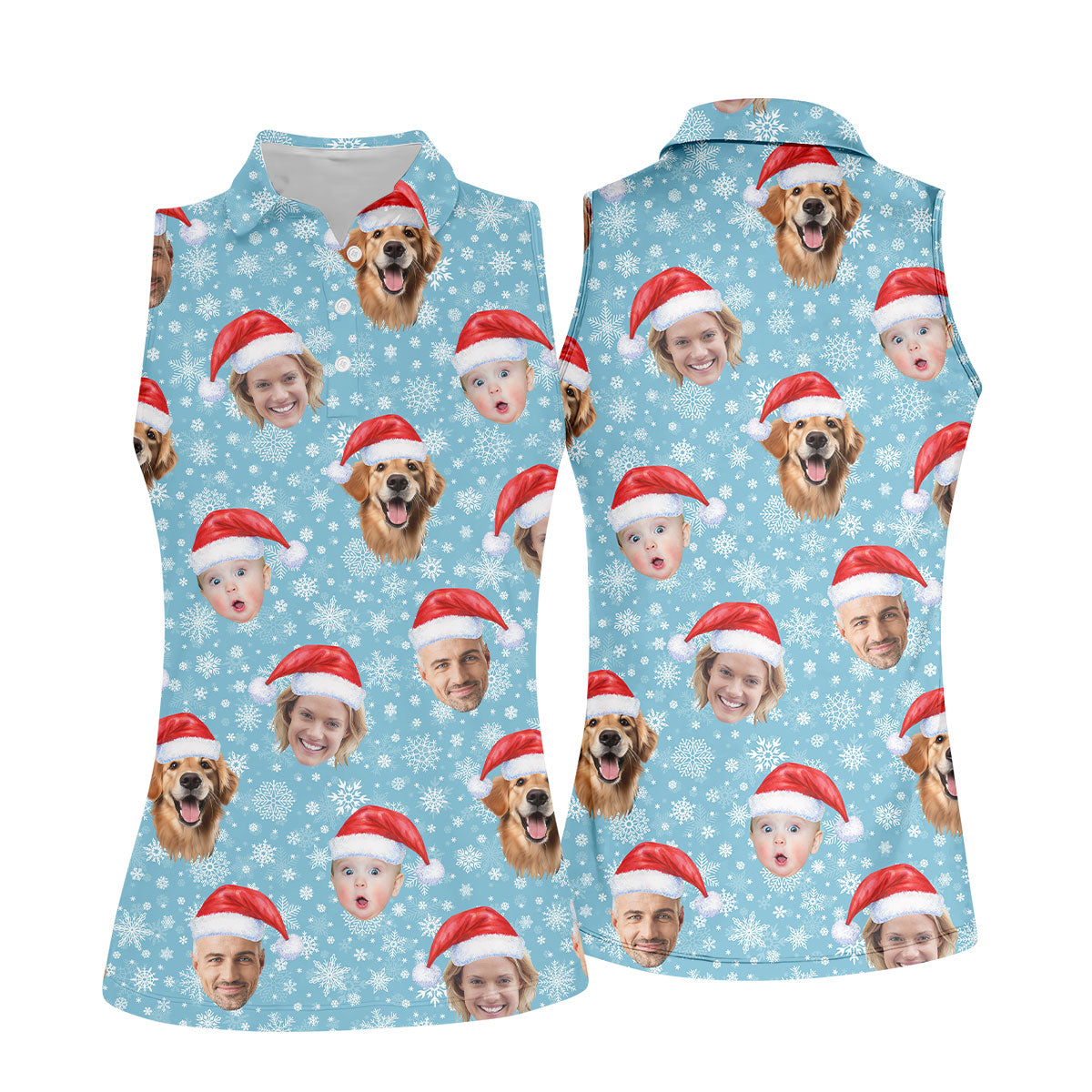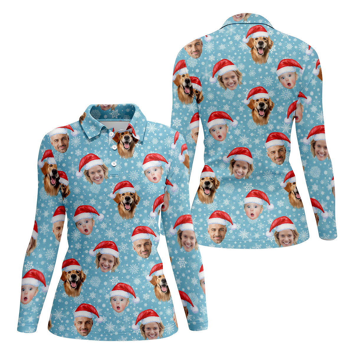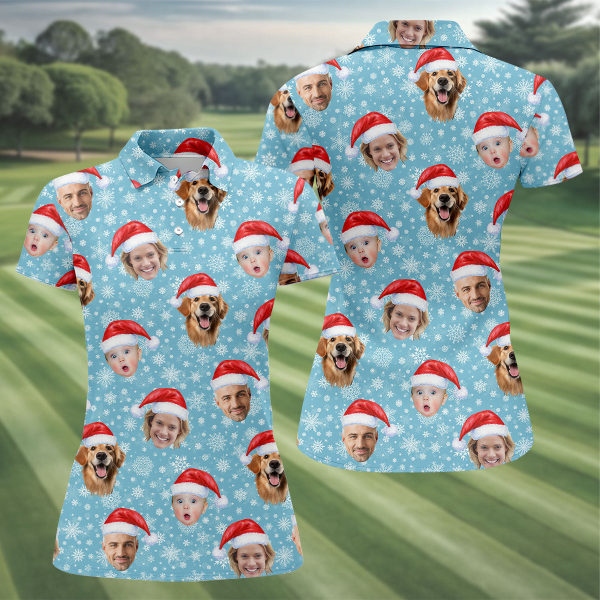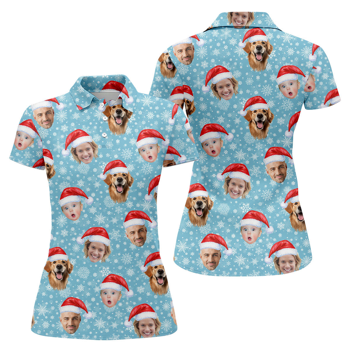 Custom Face Snowflakes Print Ice Blue Christmas Golf Shirt, Ladies Golf Shirts, Golf Gifts For Women