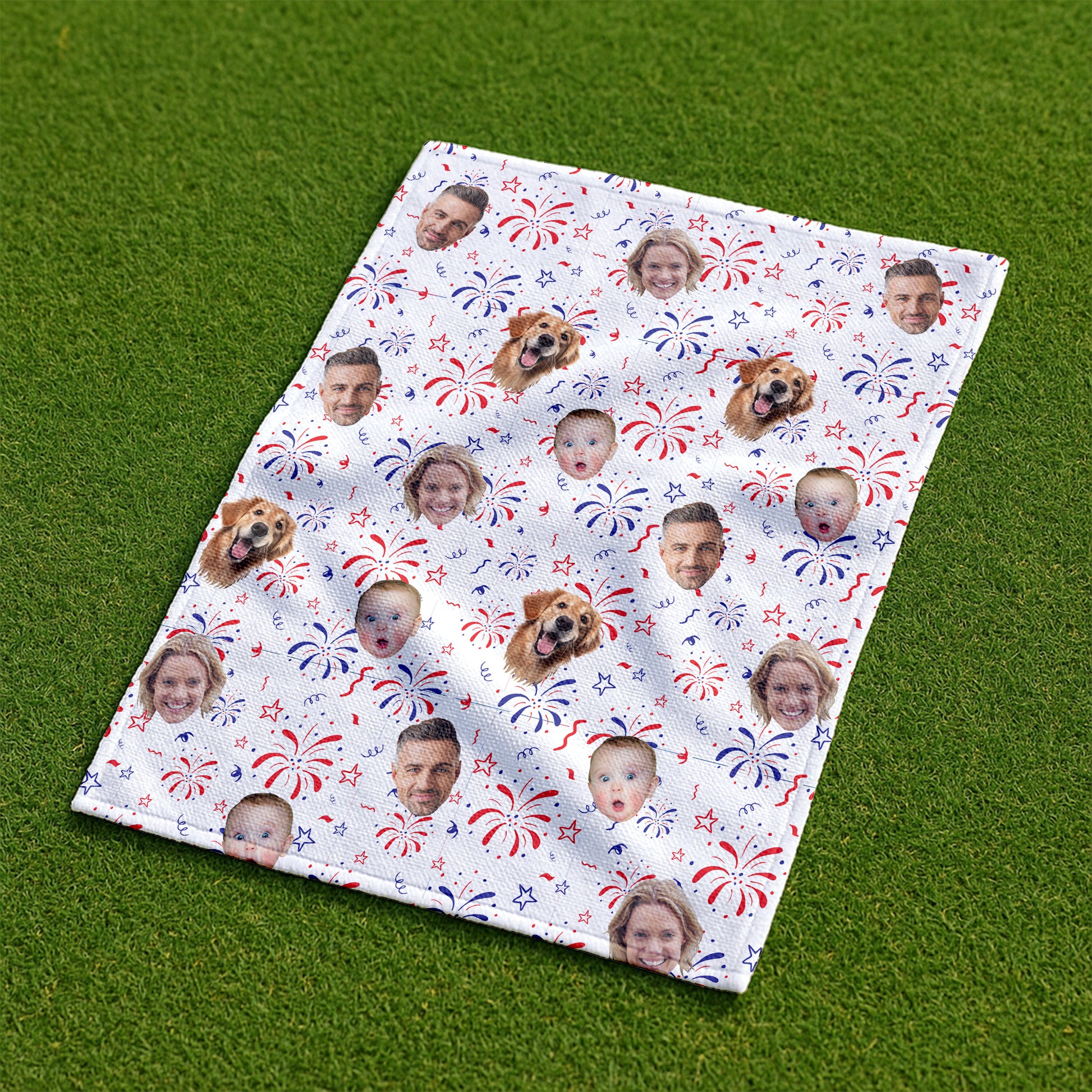 Custom Face Towel, 4th Of July Custom Towel With Faces, Patriotic Golf Towel, USA Golf Fireworks Towel