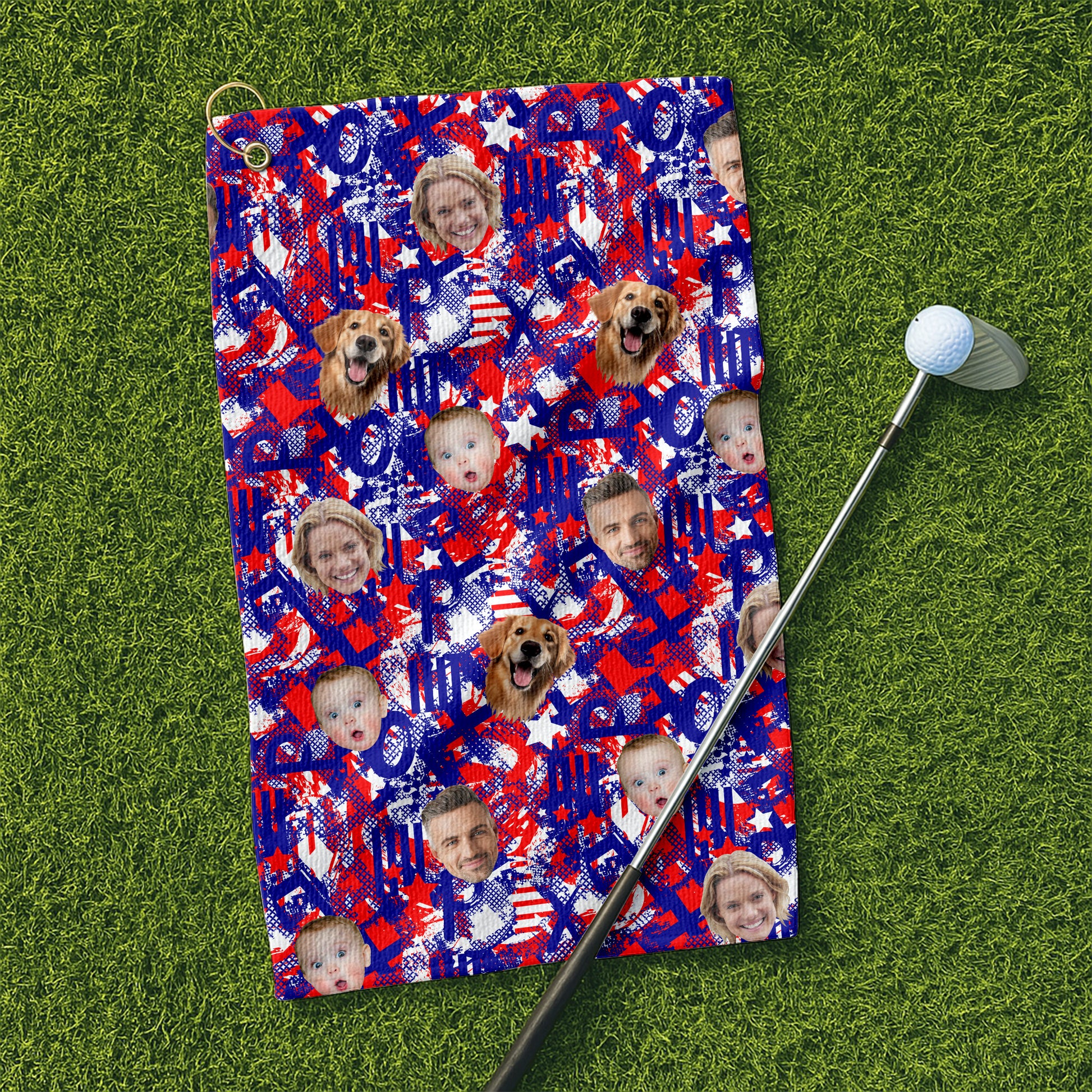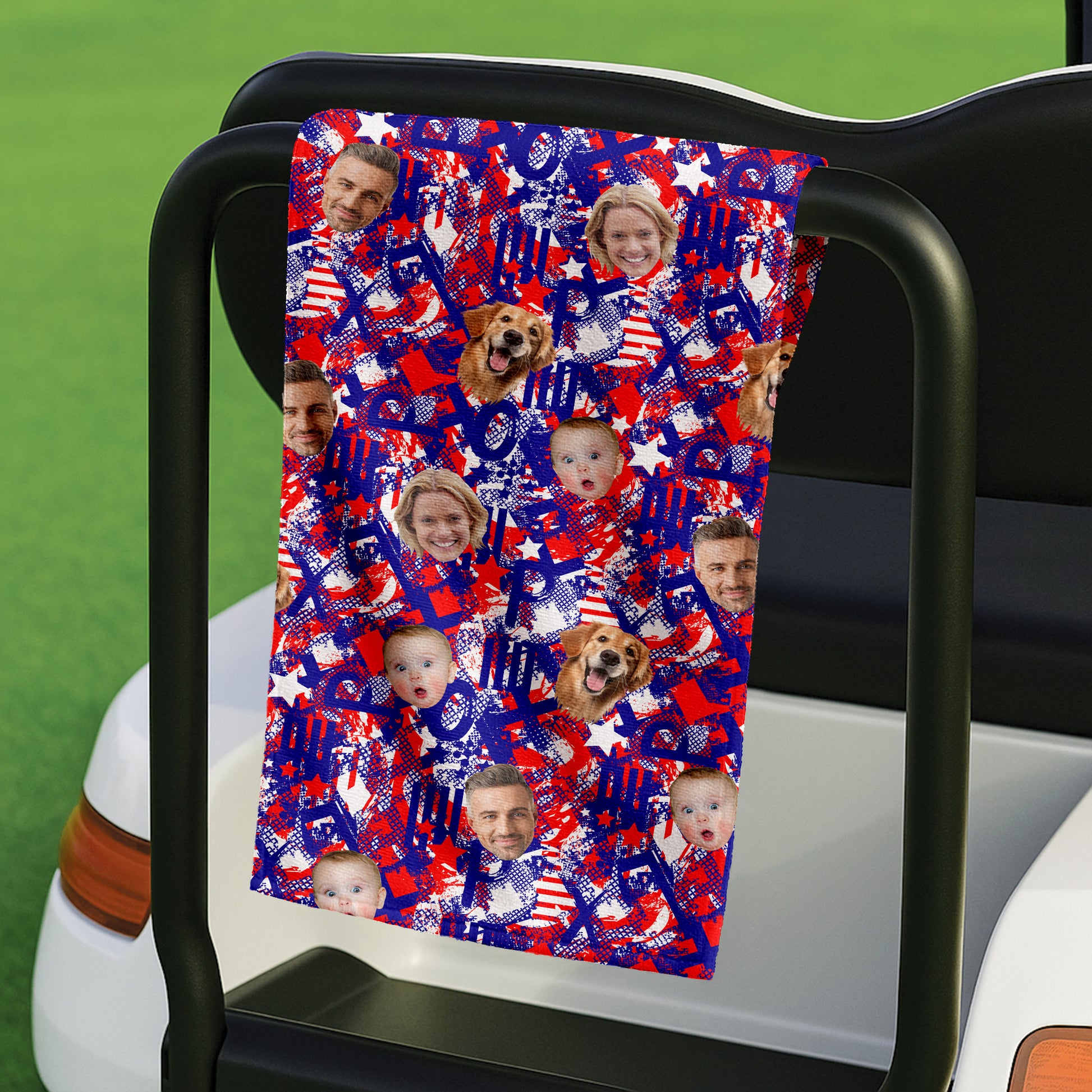 Custom Face Towel, 4th of July Golf Towel, Independence Day Golf Towel, Patriotic Golf Towel, USA Golf Towel
