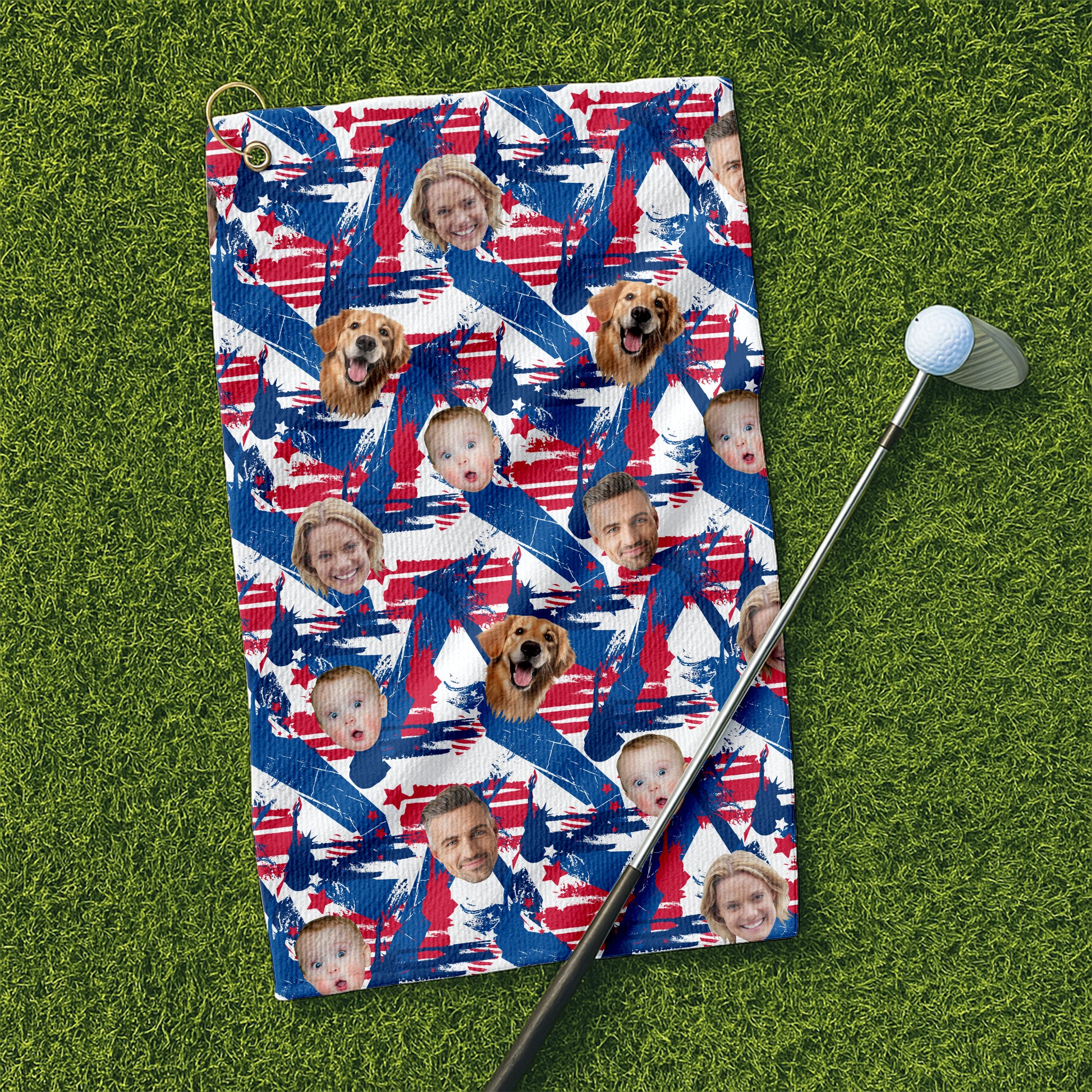 Custom Face Towel, 4th of July Golf Towel, Patriotic Golf Towel, USA Golf Towel, Independence Day Golf Towel