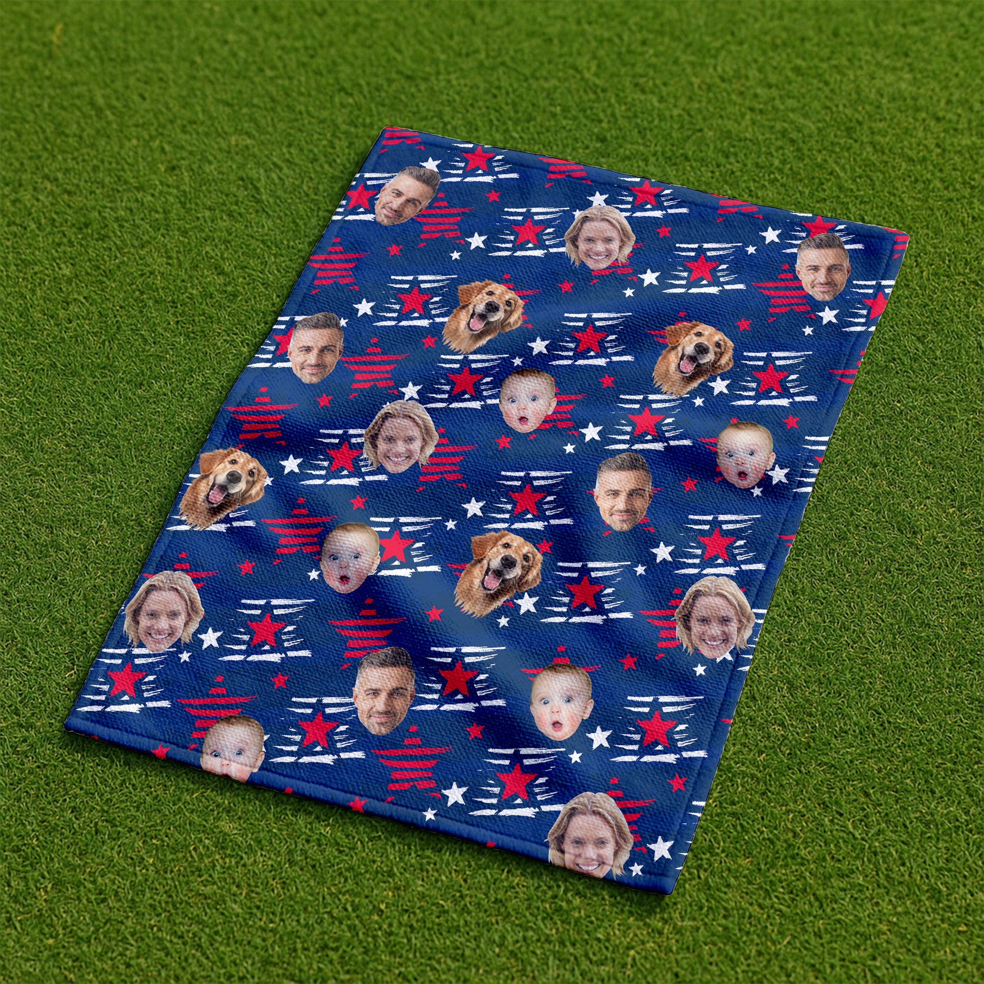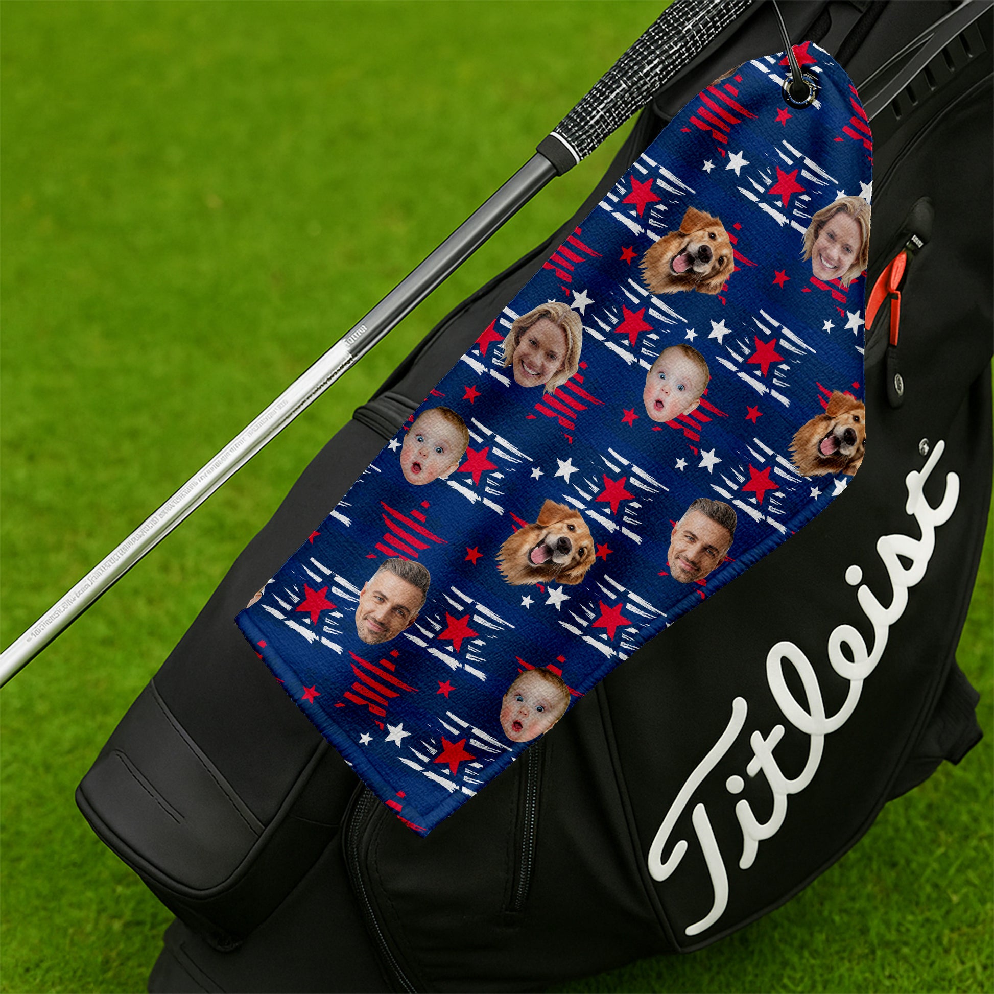 Custom Face Towel, 4th of July Stars Golf Towel, American Flag Custom Towel With Faces, Patriotic Golf Towel