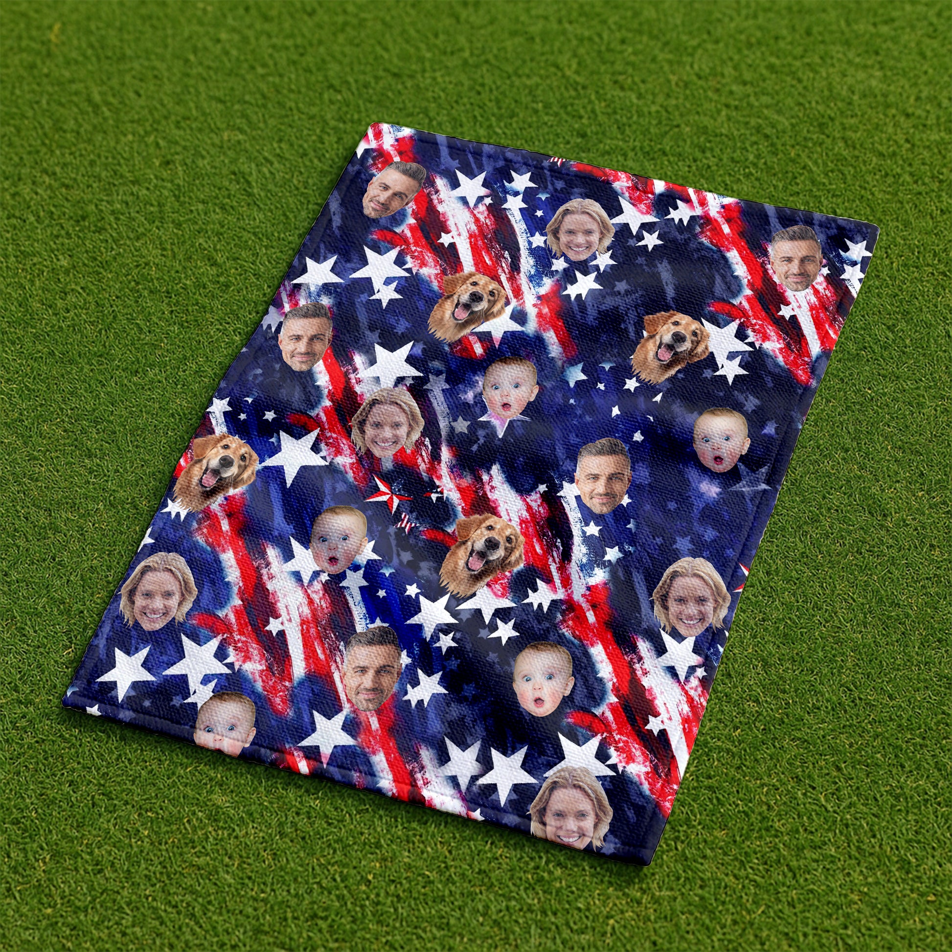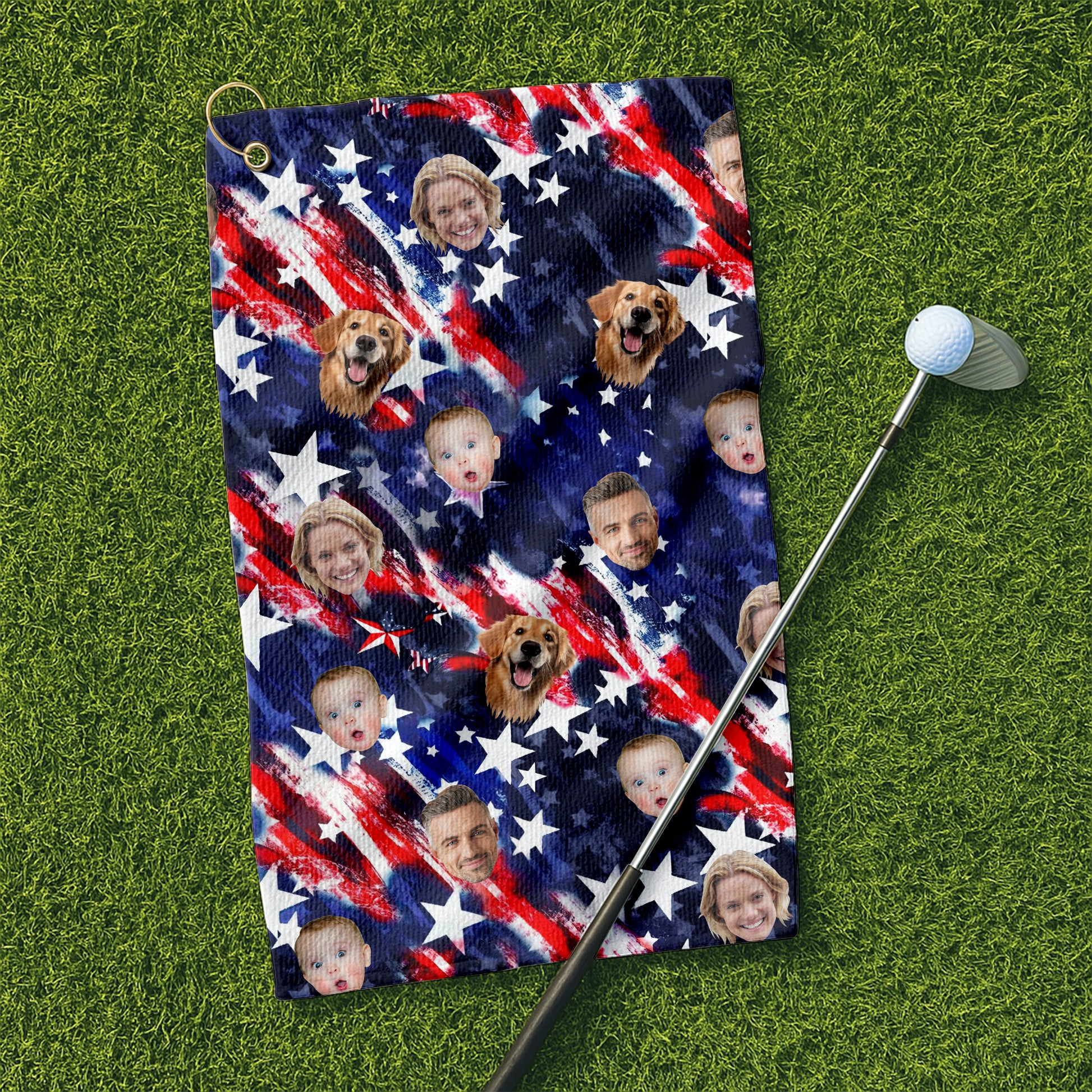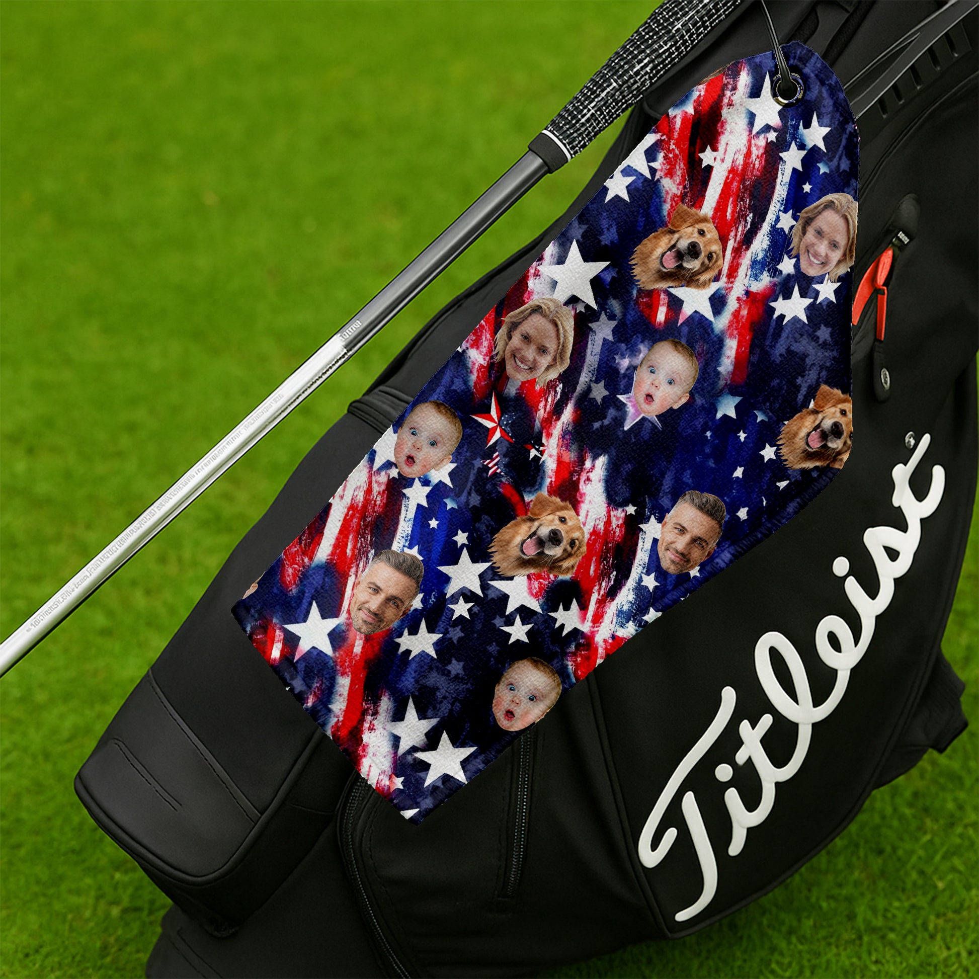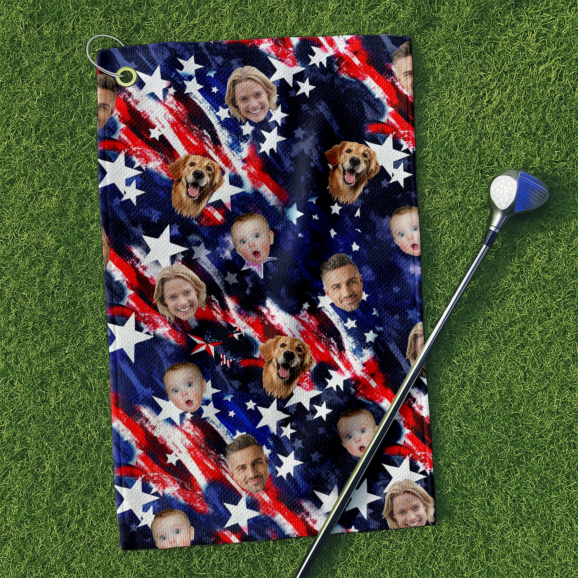 Custom Face Towel, 4th of July Stars Towel, Patriotic Golf Towel, USA Independence Day Towel With Faces