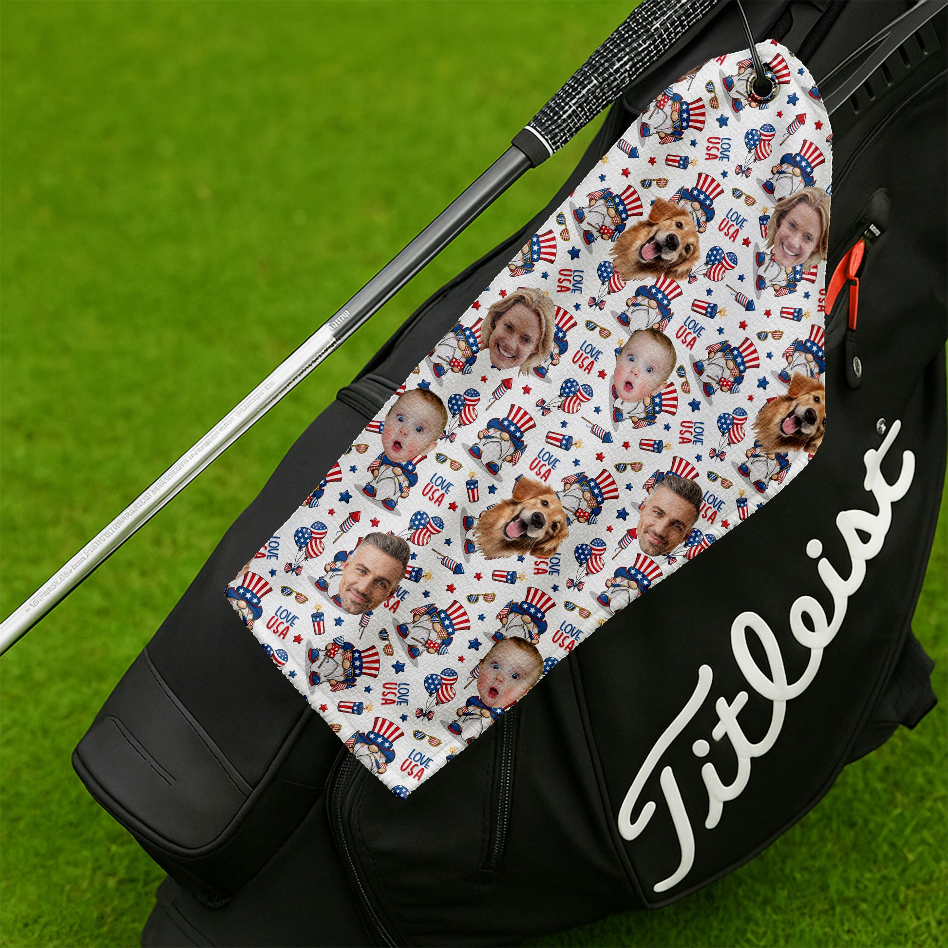 Custom Face Towel, I Love USA Personalized Face Towel, Patriotic Golf Towel, 4th Of July Towel, USA Golf Towel