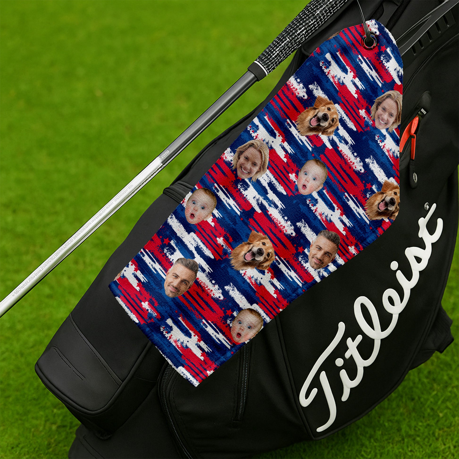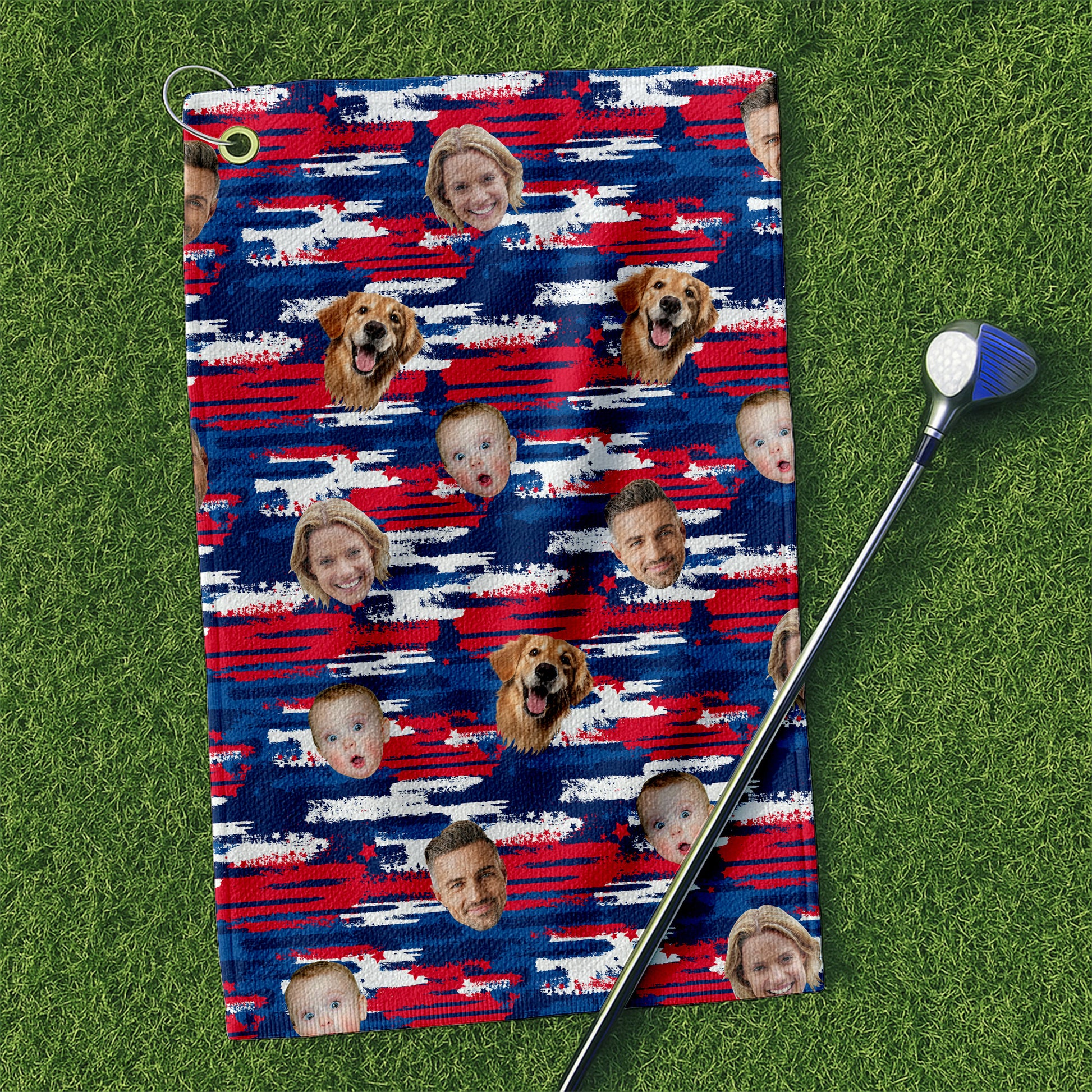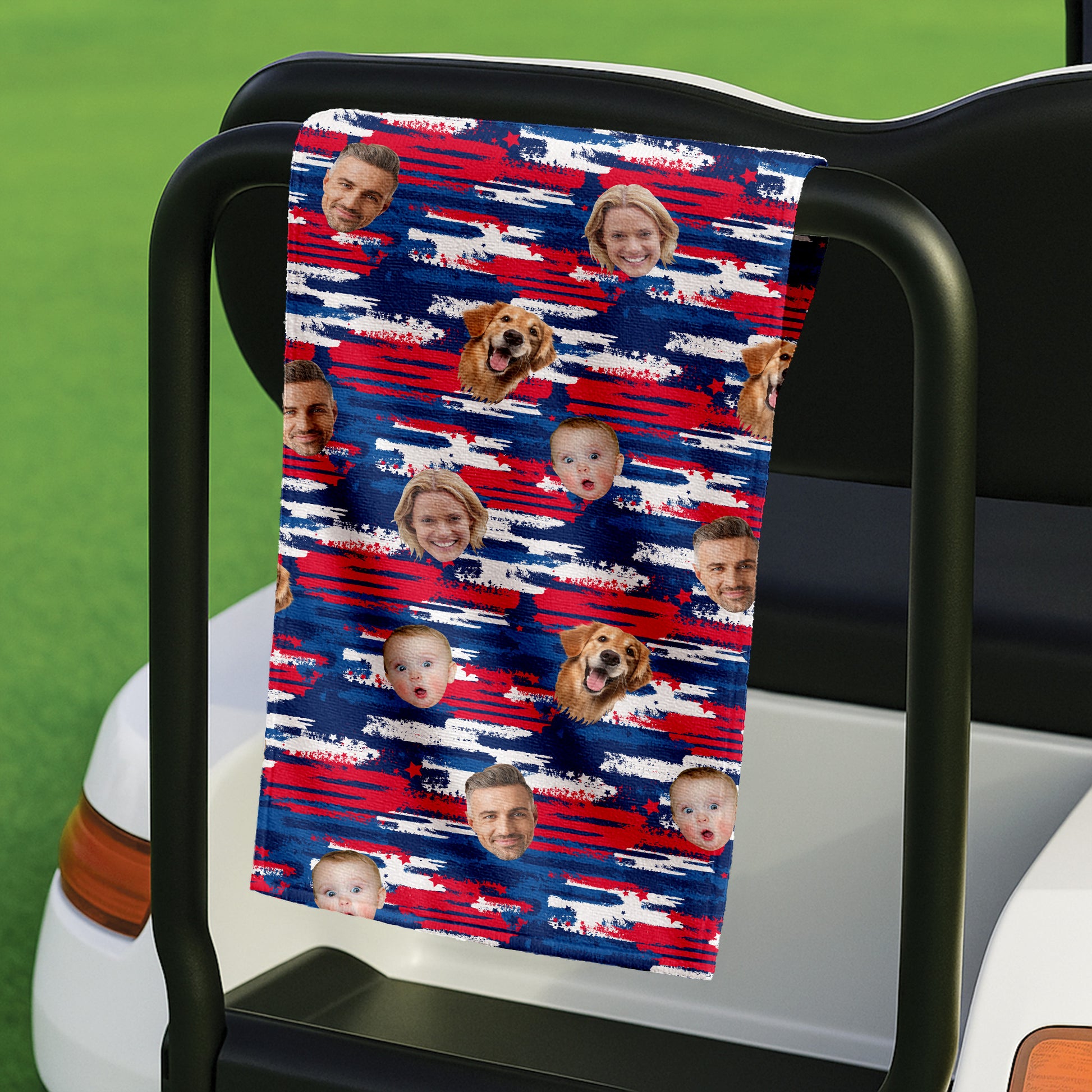 Custom Face Towel, Patriotic Golf Towel, 4th of July Stars Golf Towel, American Flag Custom Towel With Faces