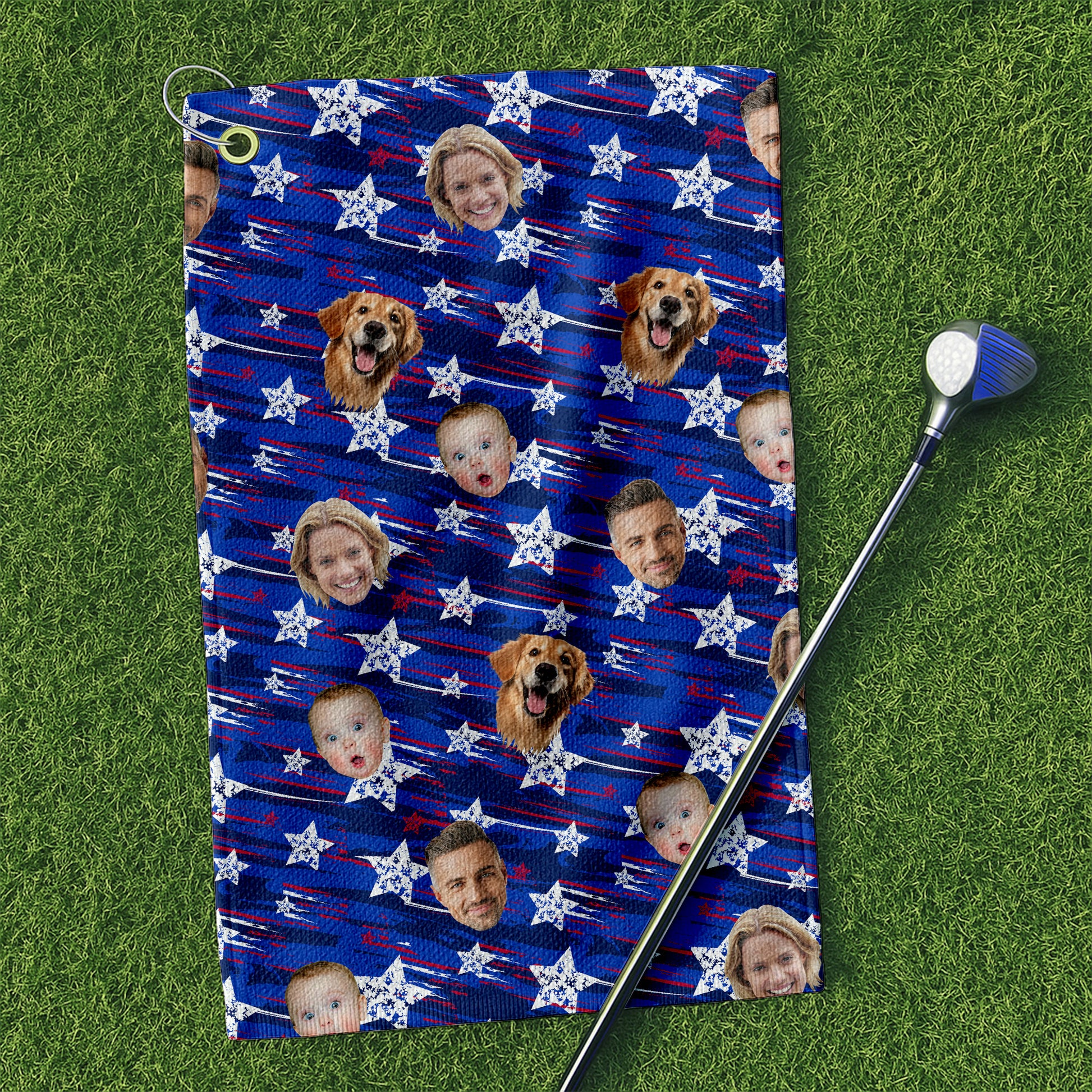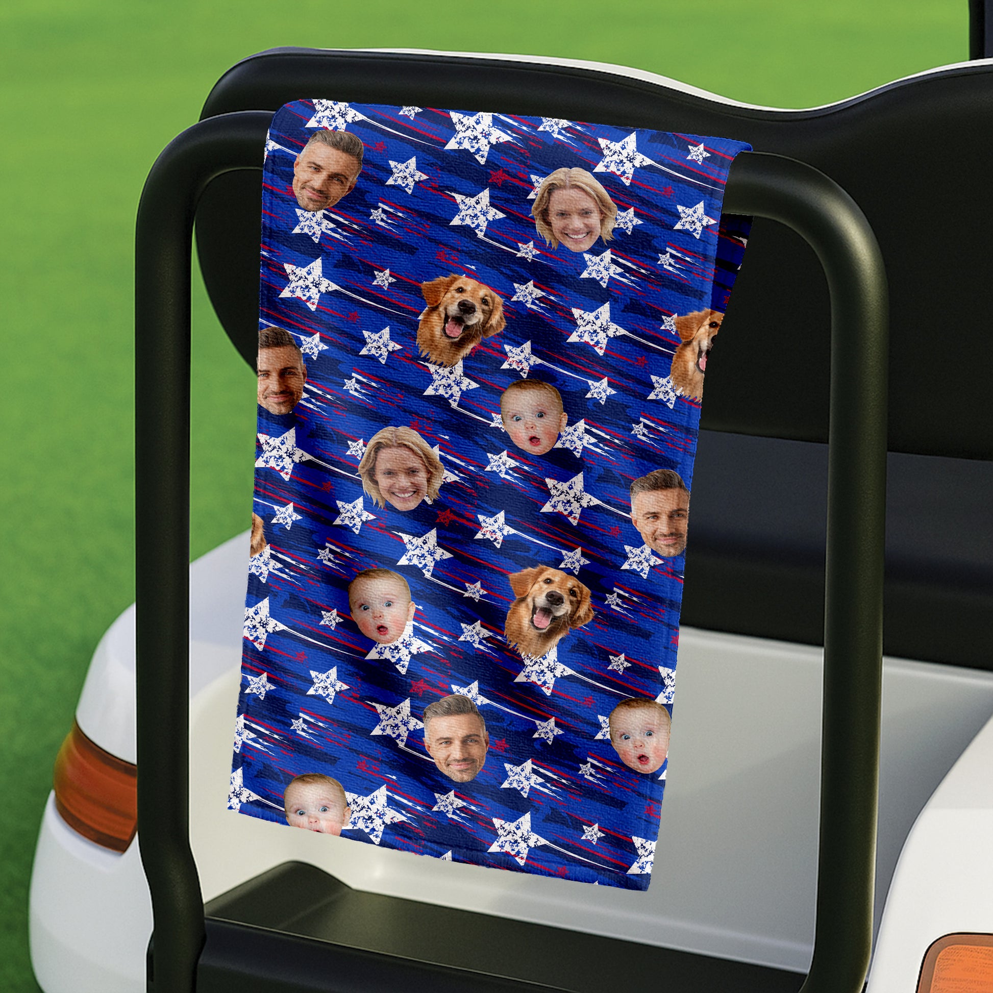 Custom Face Towel, Patriotic Golf Towel, Independence Day Custom Towel With Faces, 4th of July Stars, USA Golf Towel