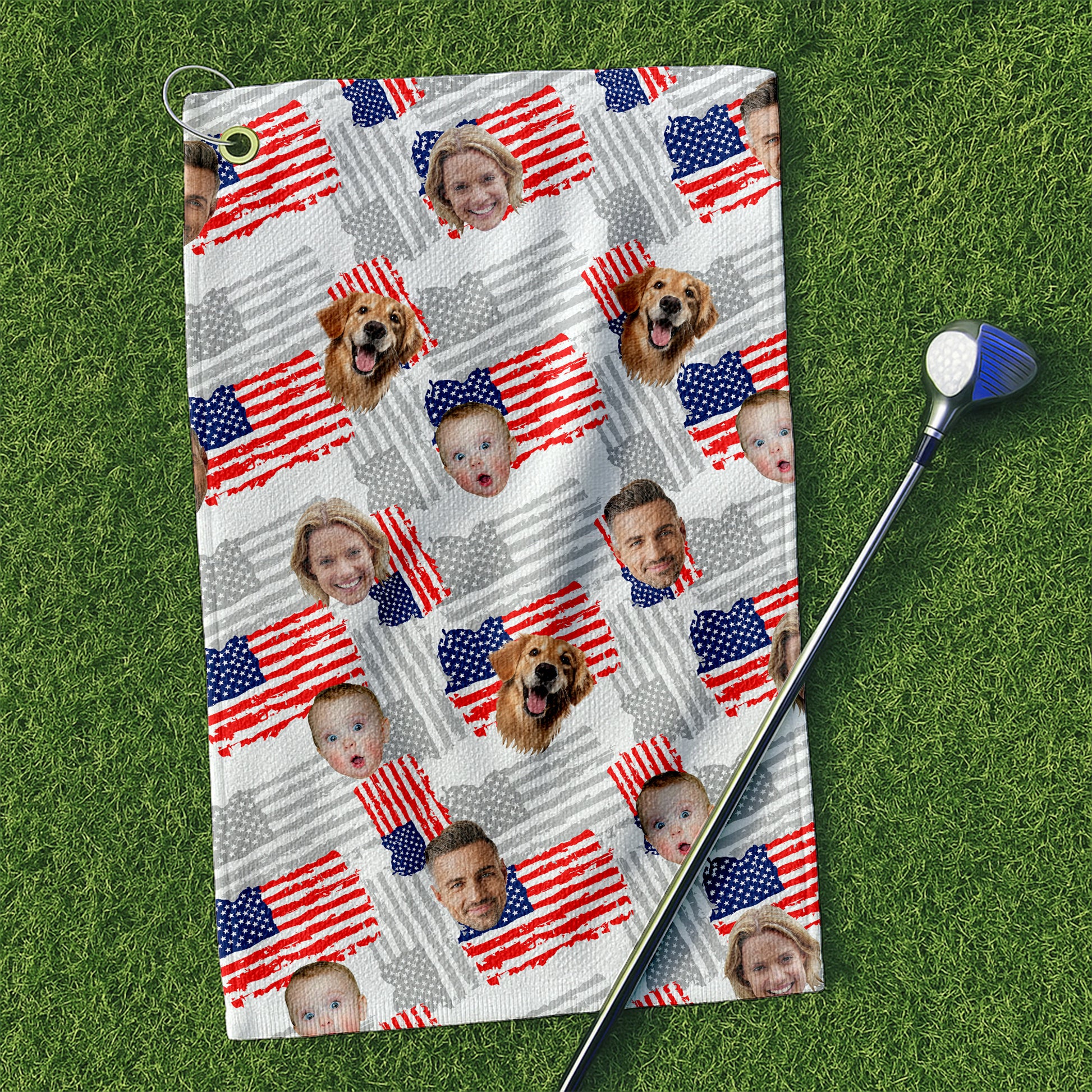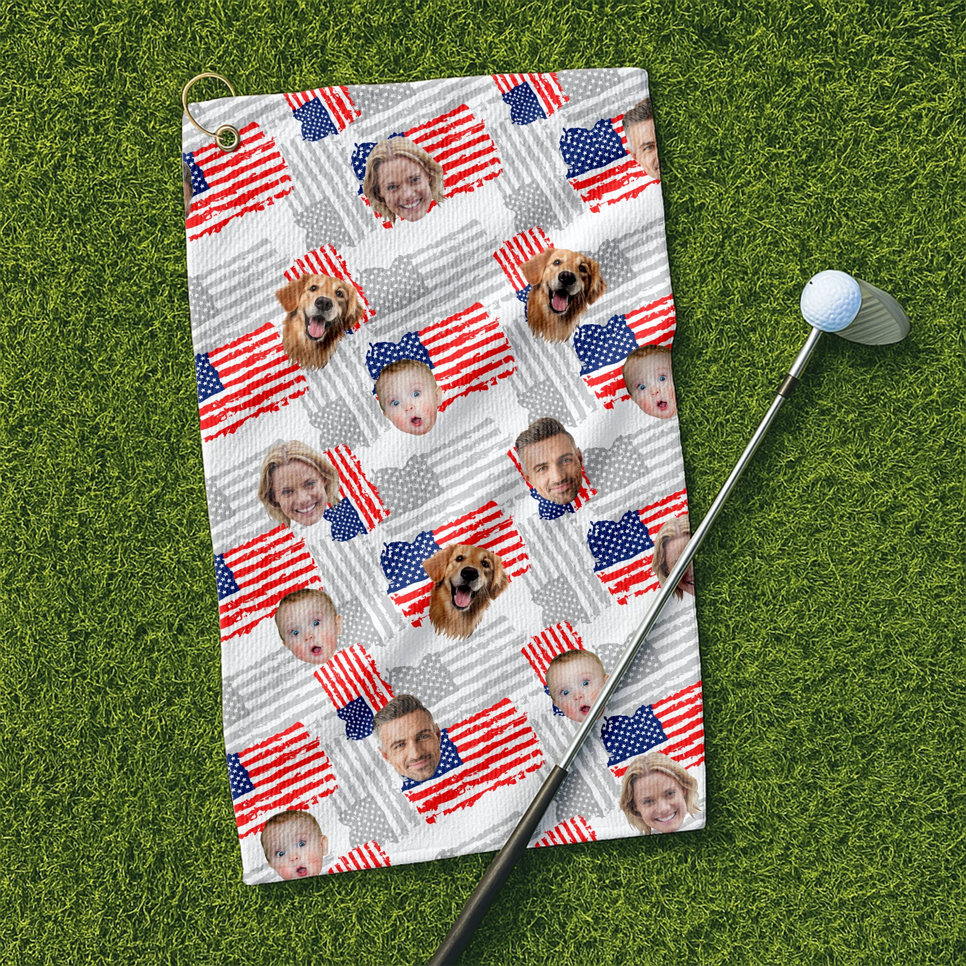 Custom Face Towel, US Patriotic Golf Towel, Small Funny 4th Of July Towel, Patriotic USA Custom Towel With Faces