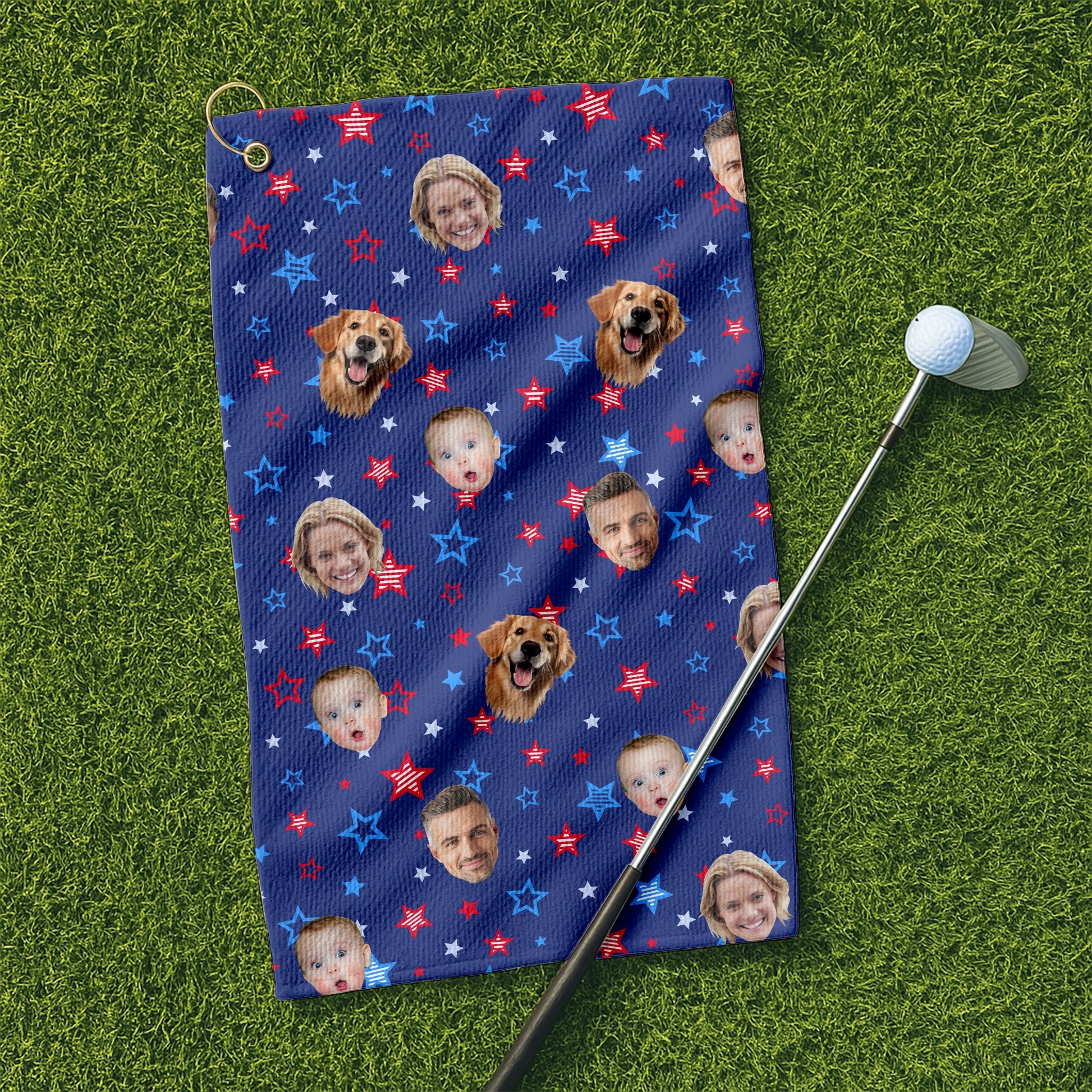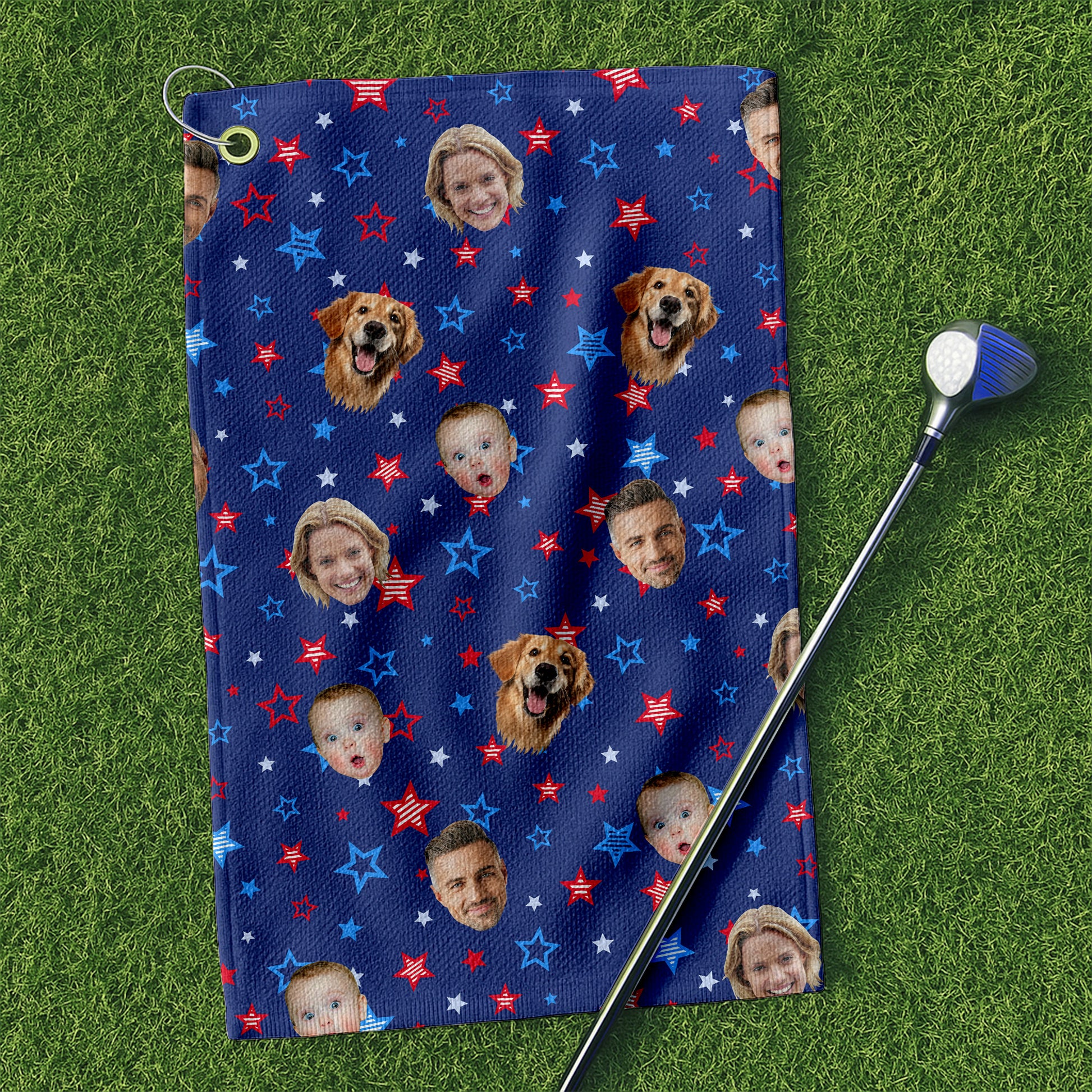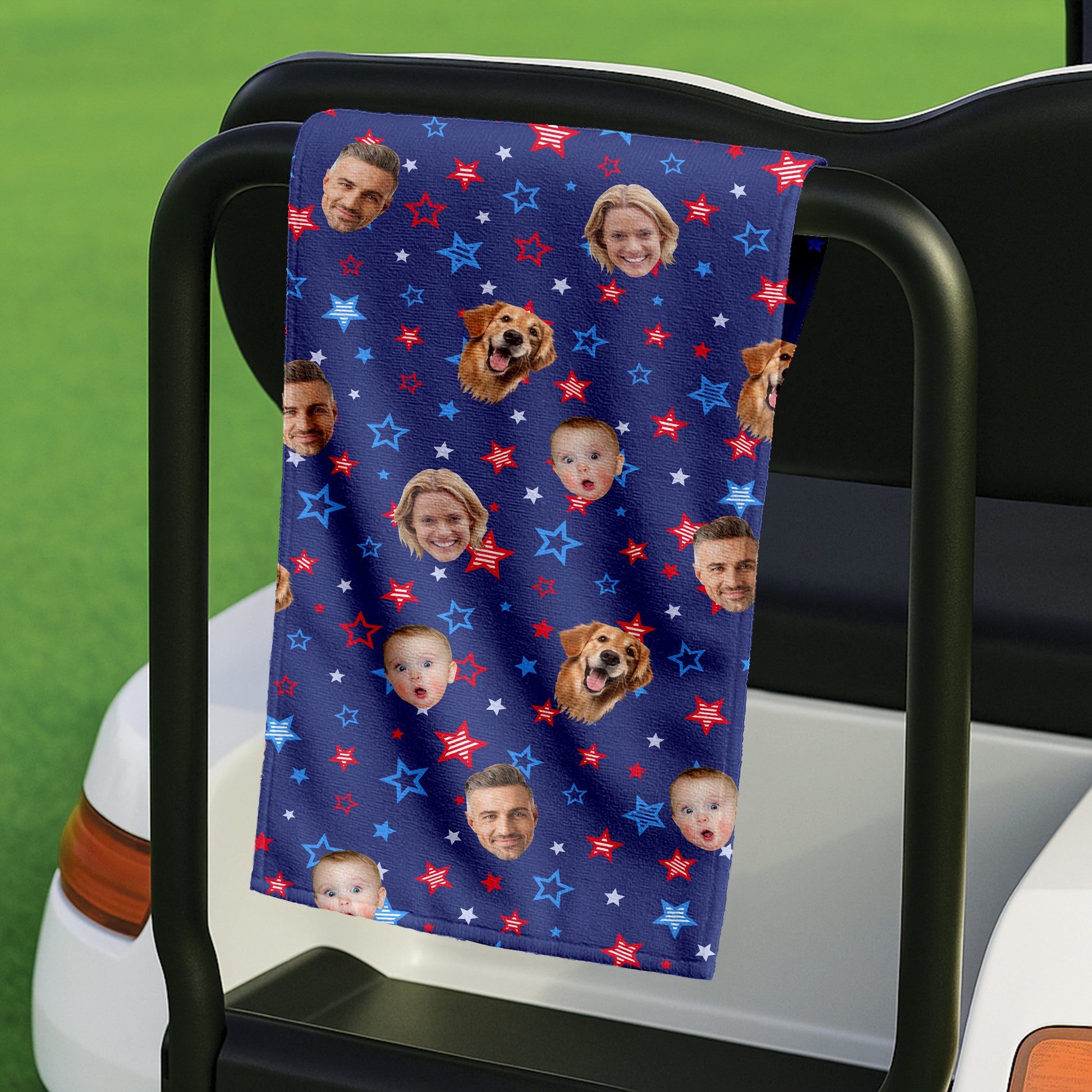 Custom Face Towel, Patriotic USA Custom Towel With Faces, USA Golf Towel, 4th Of July Towel