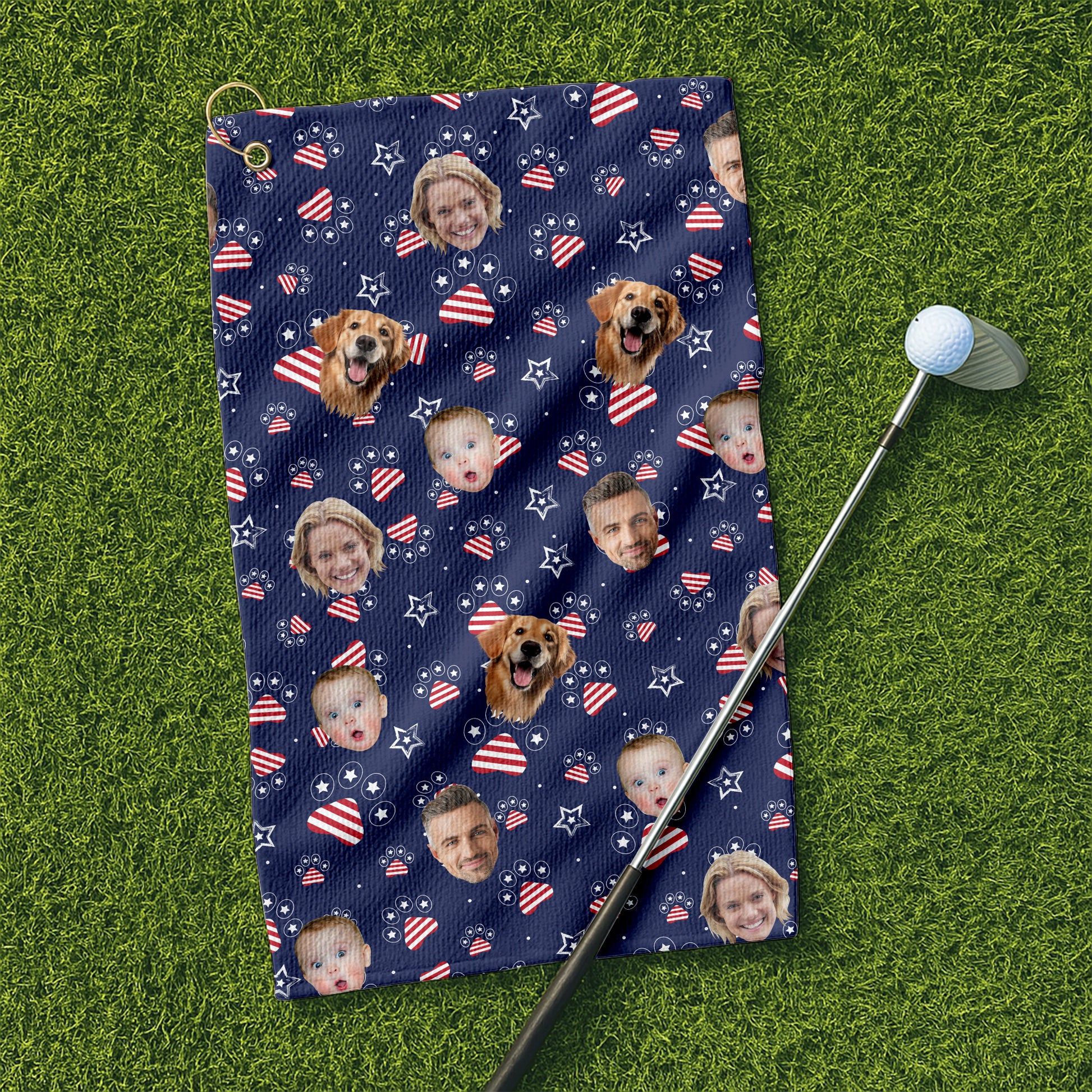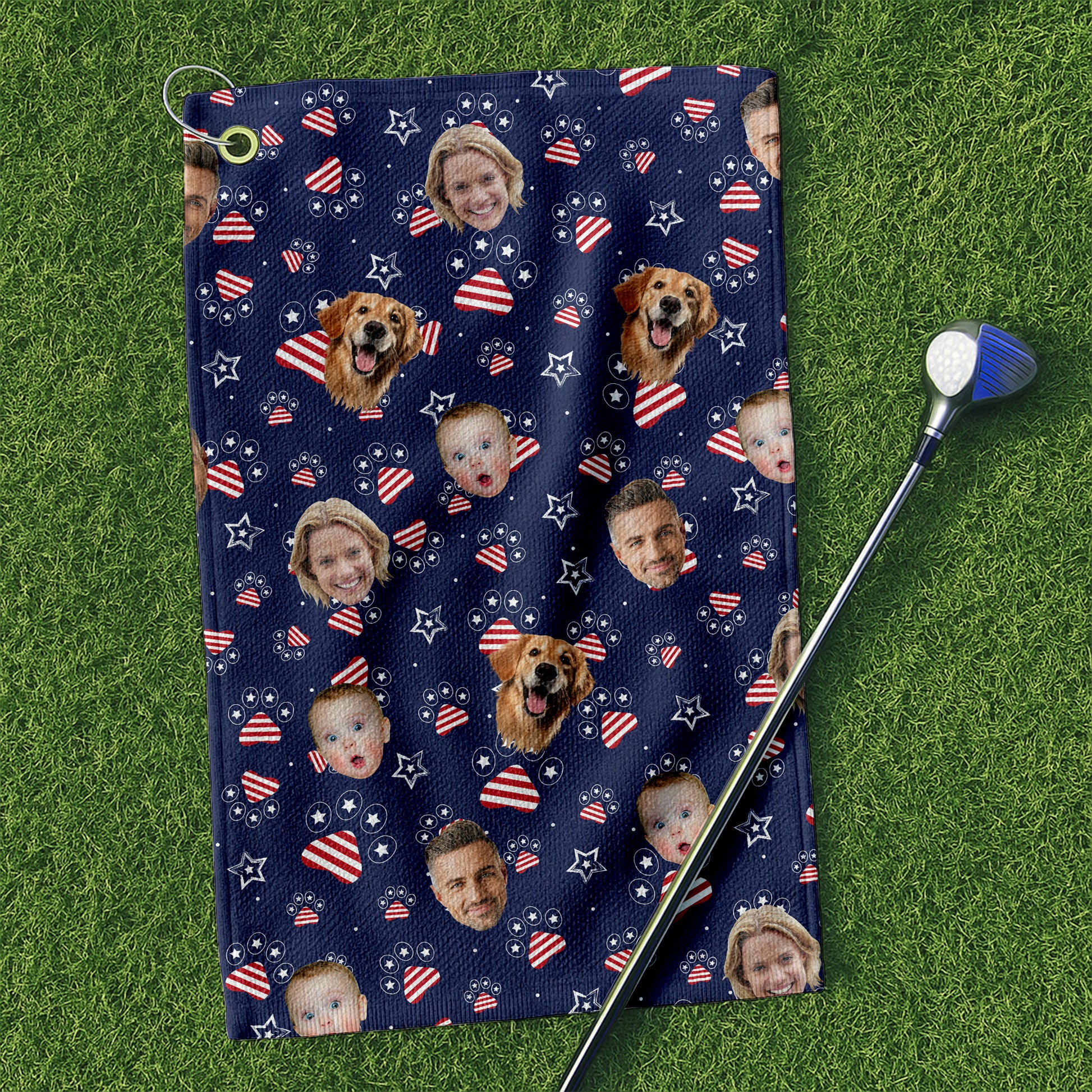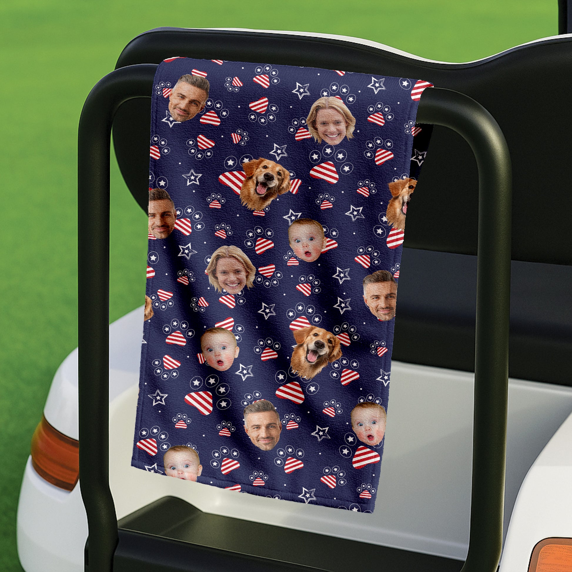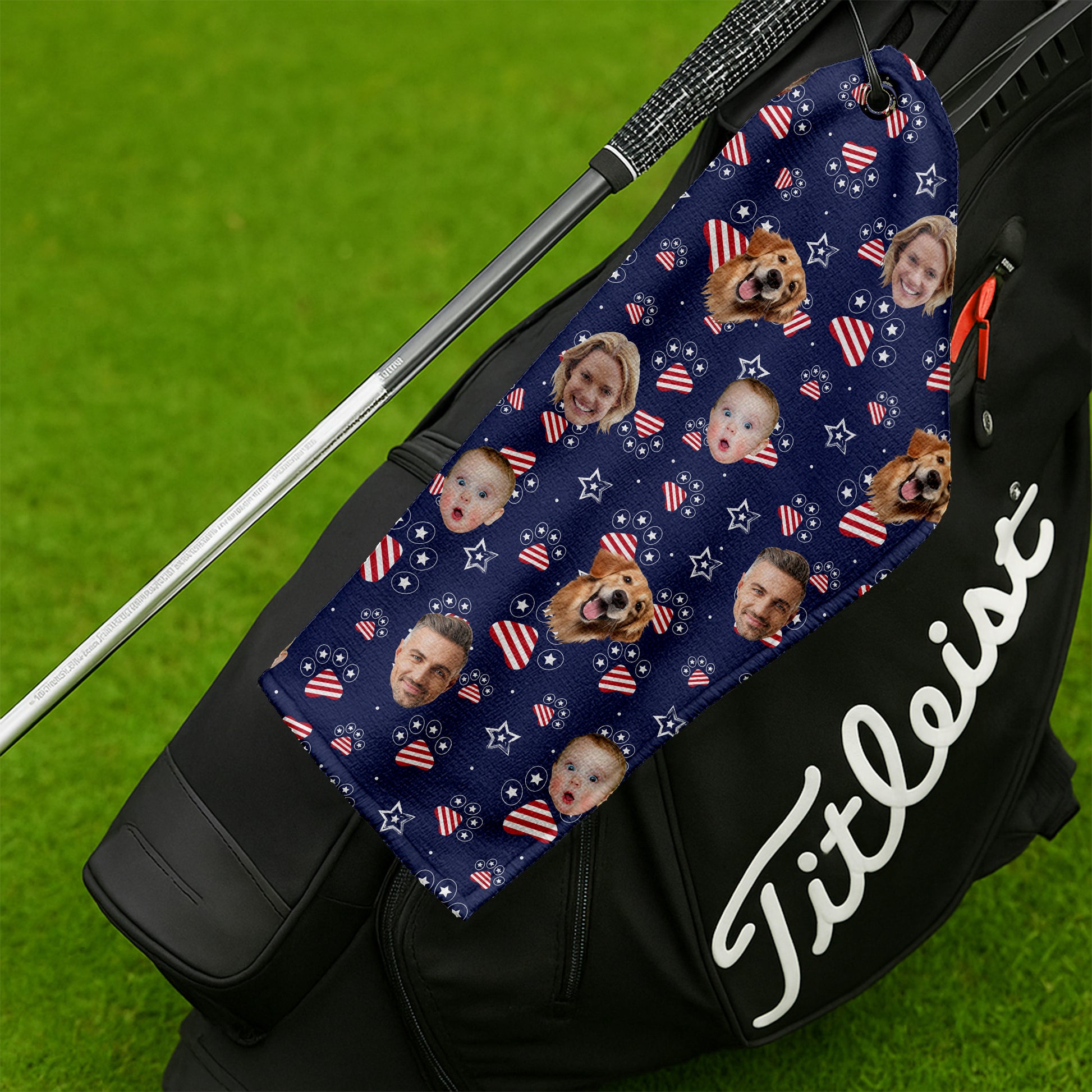 Custom Face Towel, USA Independence Day Towel With Faces, America Flag Golf Towel, Patriotic Golf Towel