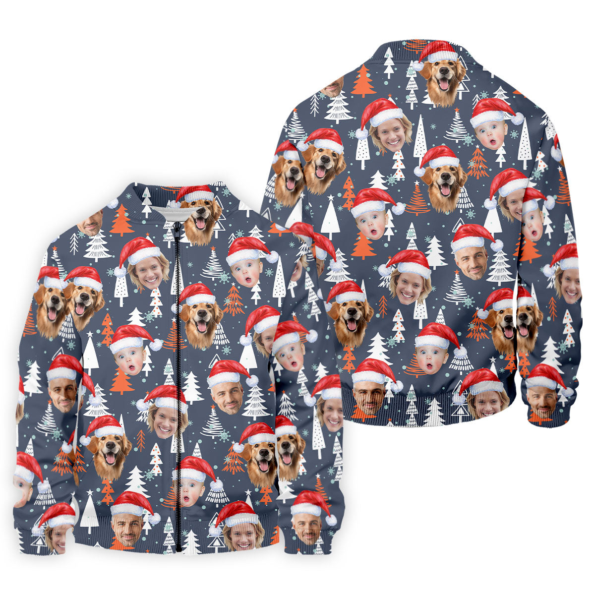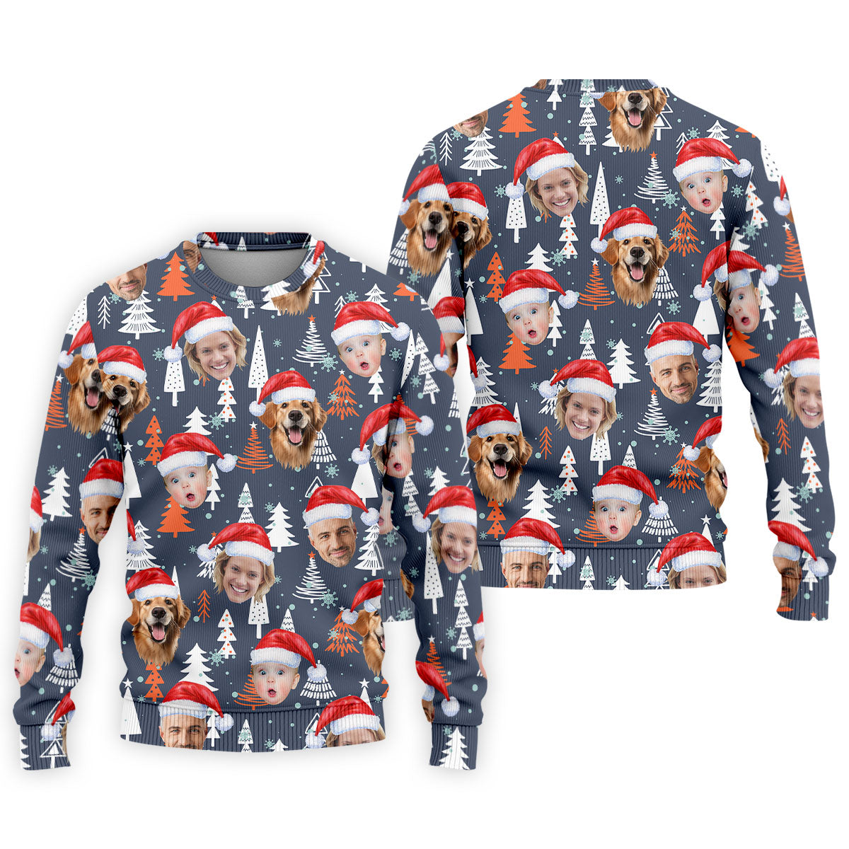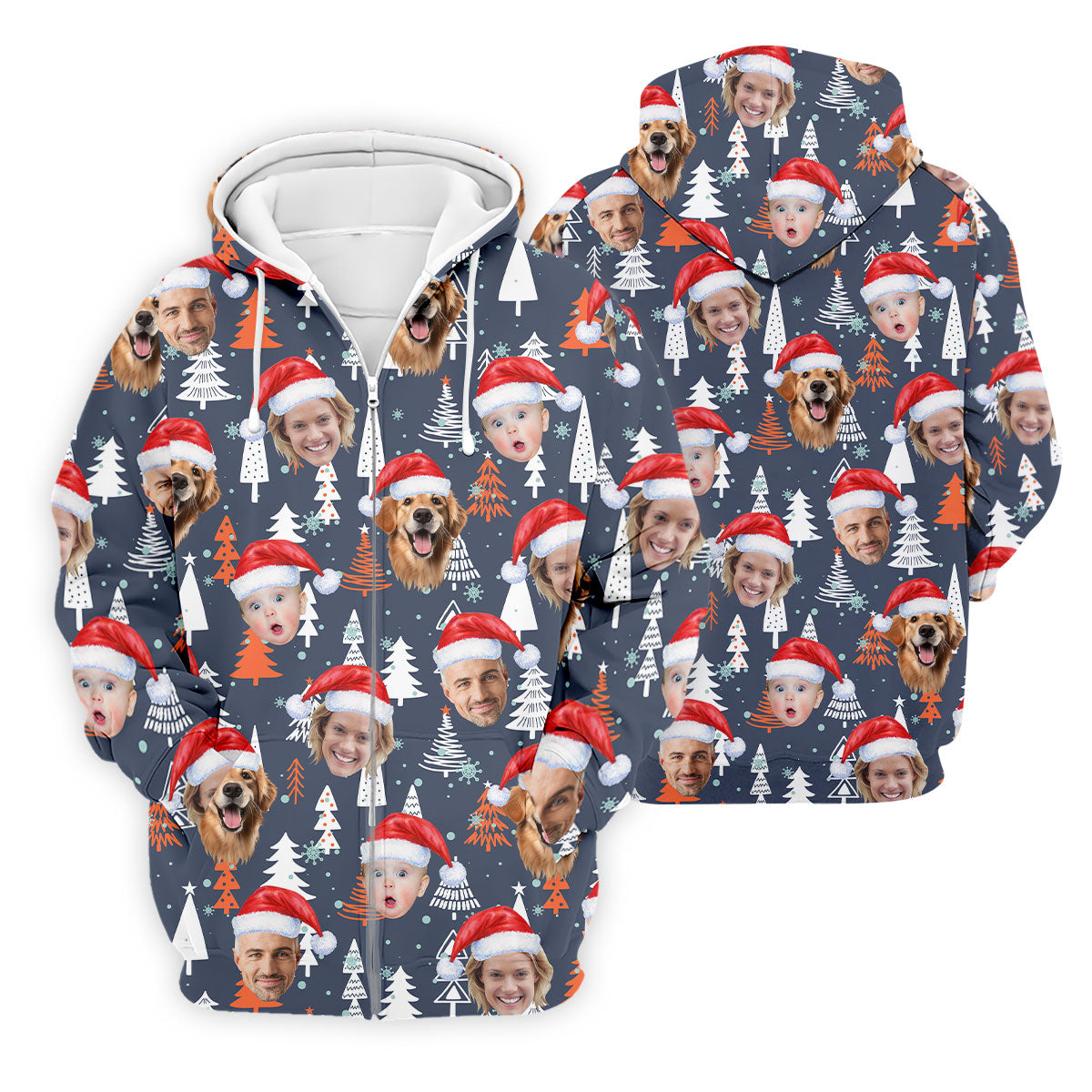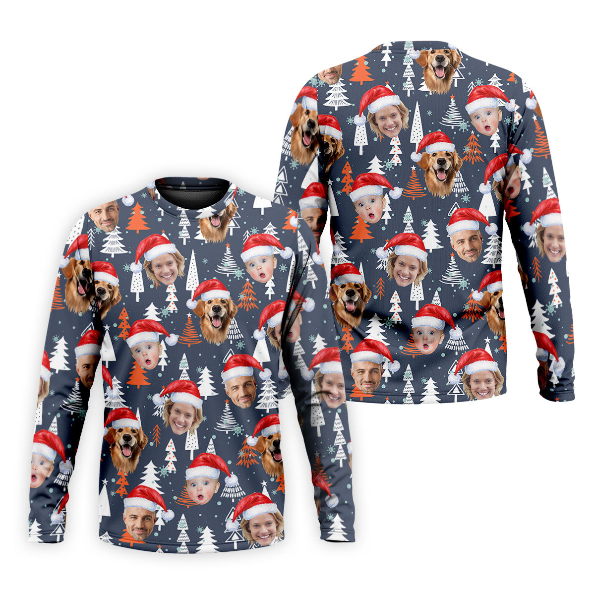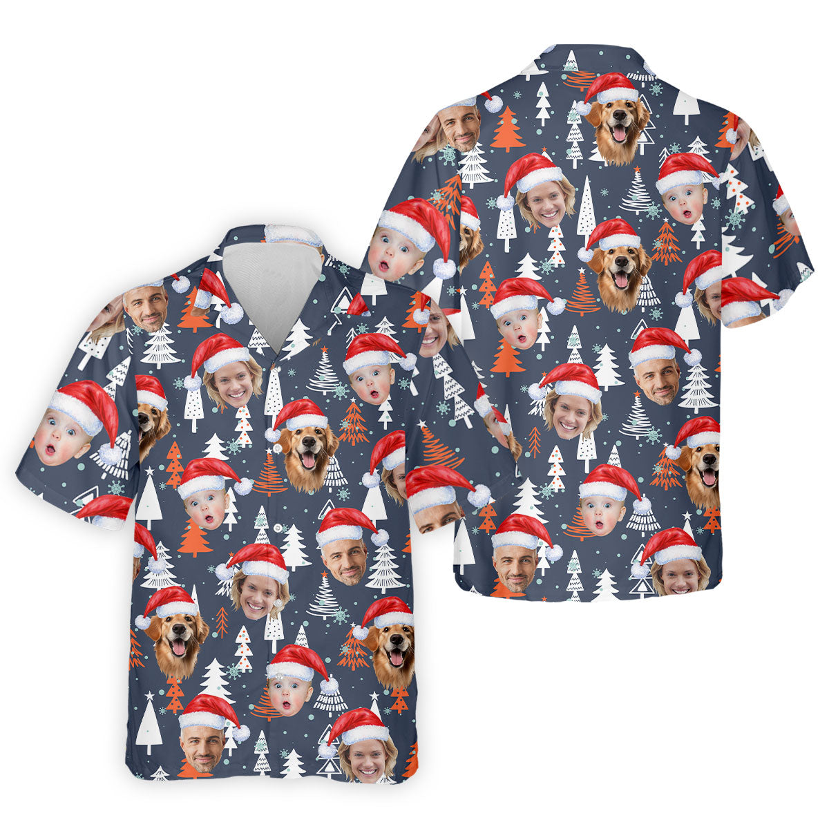 Custom Face White And Orange Xmas Pine Tree Christmas Golf Shirt, Golf Gift For Men, Golf Shirts For Men