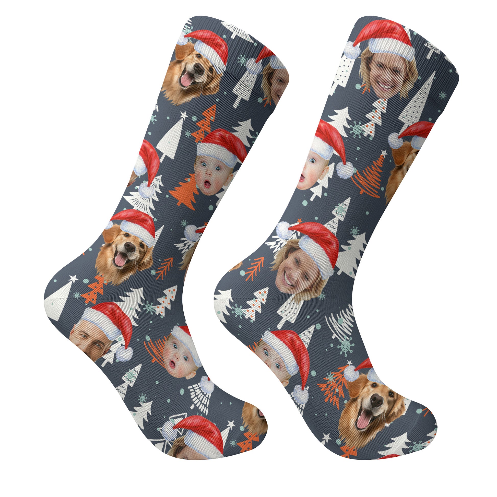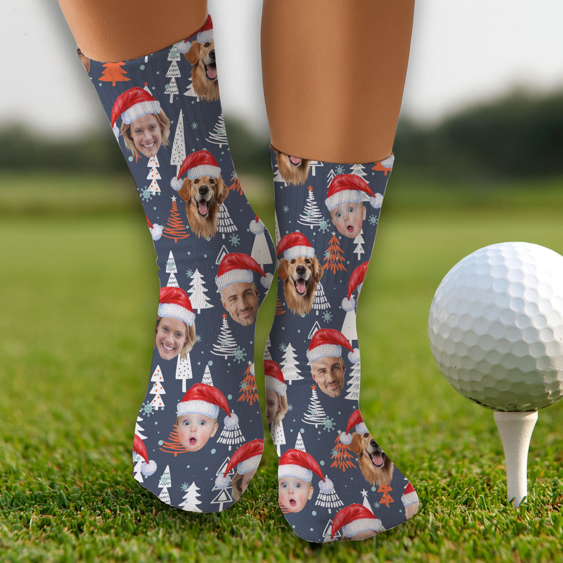 Custom Face White And Orange Xmas Pine Tree Golf Socks, Christmas Golf Gift, Custom Golf Accessories
