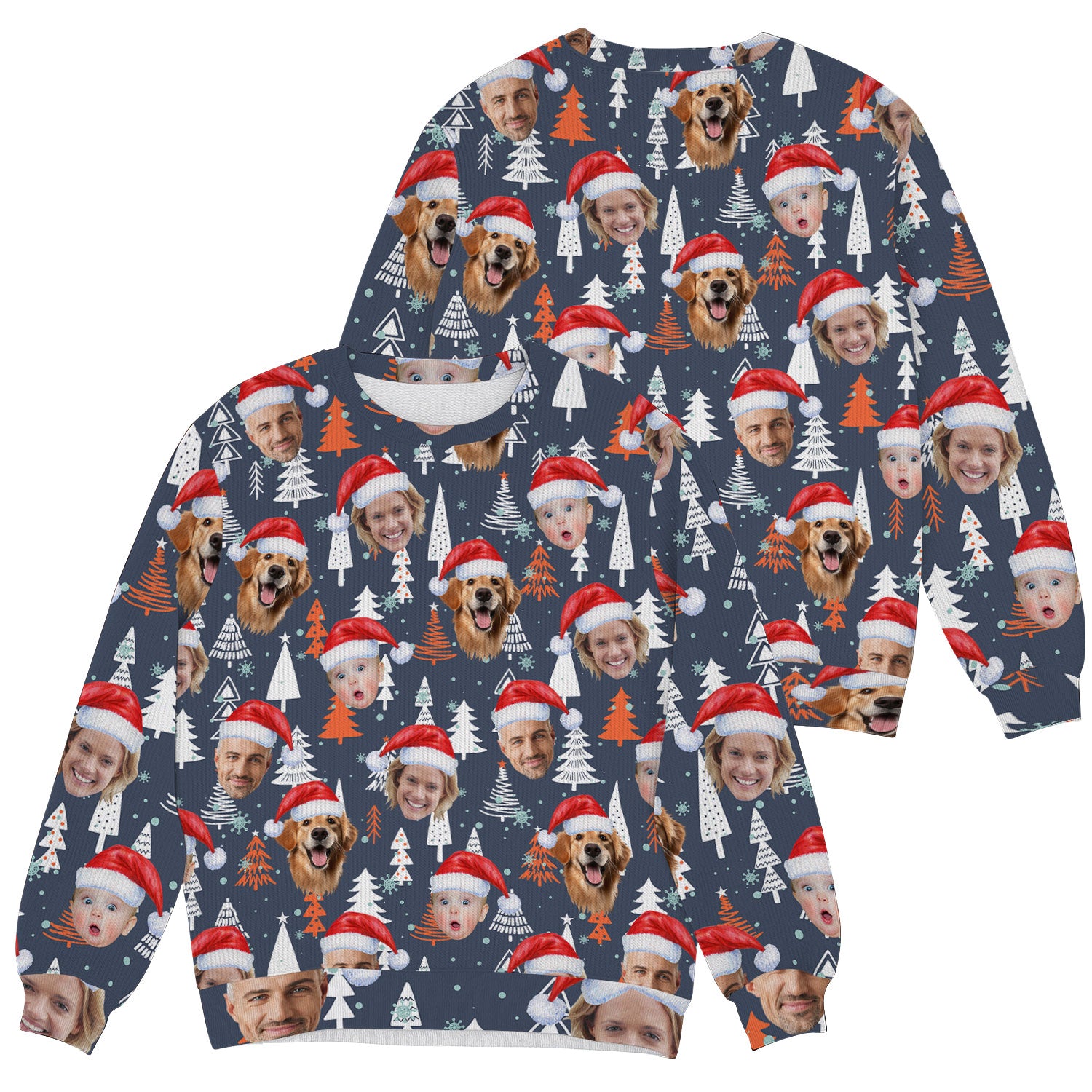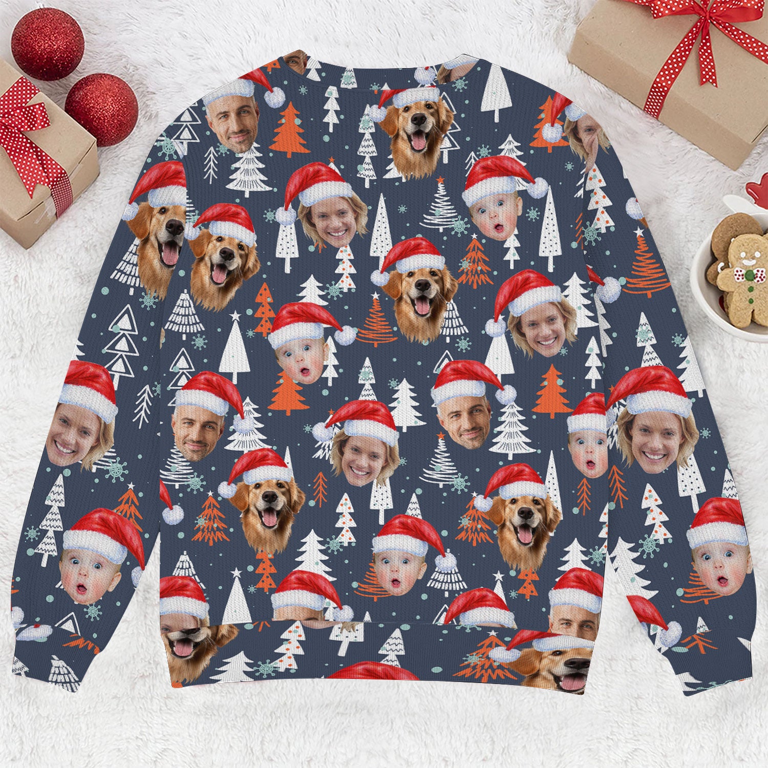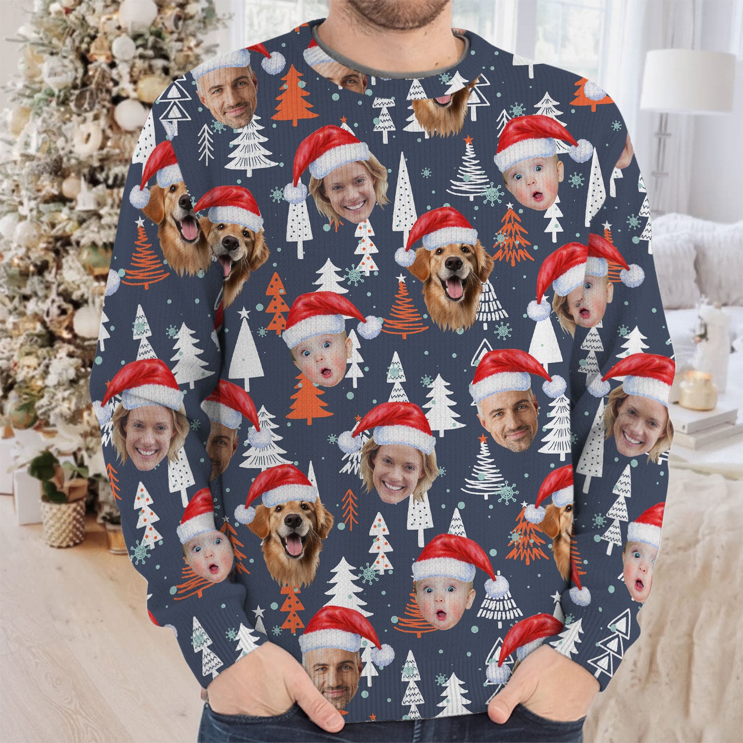 Custom Face White And Orange Xmas Pine Tree Golf Ugly Sweater, Christmas Golf Shirt, Golf Sweater