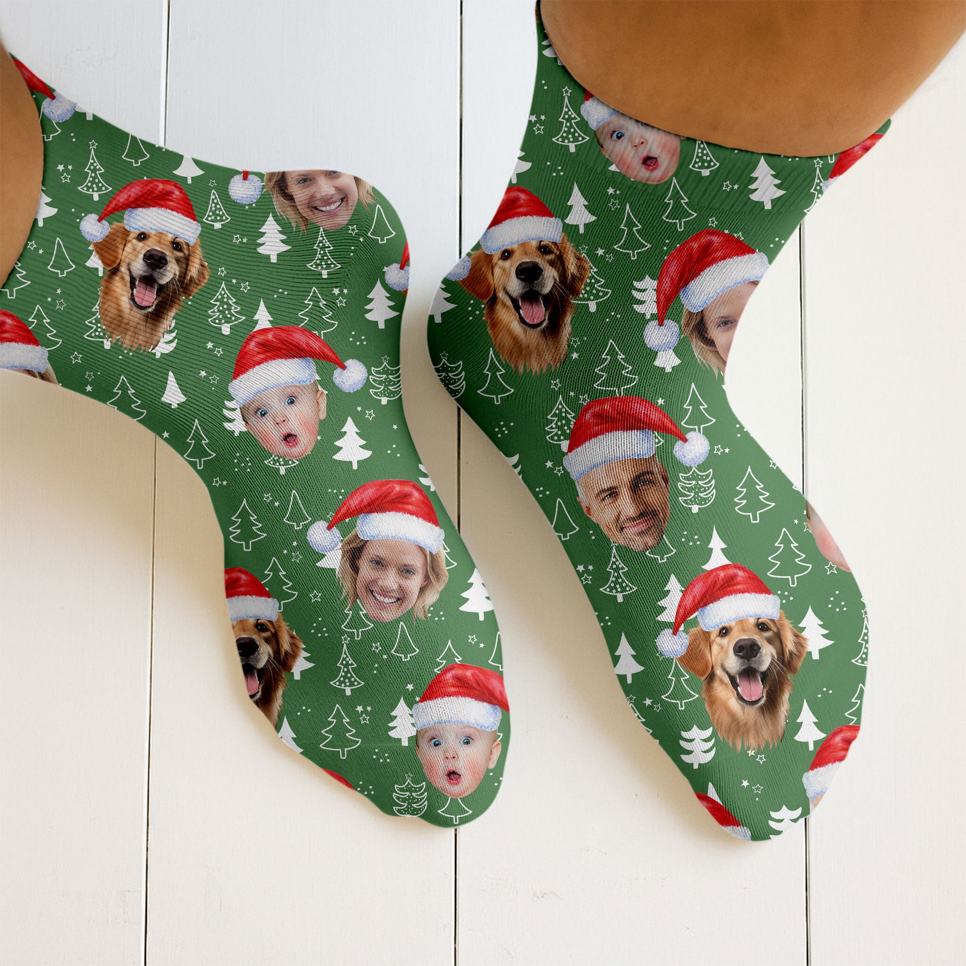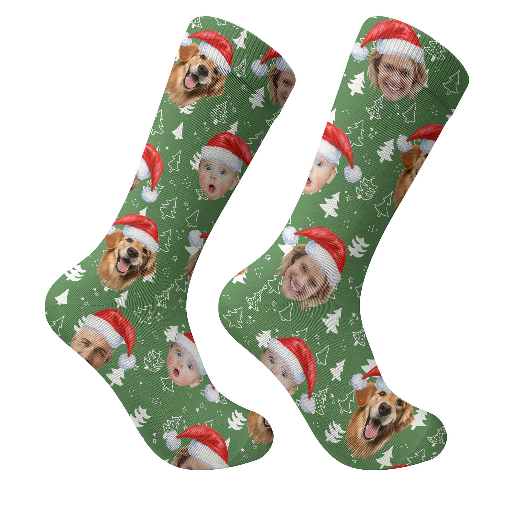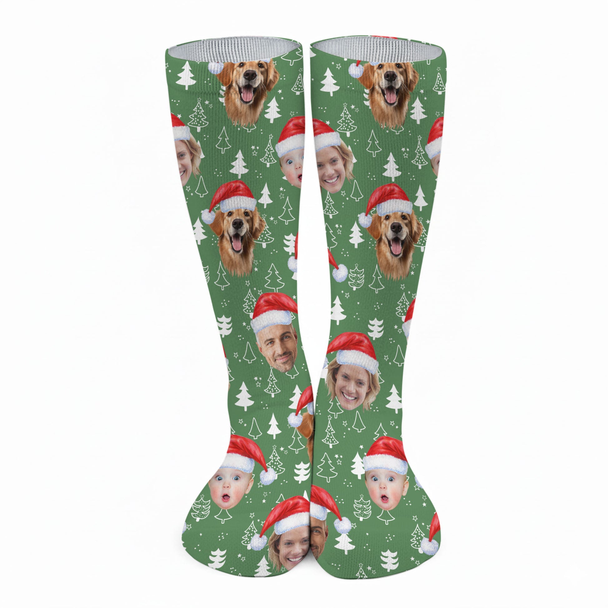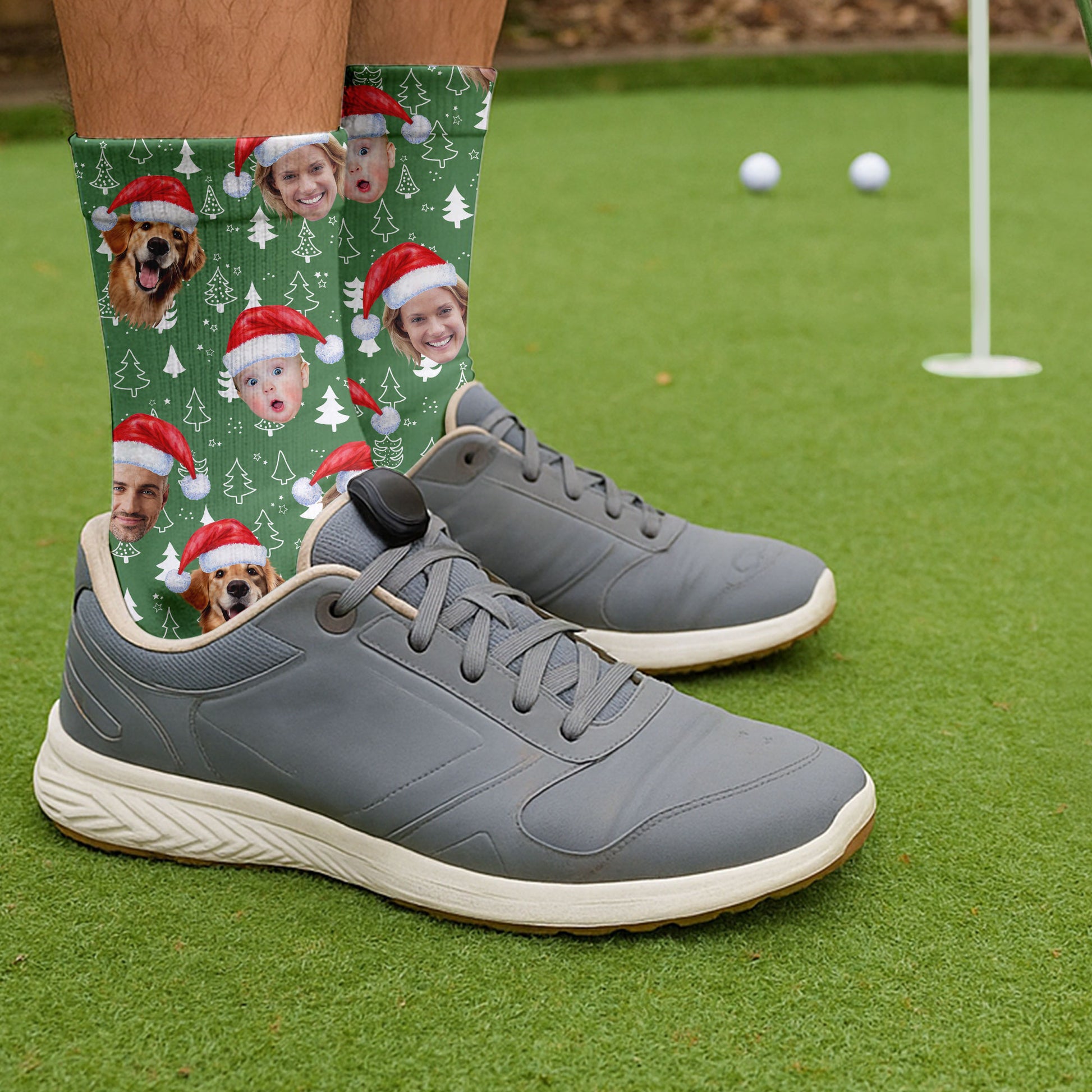 Custom Face Xmas Pine Tree Green Golf Socks, Christmas Golf Gift, Custom Golf Accessories