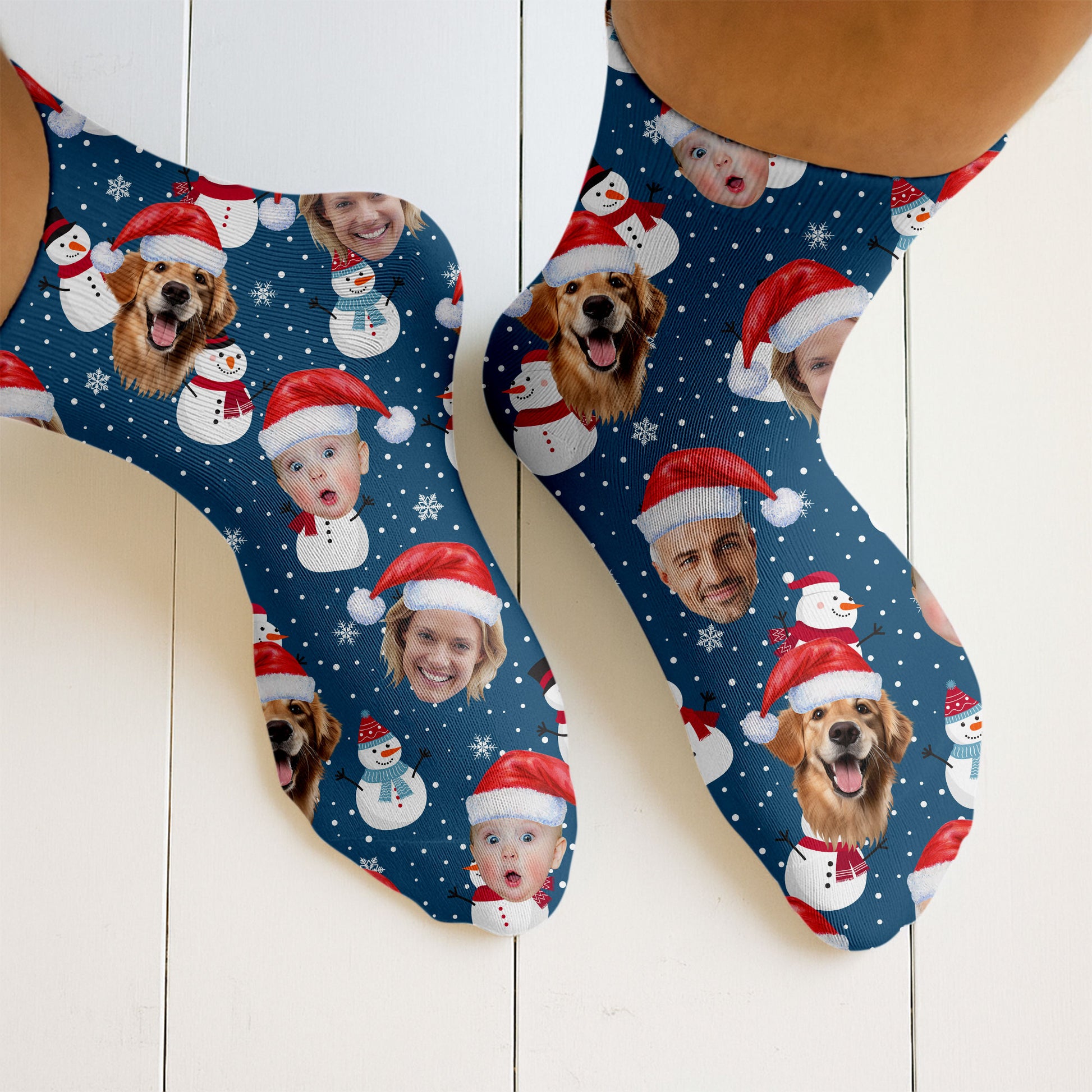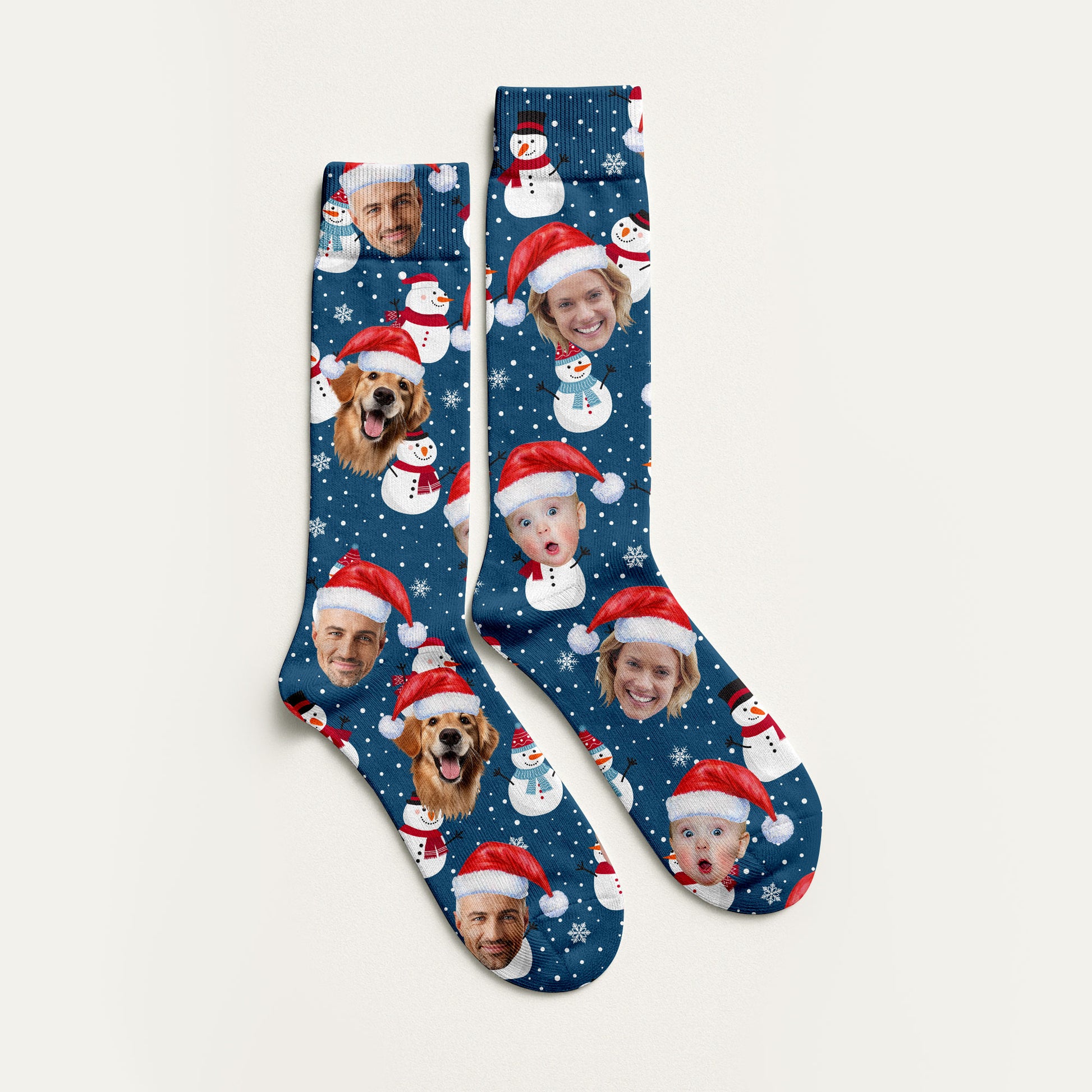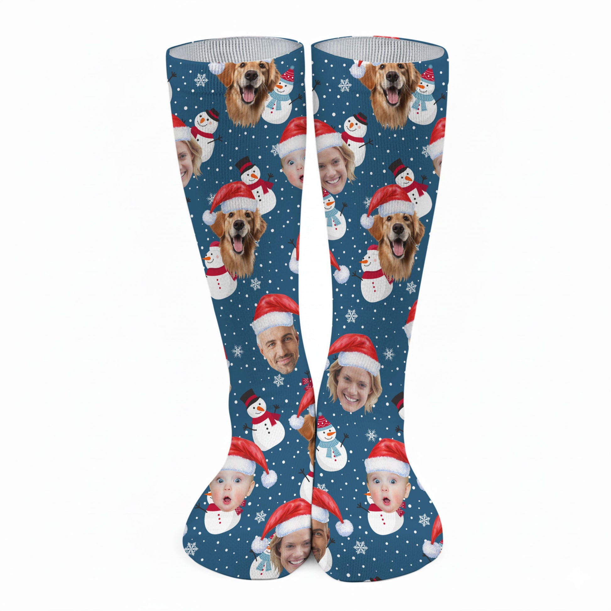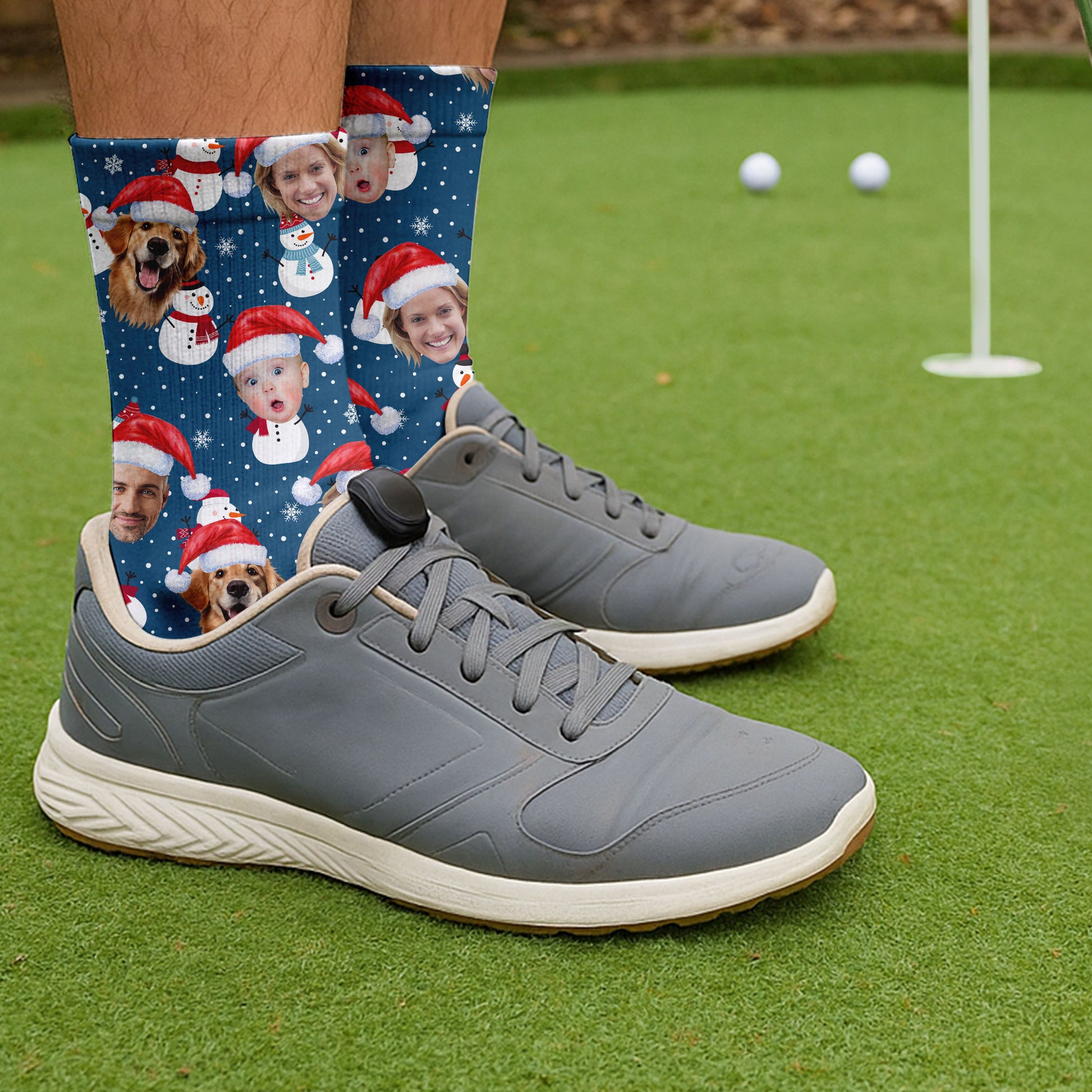 Custom Face Xmas Snowman Navy Golf Socks, Christmas Golf Gift, Custom Golf Accessories