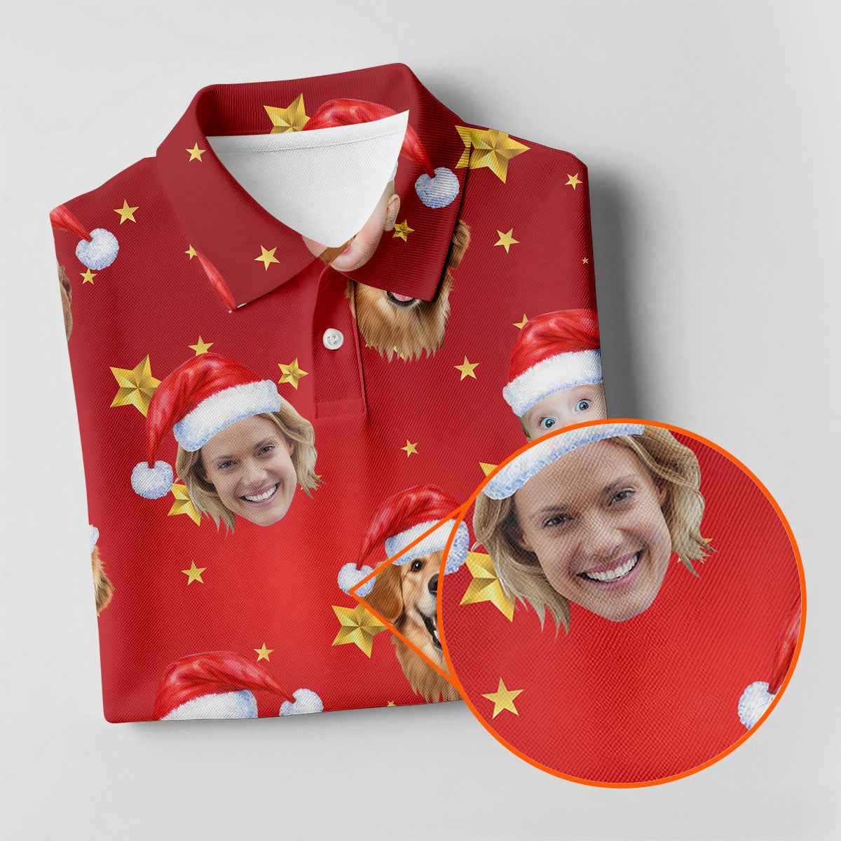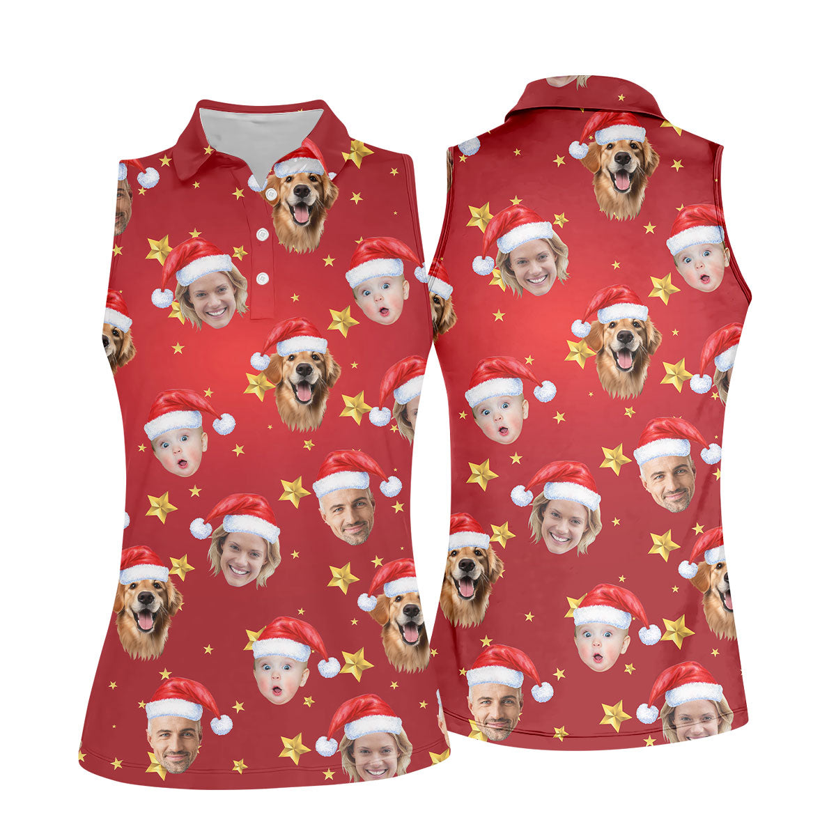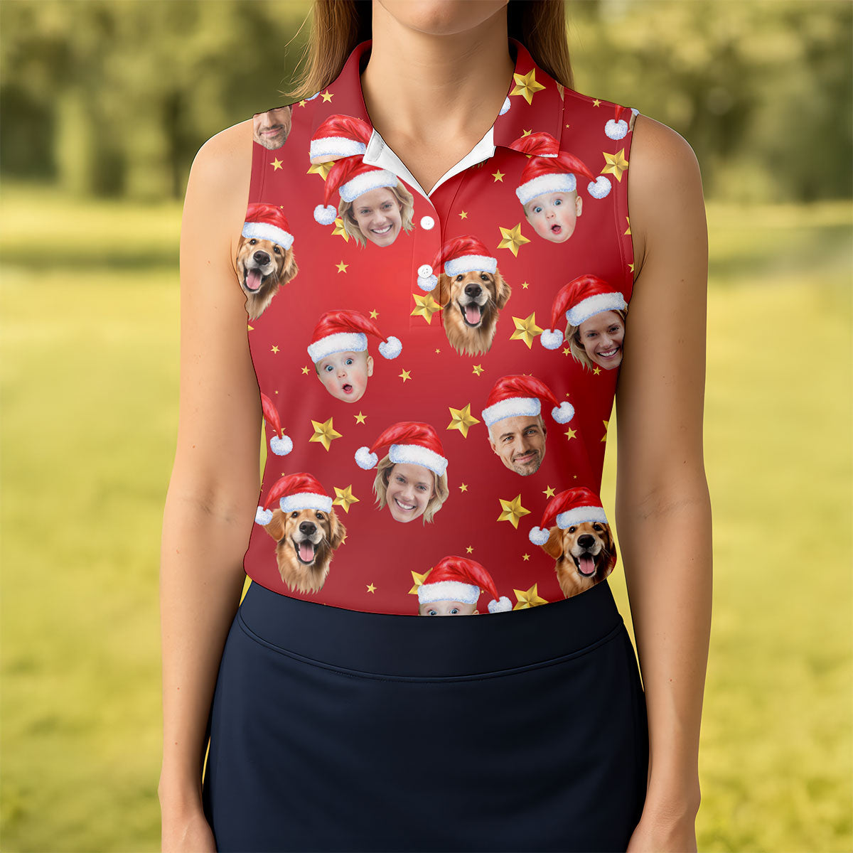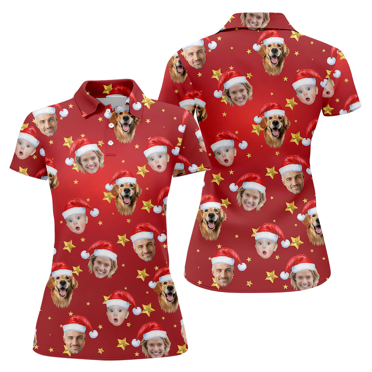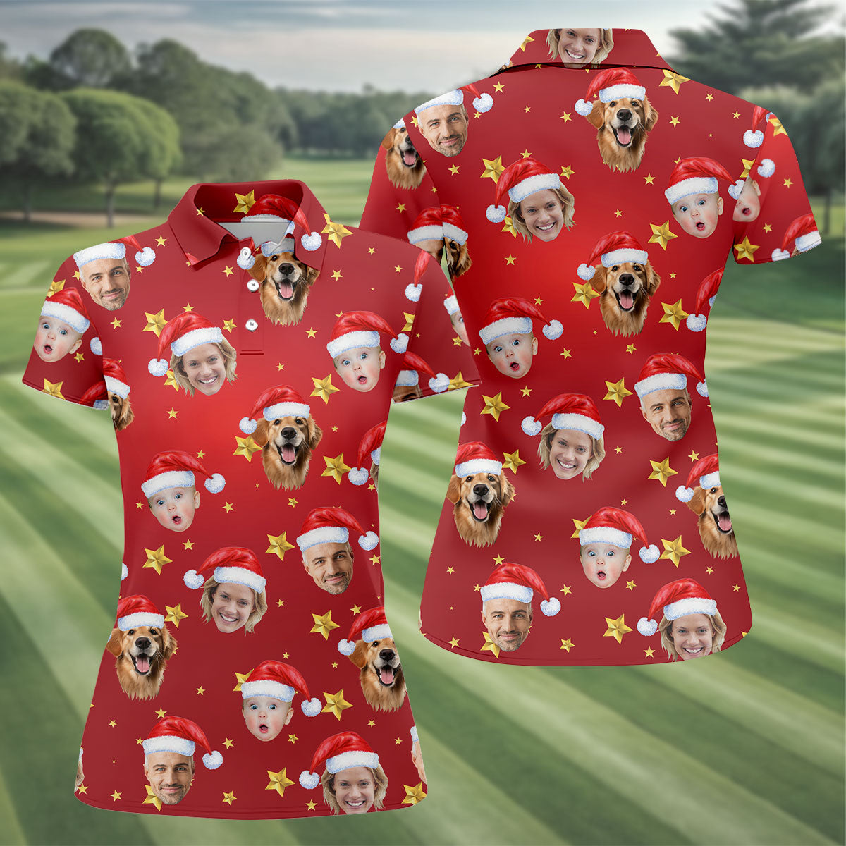 Custom Face Xmas Star Red Golf Shirt, Christmas Golf Shirt, Ladies Golf Tops, Golf Gifts For Women