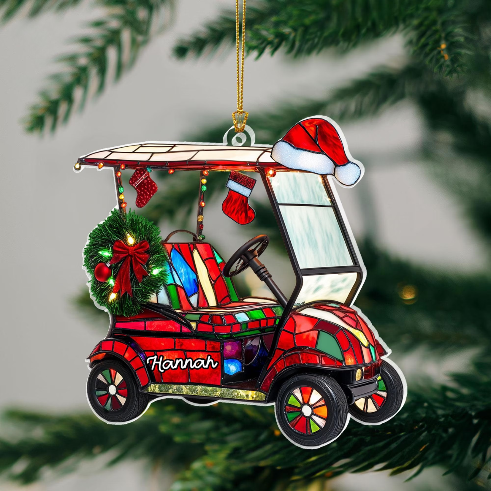 Custom Golf Cart Acrylic Ornament, Custom Name Golf Ornament, Christmas Golf Gift, Custom Golf Gift
