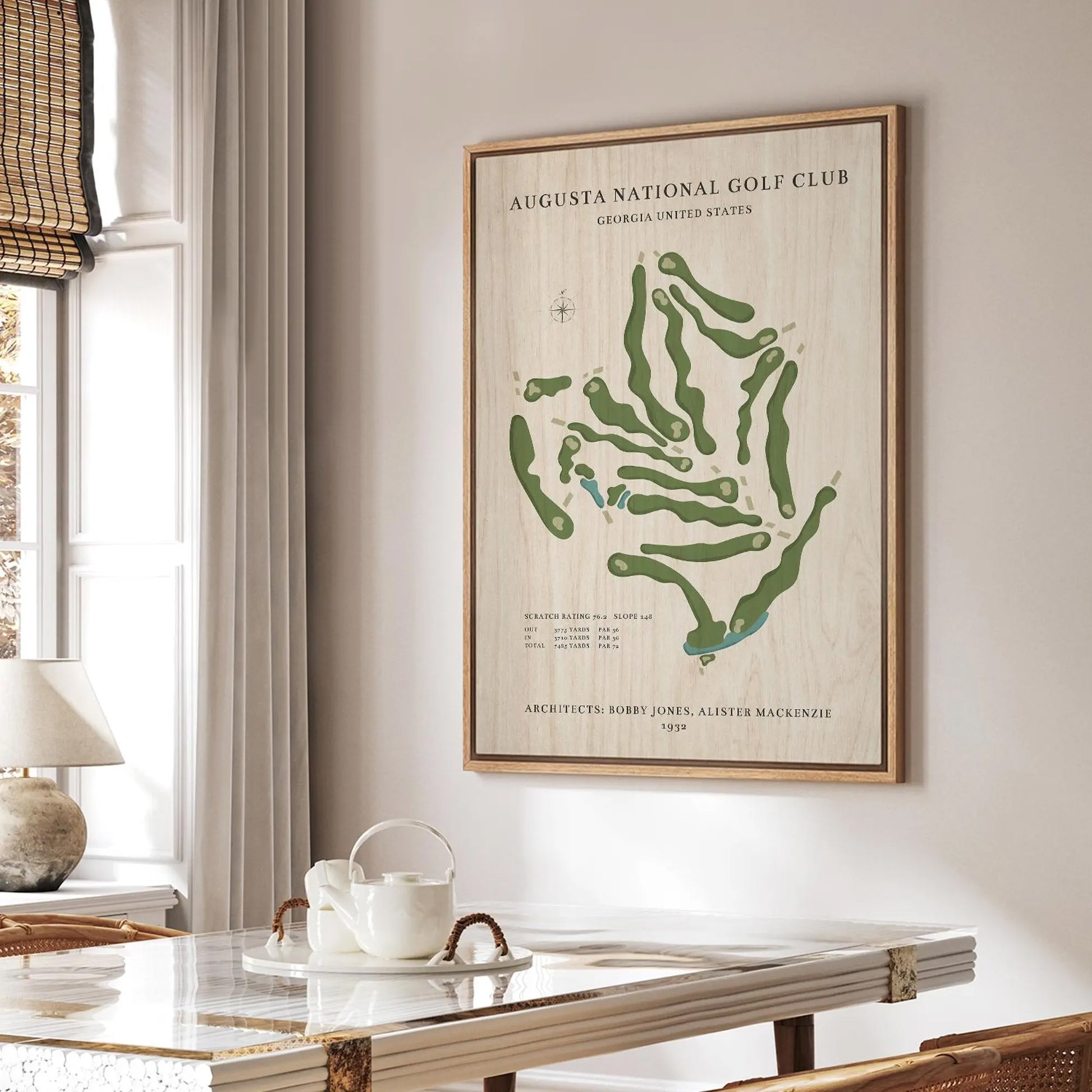 Get a daily dose of golf wanderlust with our Custom Golf Course Map Canvas. A must-have for golf buffs and a nod to all those daydreams of teeing off at one of the world's premier gofl destinations. Add a pinch of golf magic to your space and let the clubhouse inspire your next round. Perfect for reminiscing or planning that bucket-list trip to Augusta!