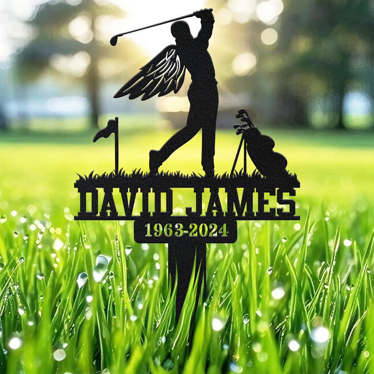 Custom Golf Memorial Metal Grave Marker, Outdoor Garden Decor, Golfer Memorial Gift