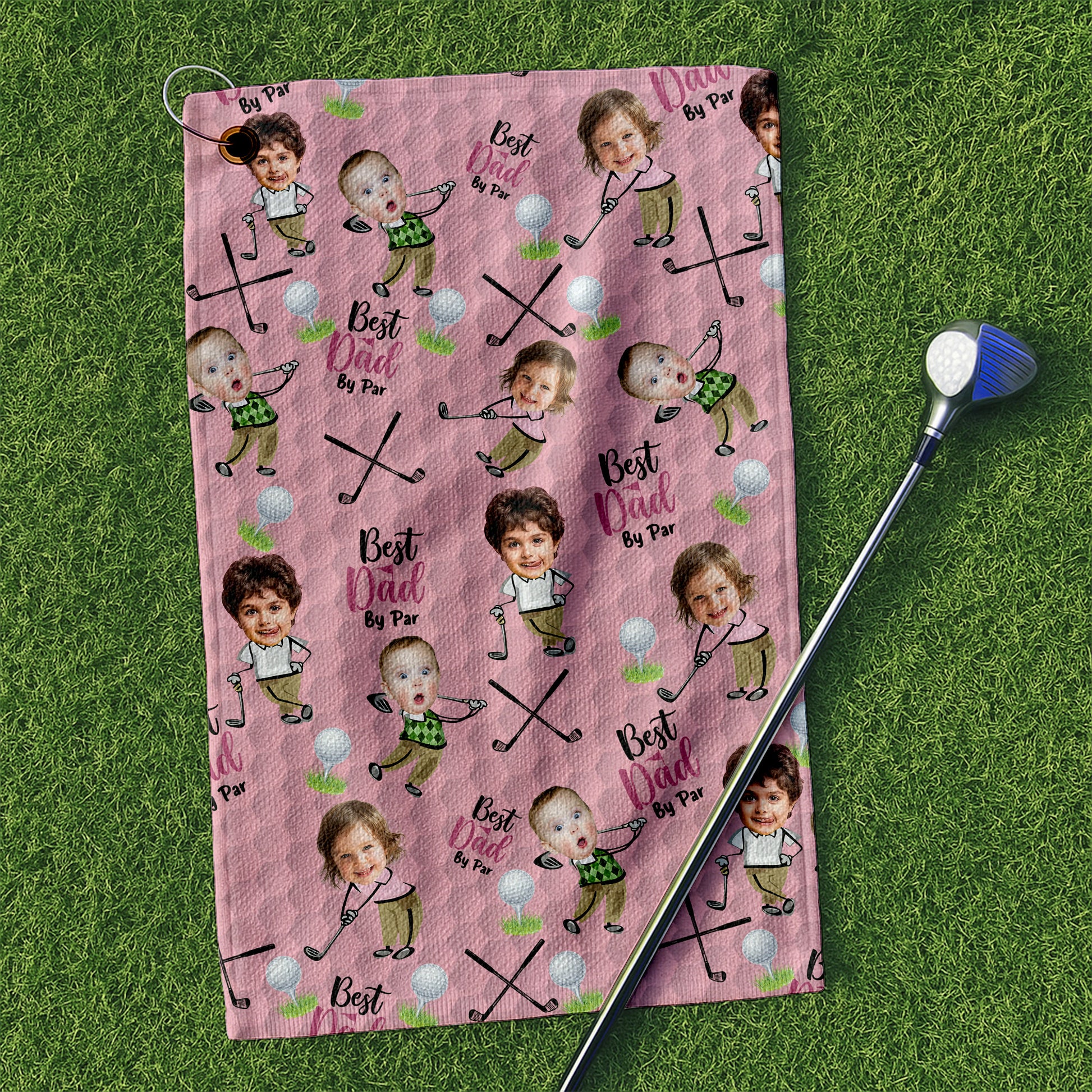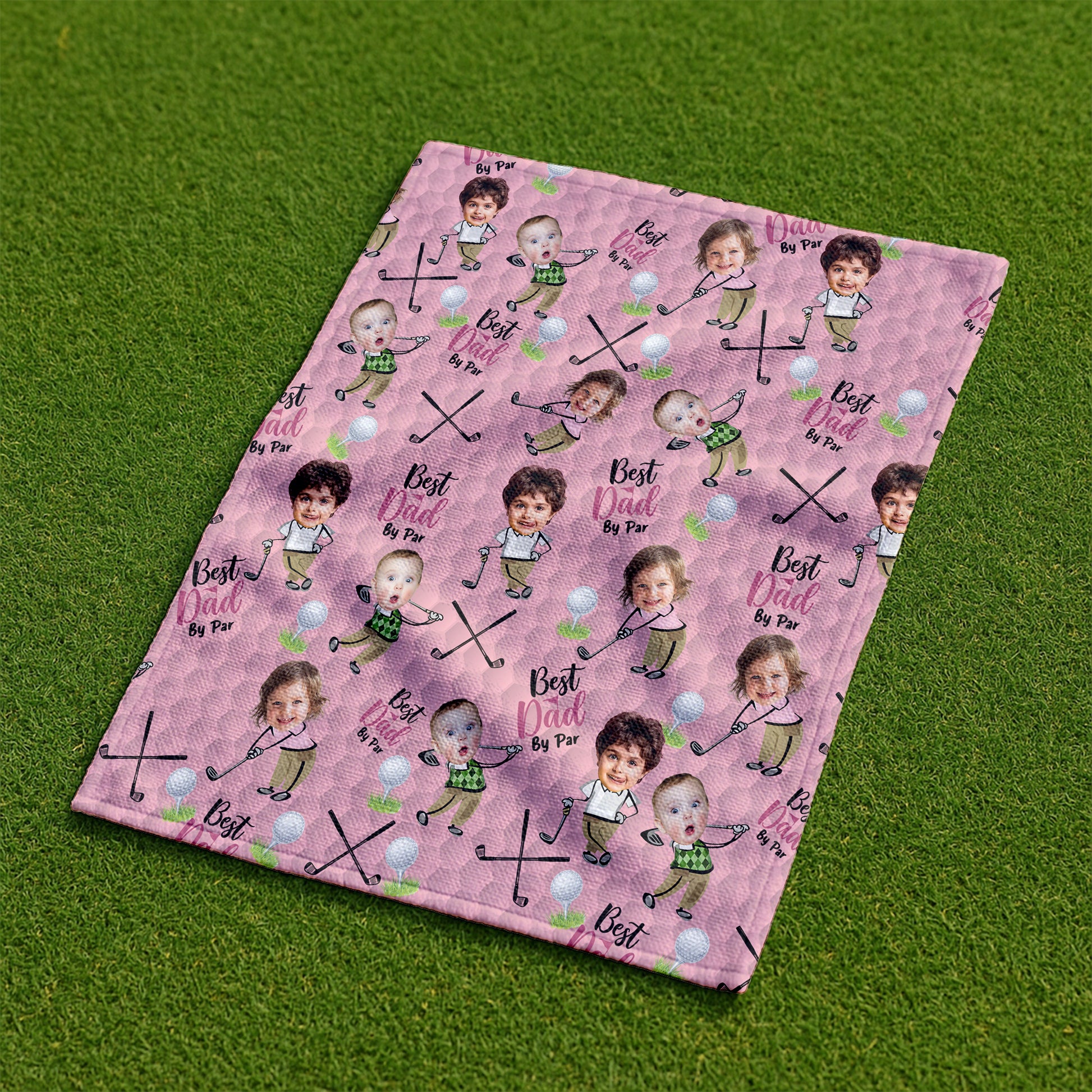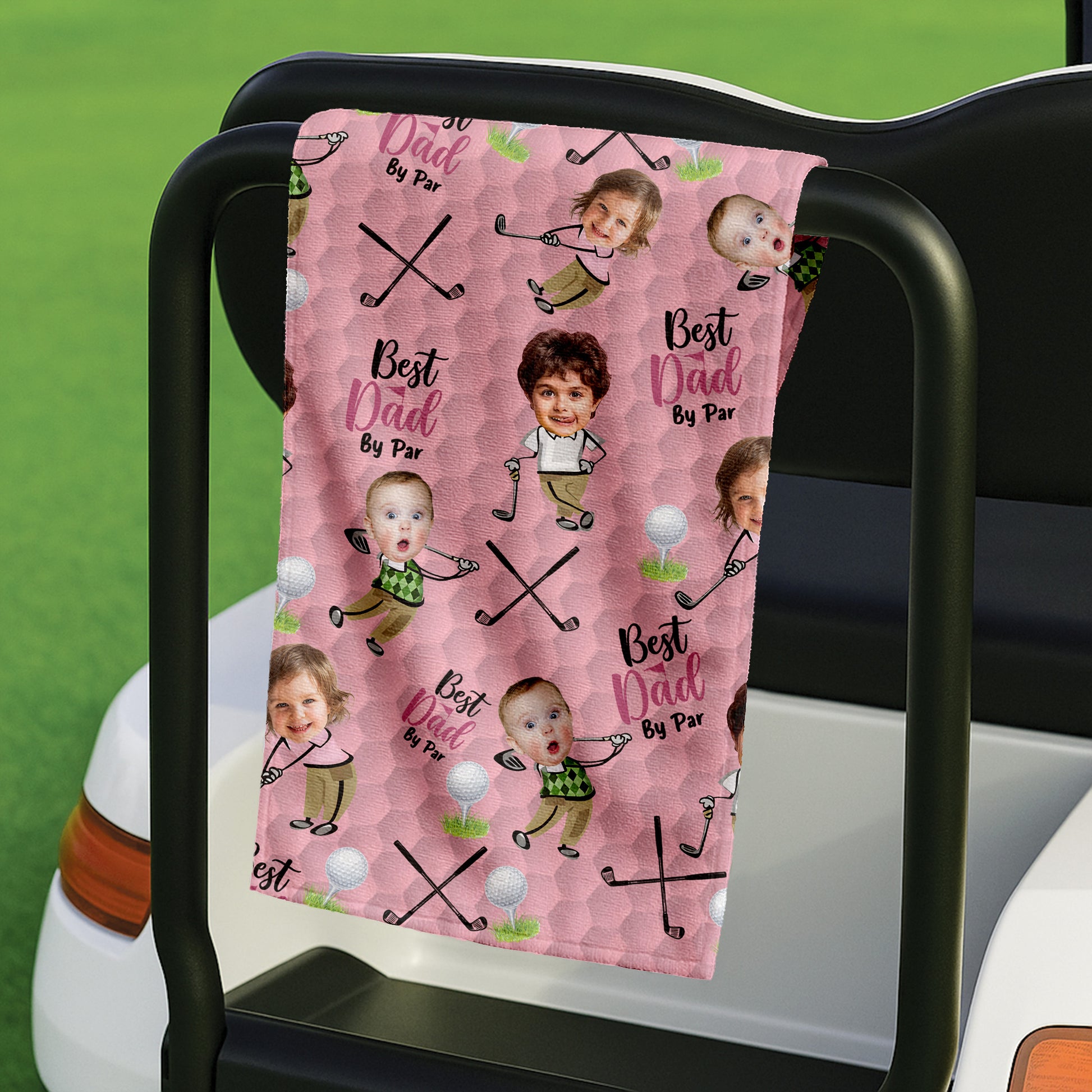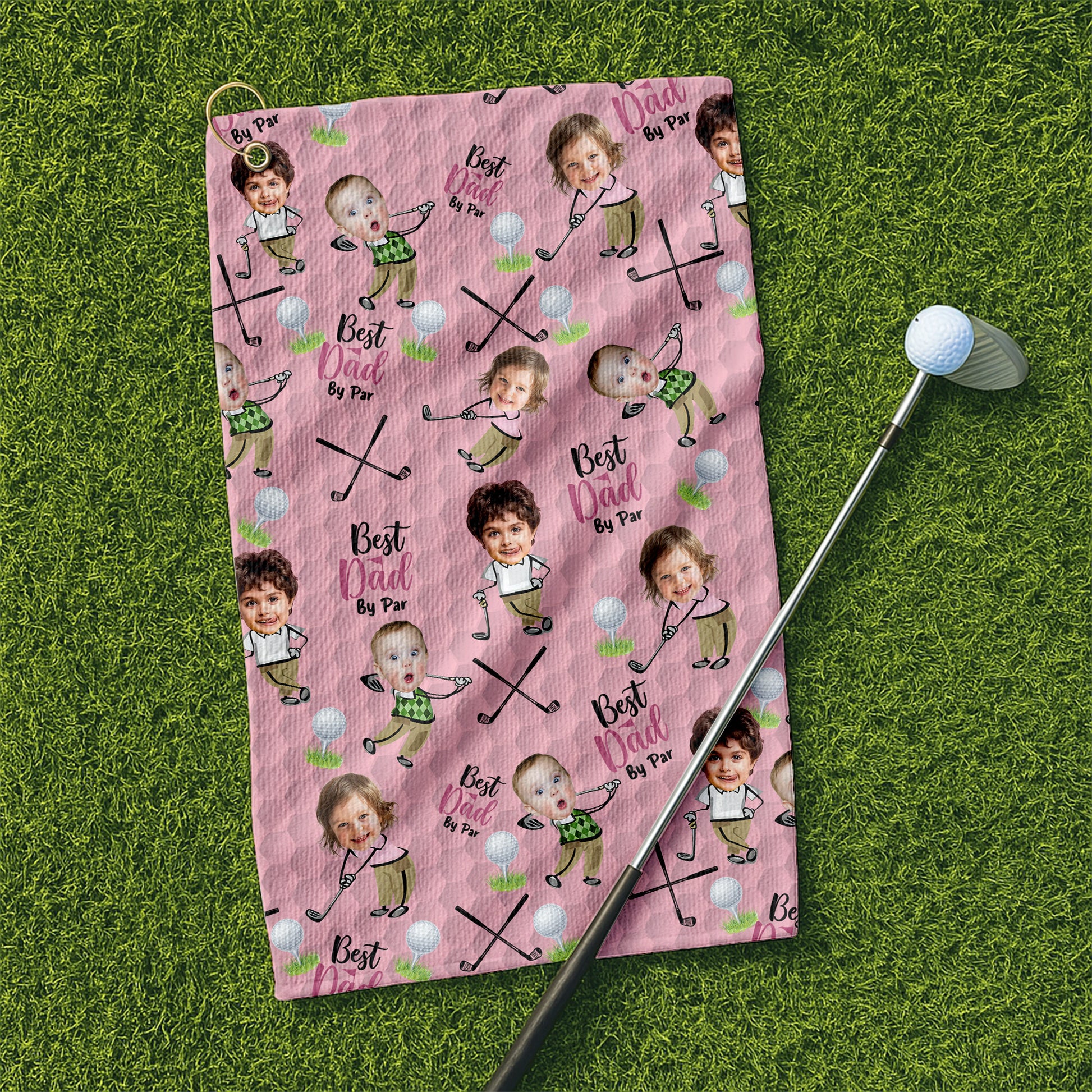 Custom Golf Towel With Kids Photo Best Dad By Par, Custom Photo Pink Towel, Christmas Golf Gift