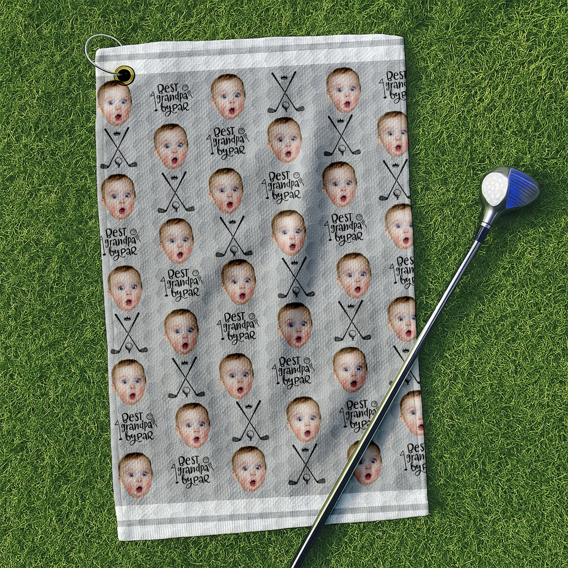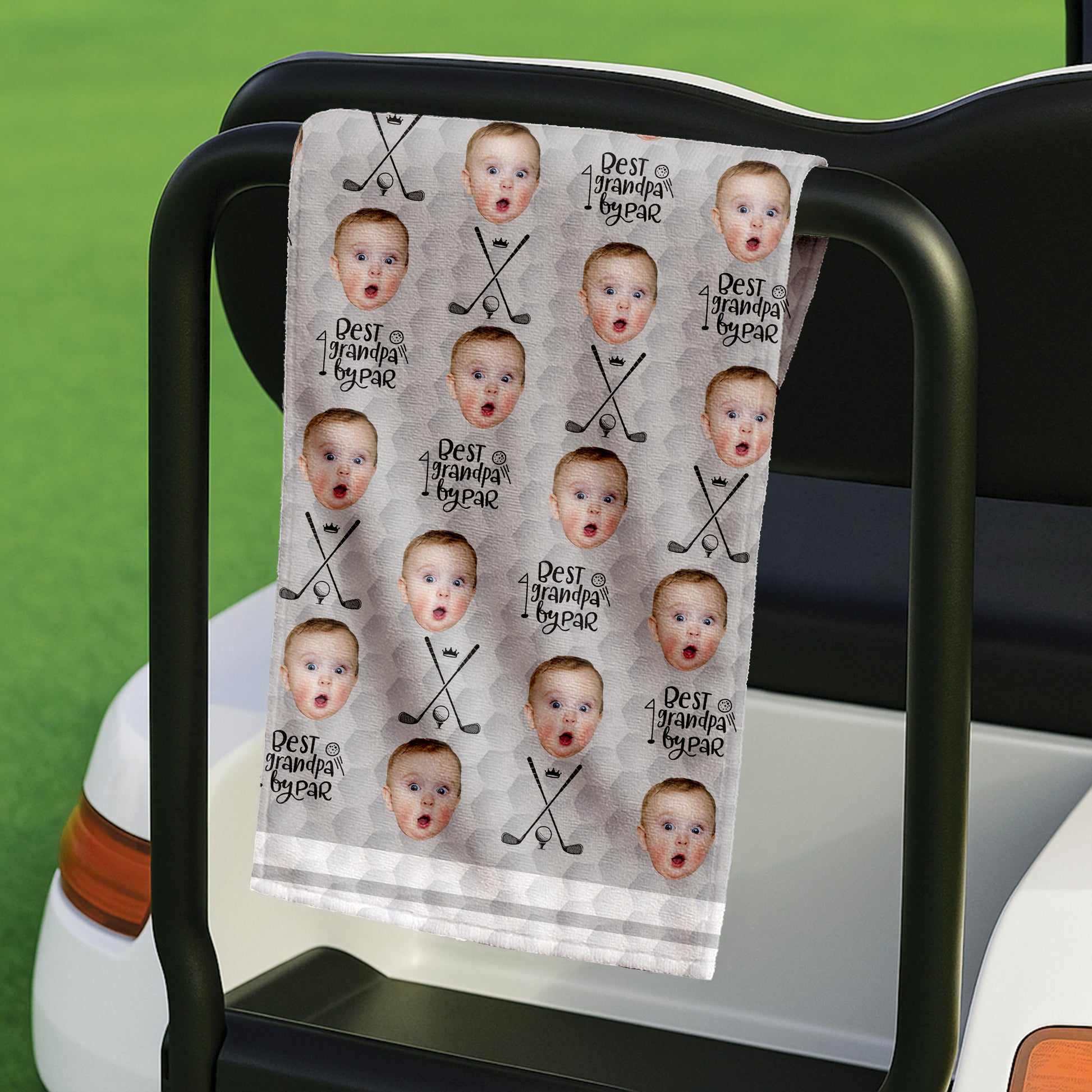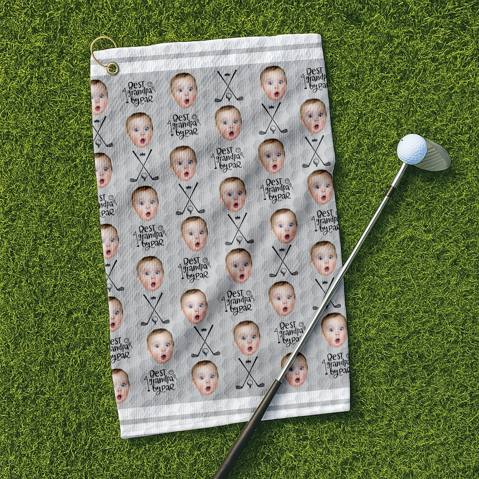 Custom Golf Towel With Kids Photo, Best Dad By Par Grey Golf Towel, Cool Golf Towels, Dad Golf Gift