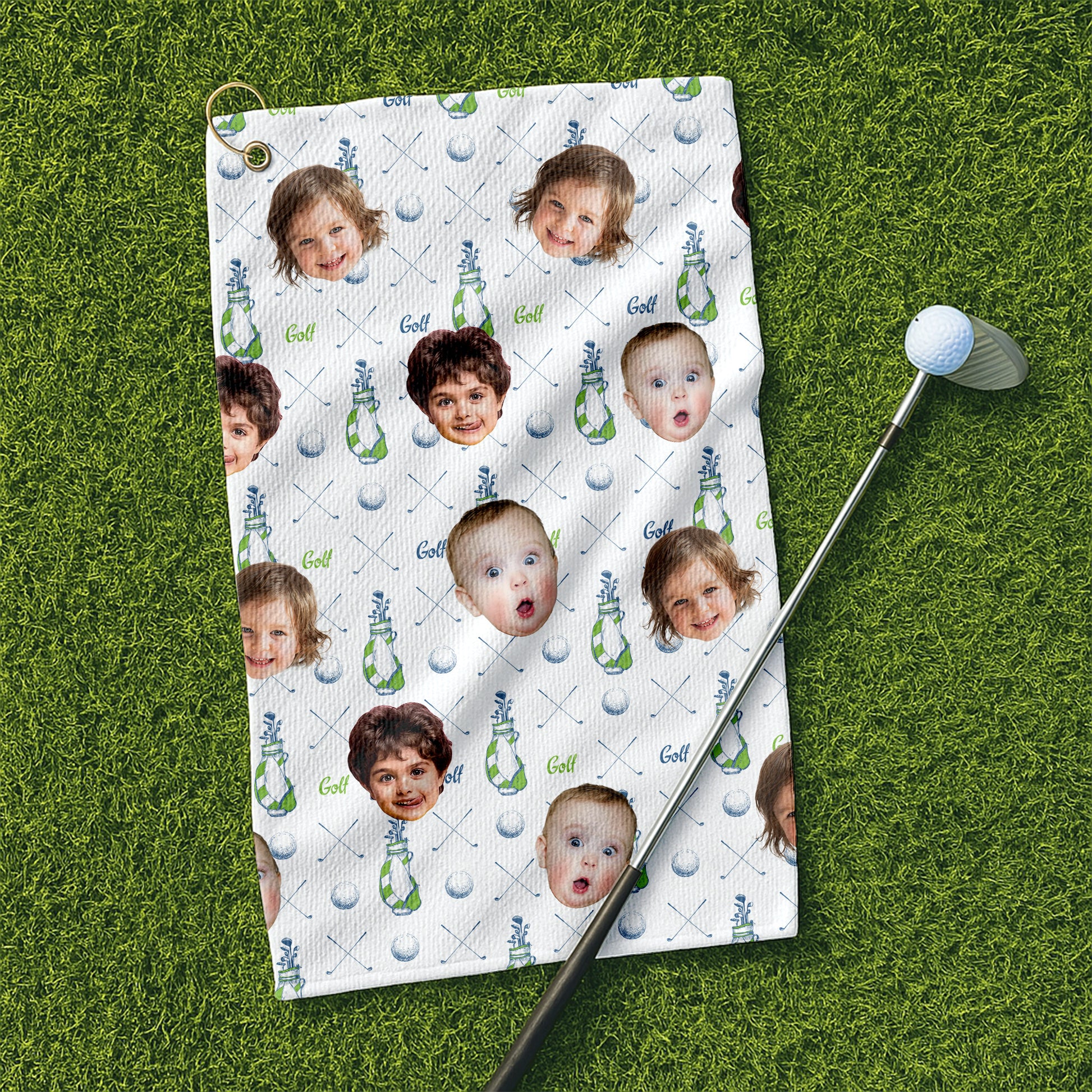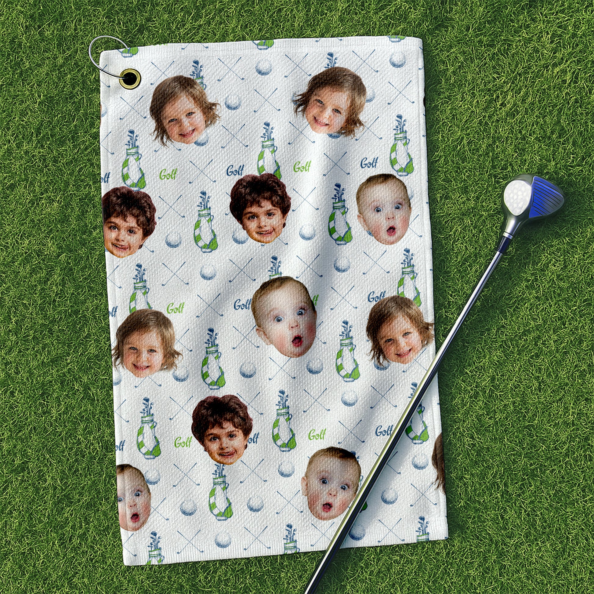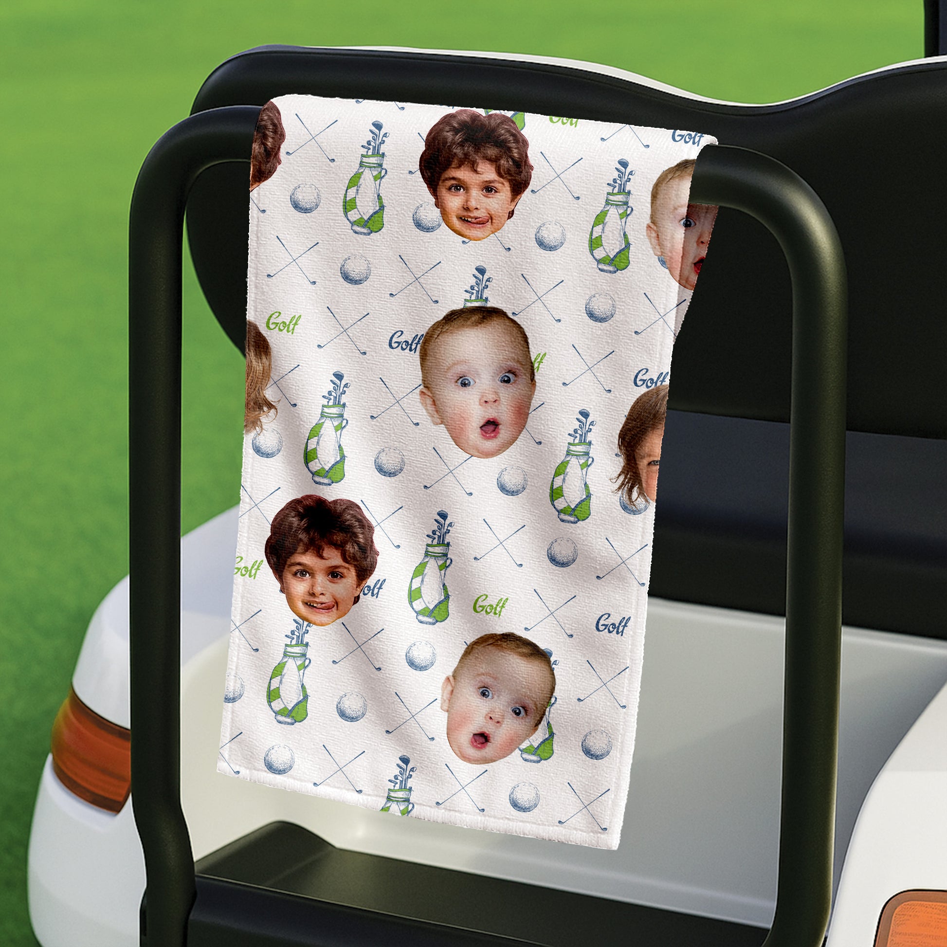 Custom Golf Towel With Kids Photo, Cool Golf Towel, Gifts For The Golfing Dad, Christmas Golf Gift
