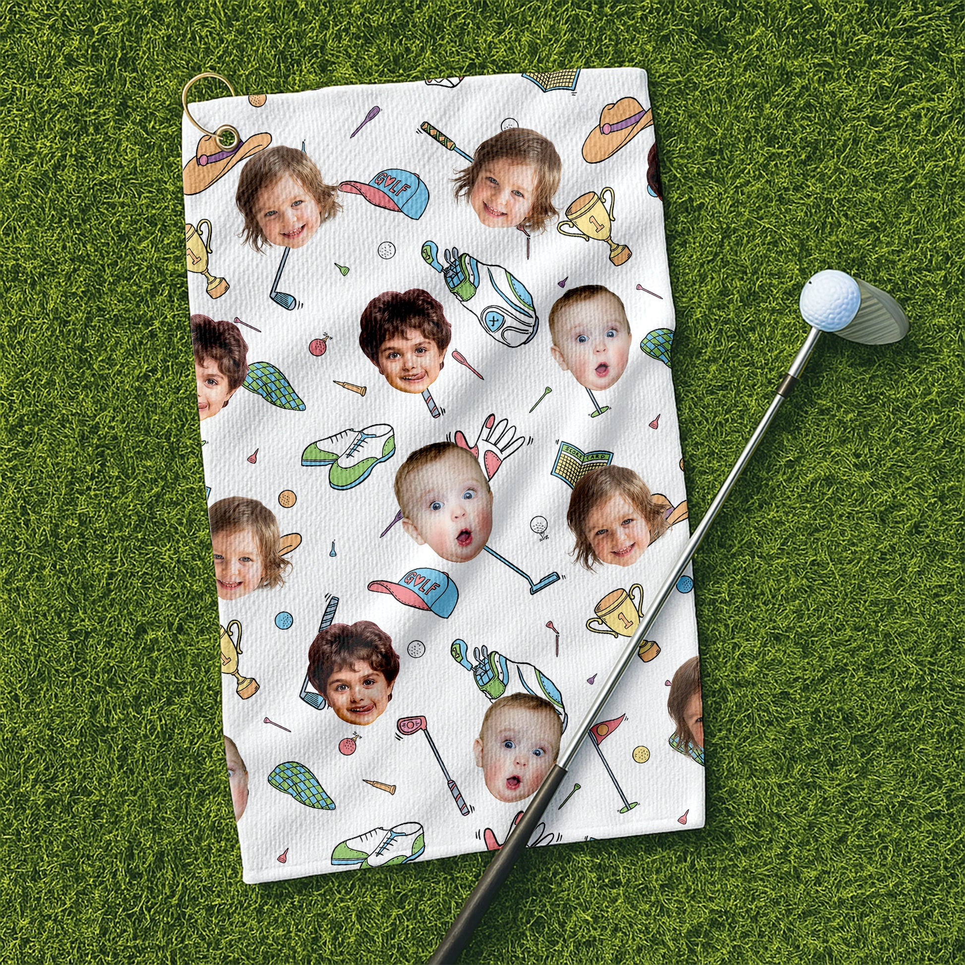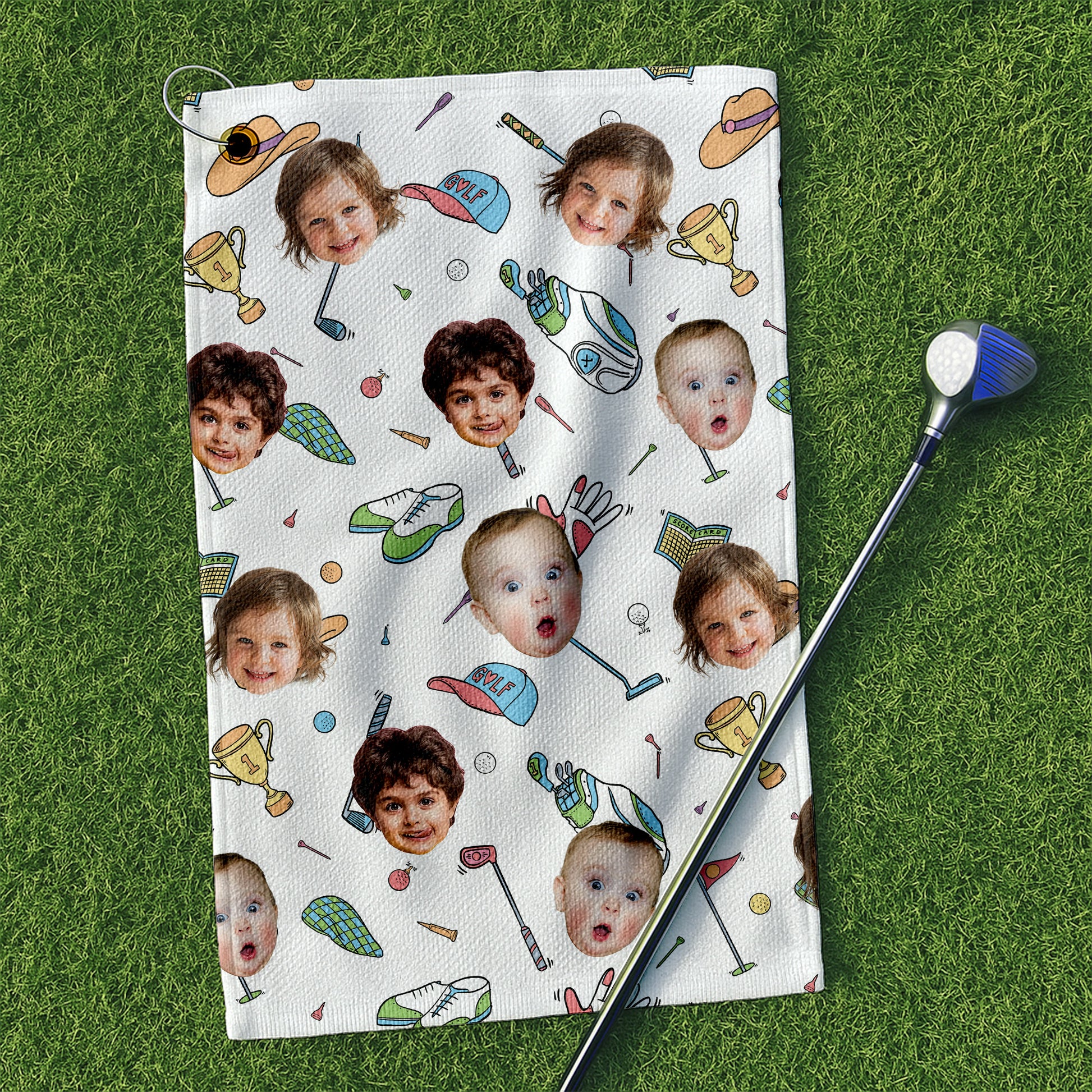 Custom Golf Towel With Kids Photo, Personalised Golf Towel, Cool Golf Towels, Christmas Golf Gift