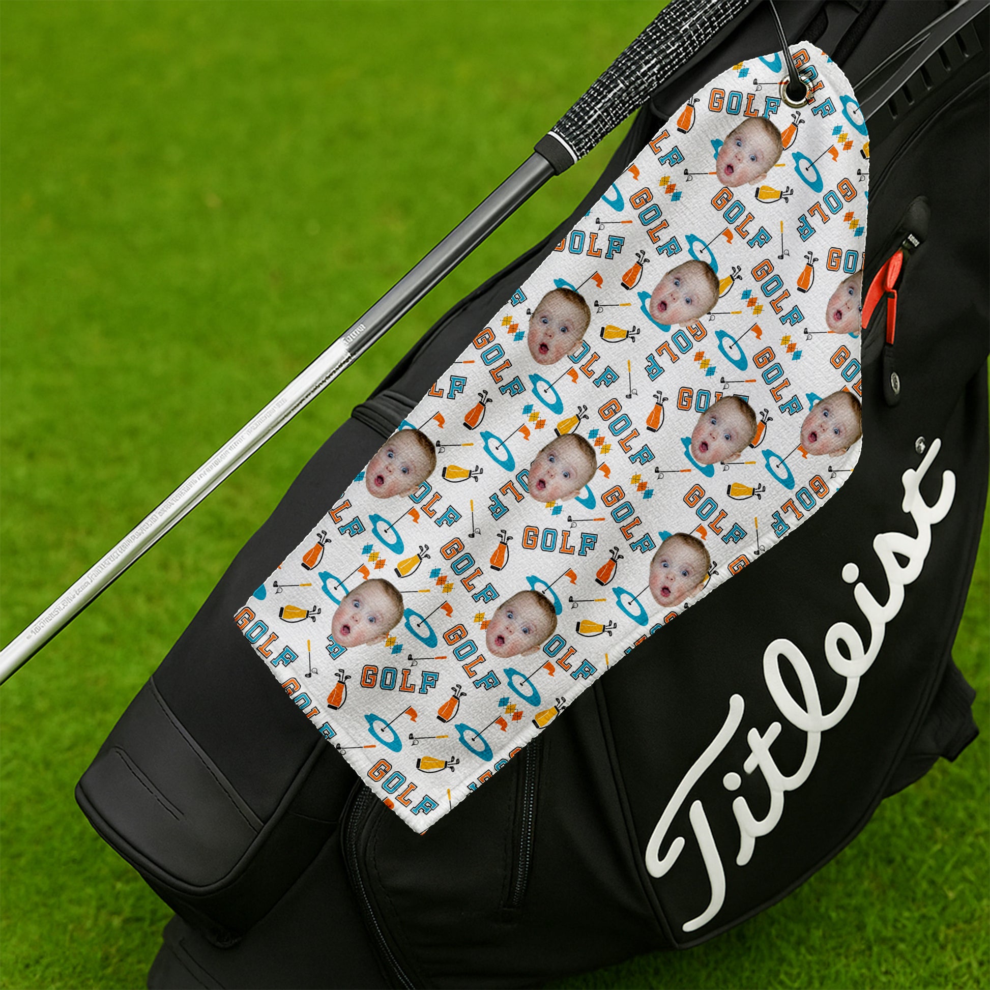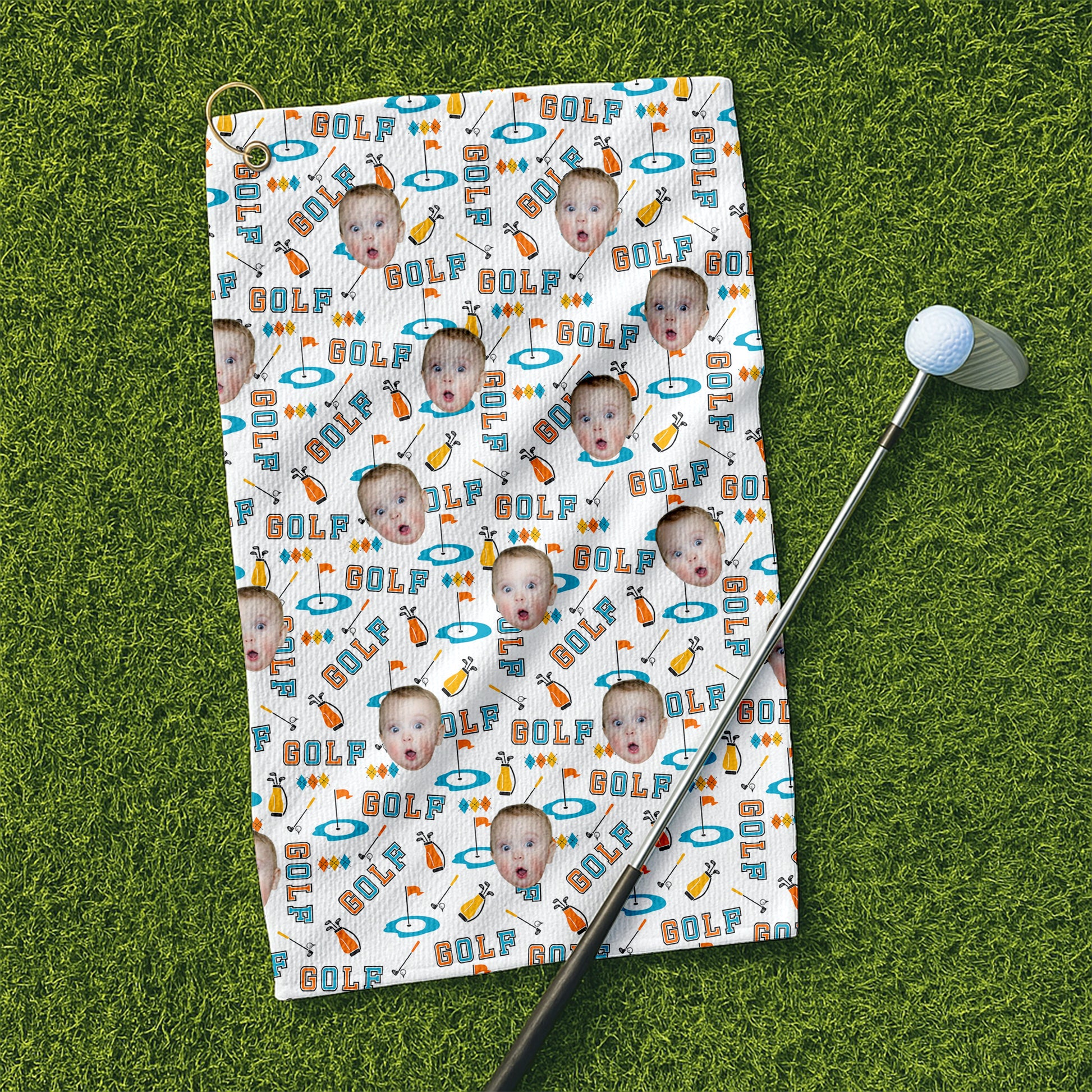 Custom Kid Face Microfiber Waffle Small Funny Golf Towel, Golf Rag, Dad Golf Gifts