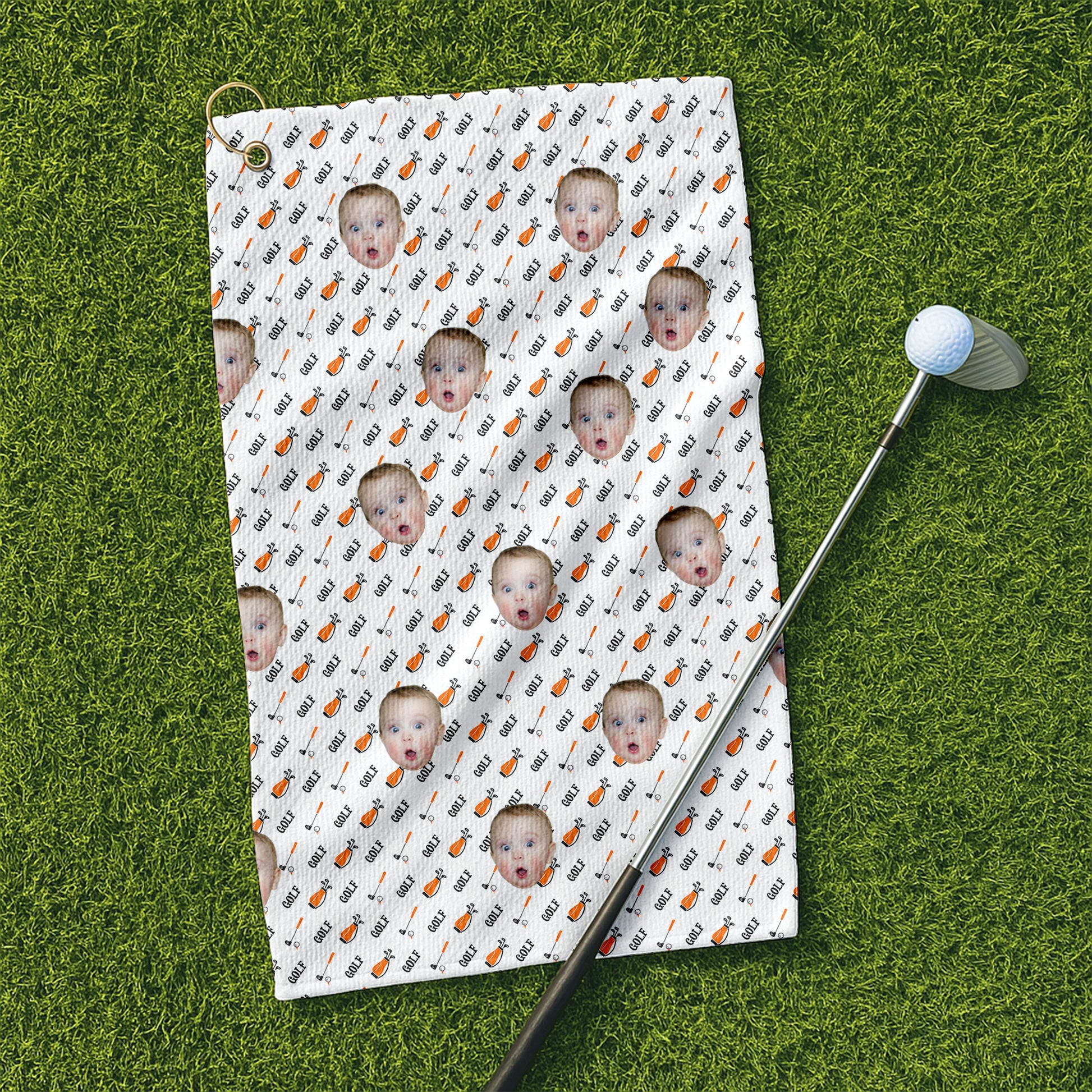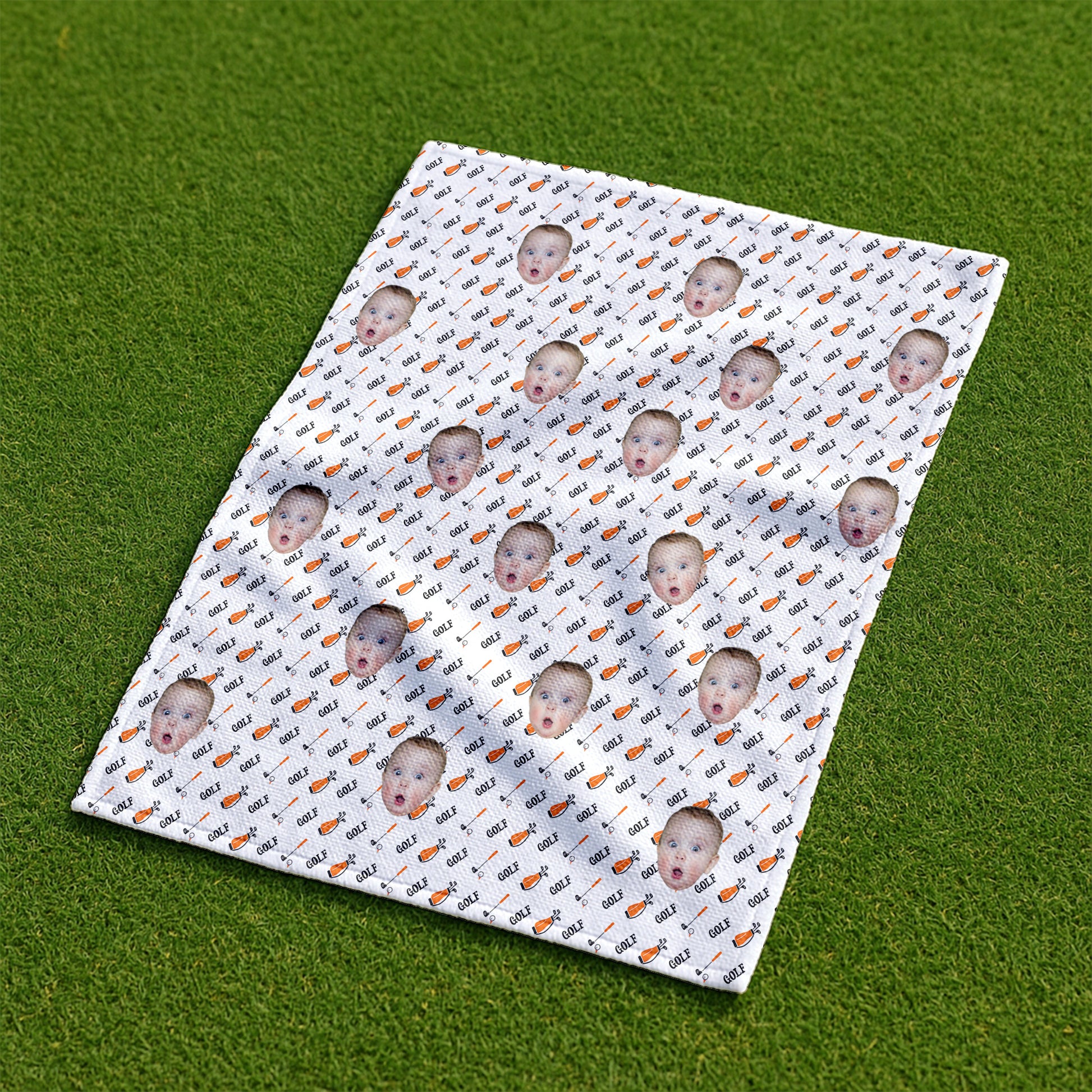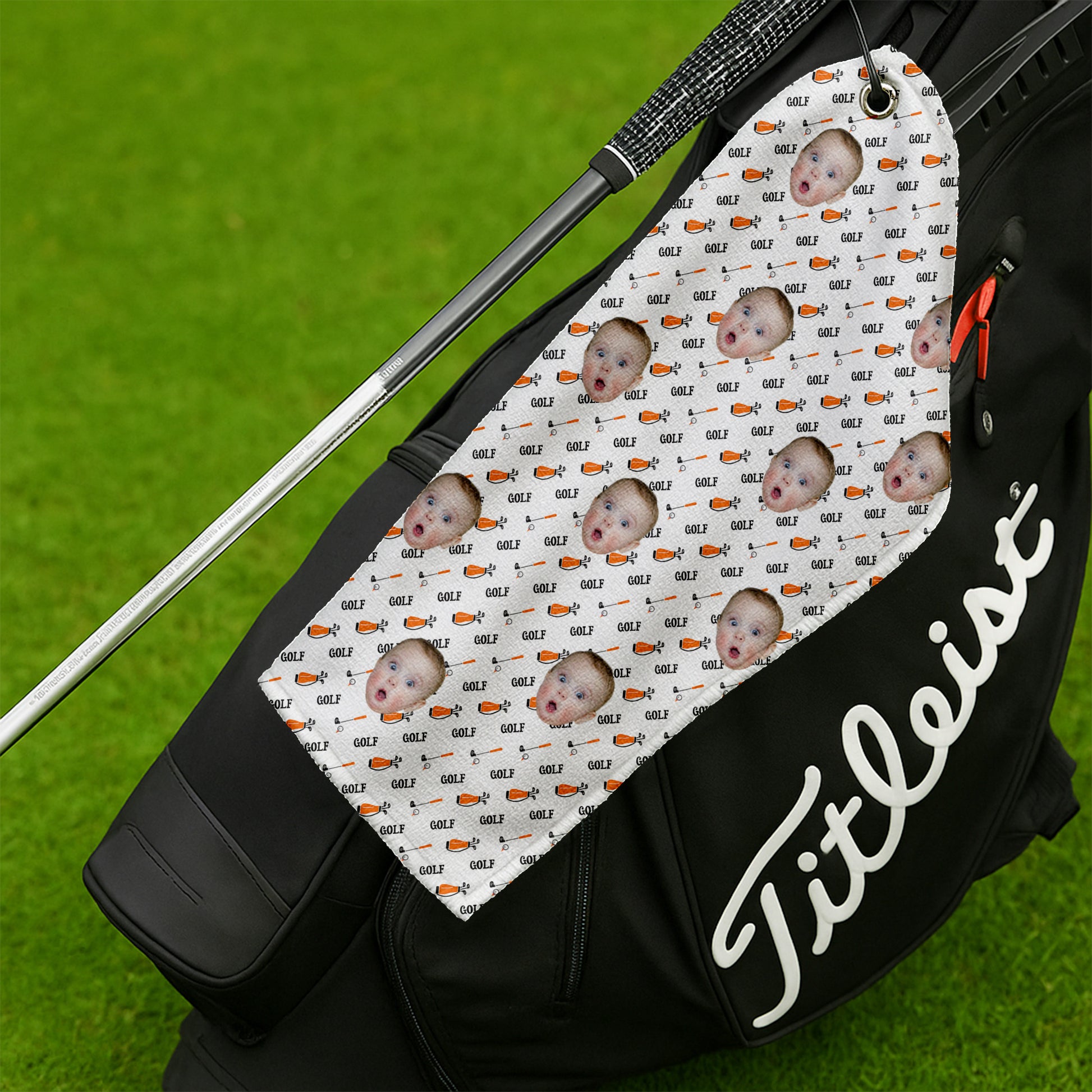 Custom Kid Face Microfiber Waffle White Small Funny Golf Towel, Golf Rag, Golf Gift For Dad