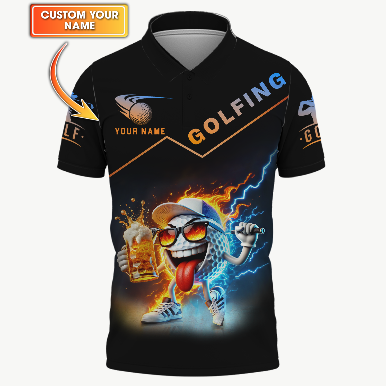 Golf And Beer, Funny Golf Ball Shirt, Custom Men's Golf Polo Shirt, Beer Golf Shirt, Gift For Golfers