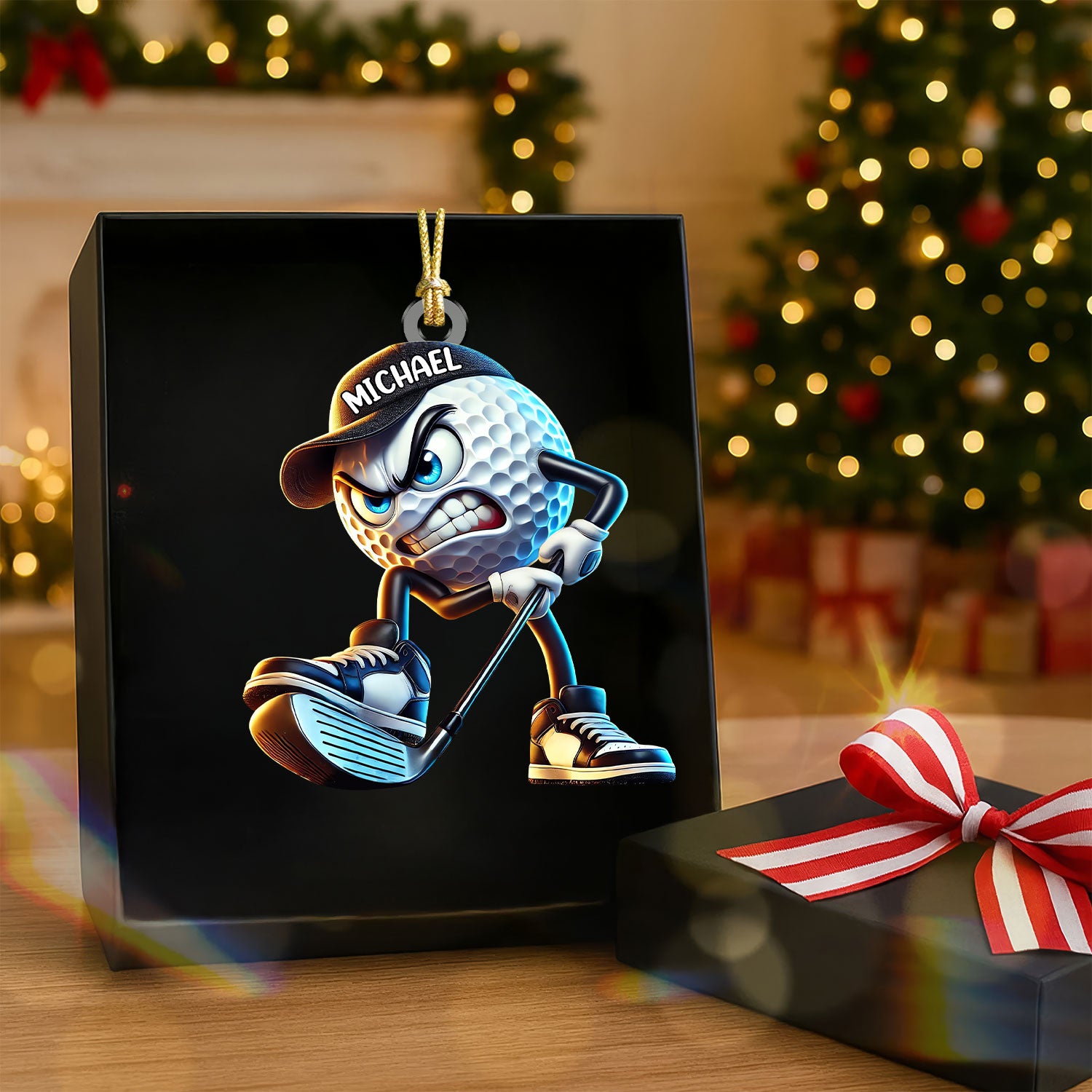 Custom Name Angry Golf Ball Ornament, Acrylic Ornament, Golf Christmas Ornaments, Christmas Golf Gift