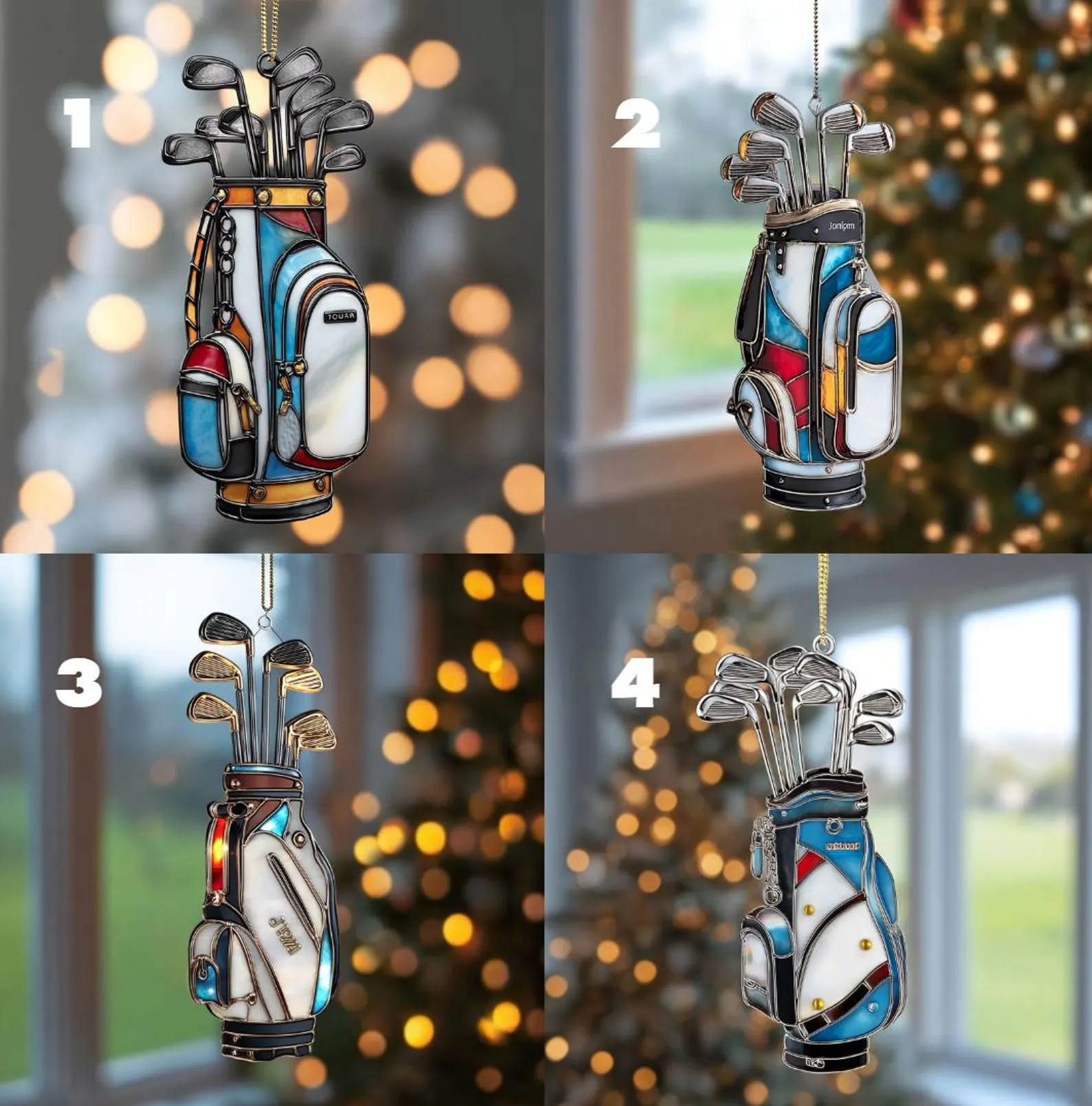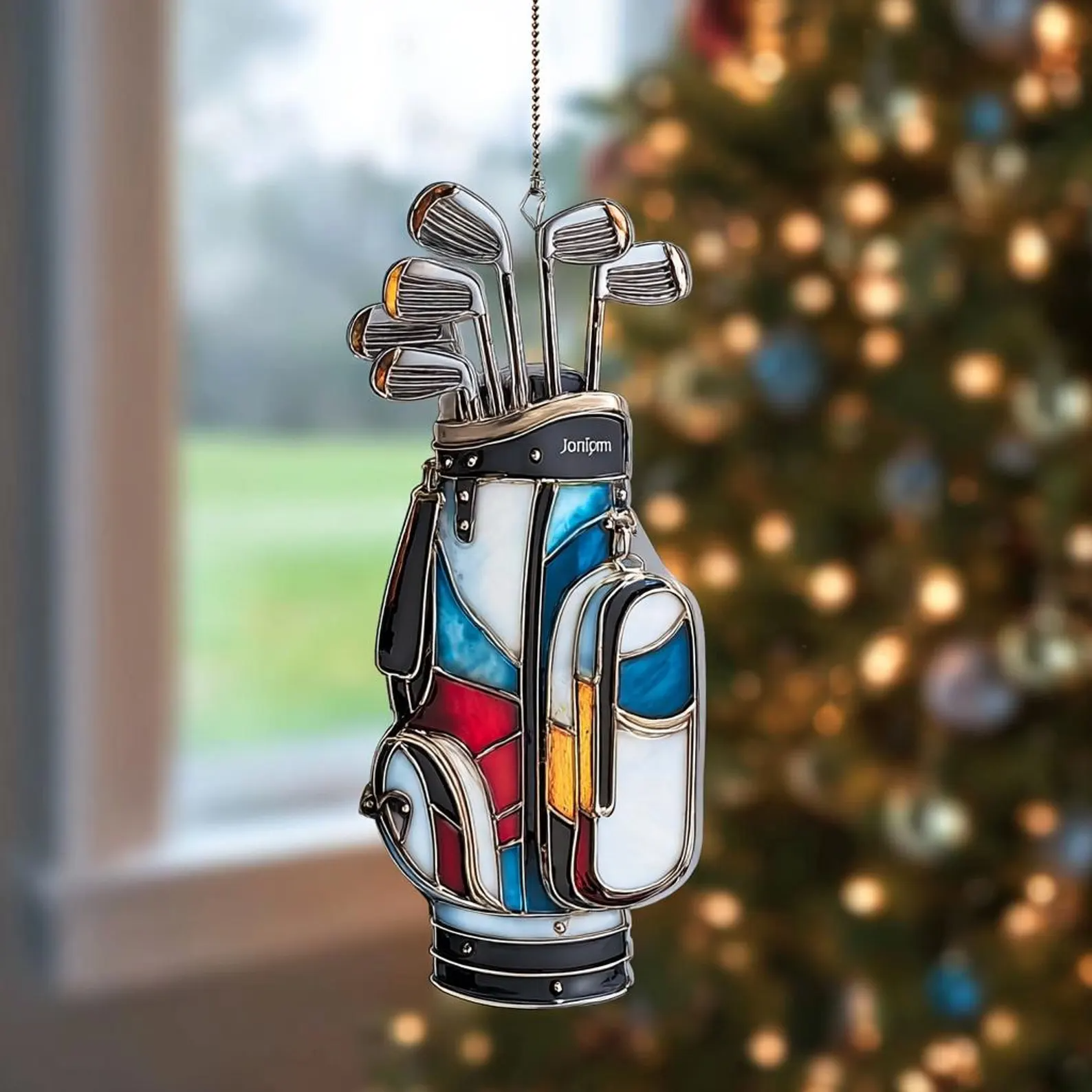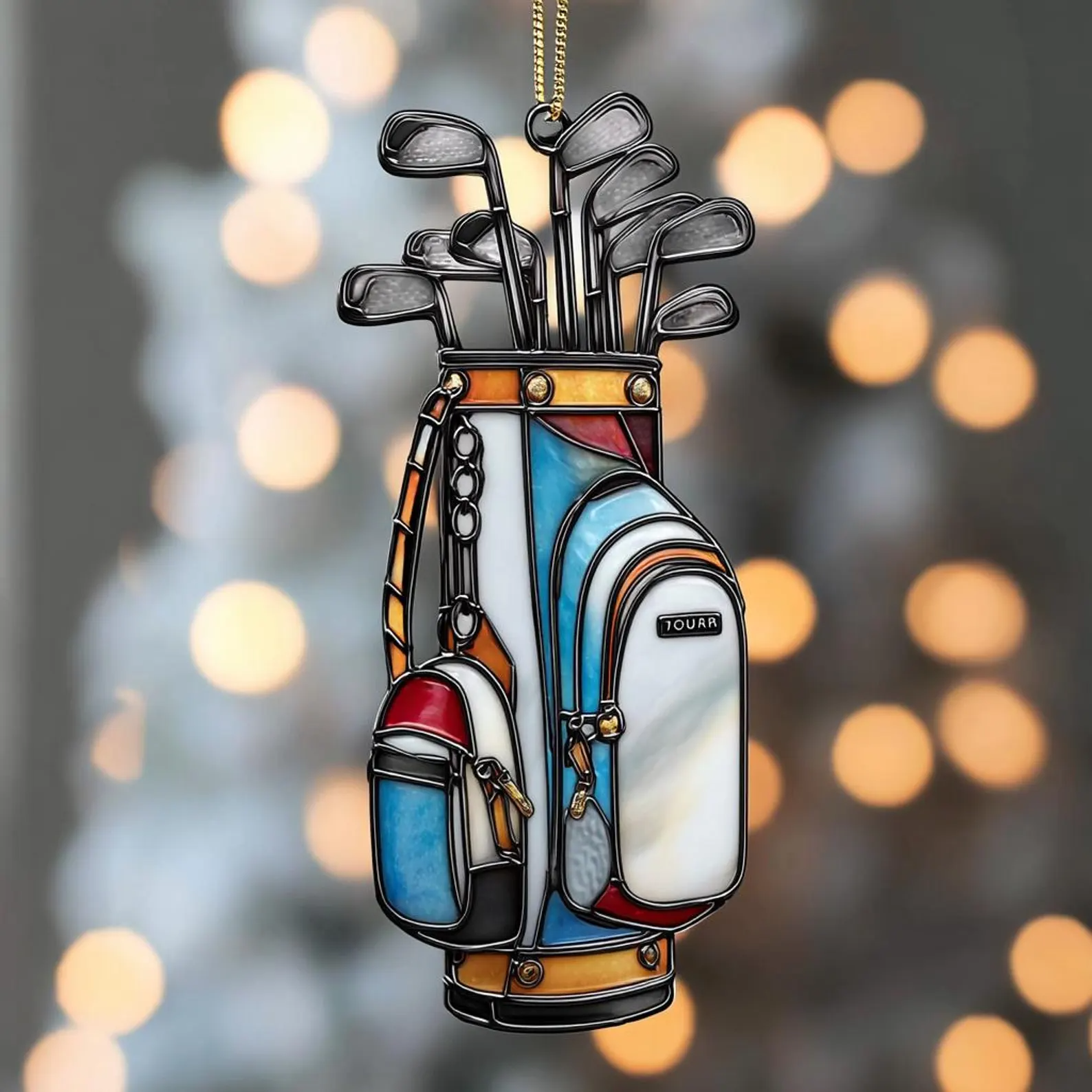 Custom Name Colorful Golf Bag Acrylic Ornament, Christmas Acrylic Ornament, Christmas Golf Gift