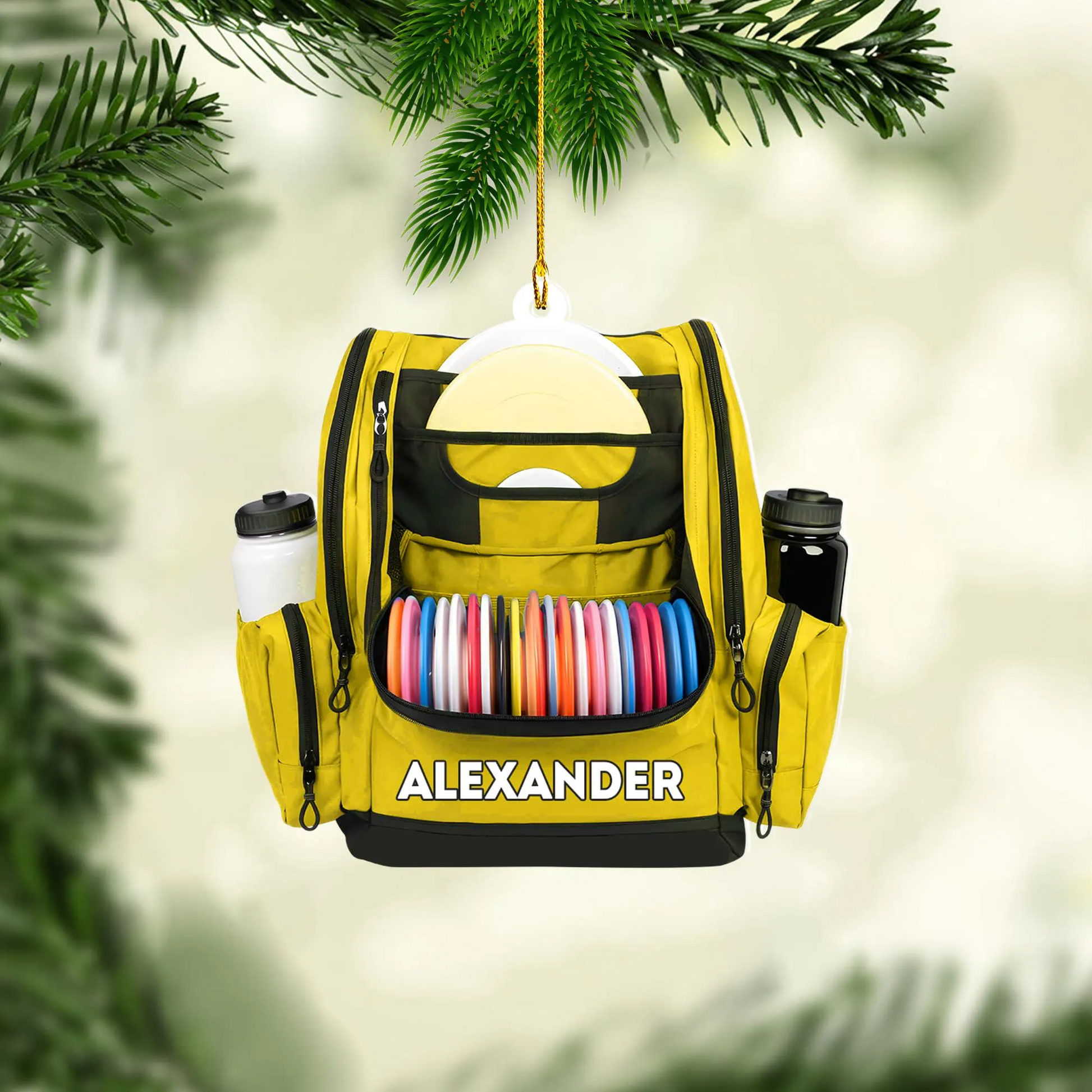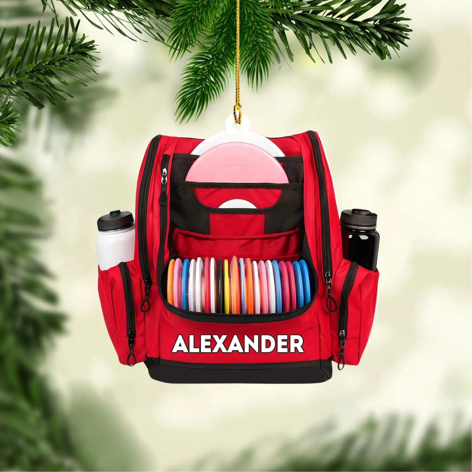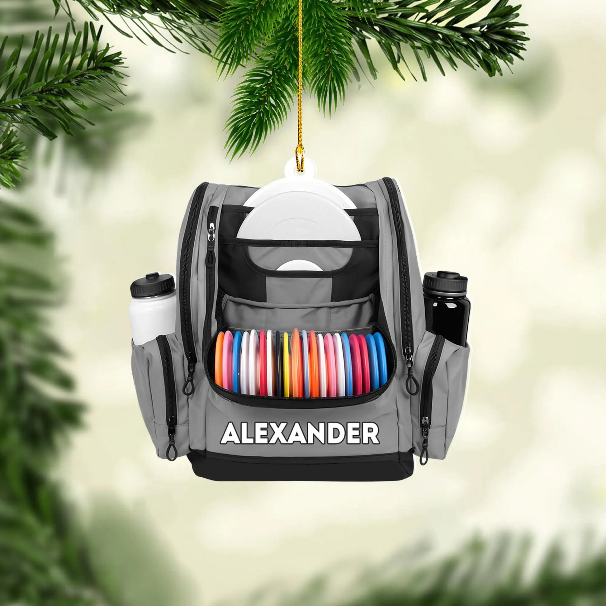 Custom Name Disc Golf Backpack Christmas Acrylic Ornament, Disc Golf Gift, Christmas Golf Gift