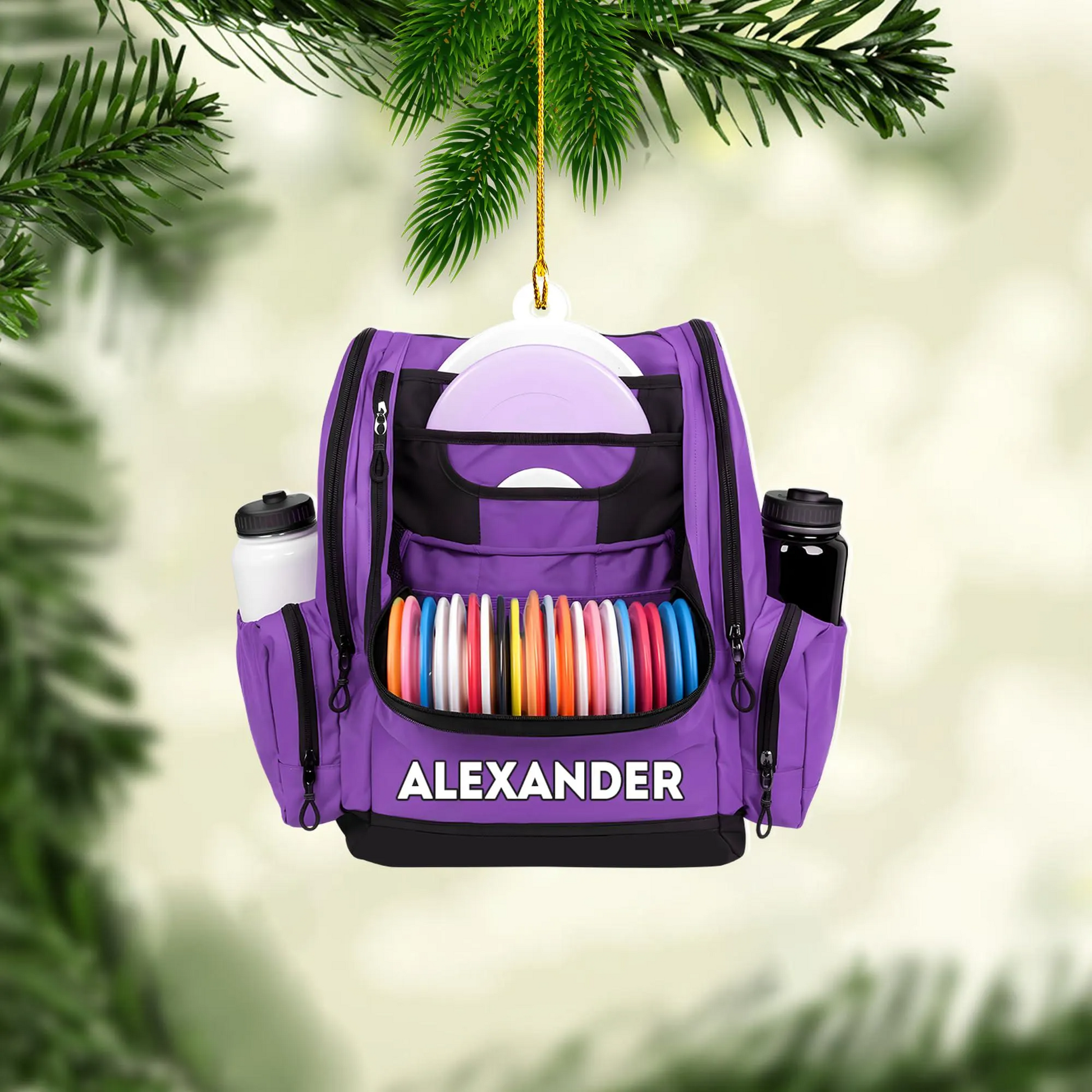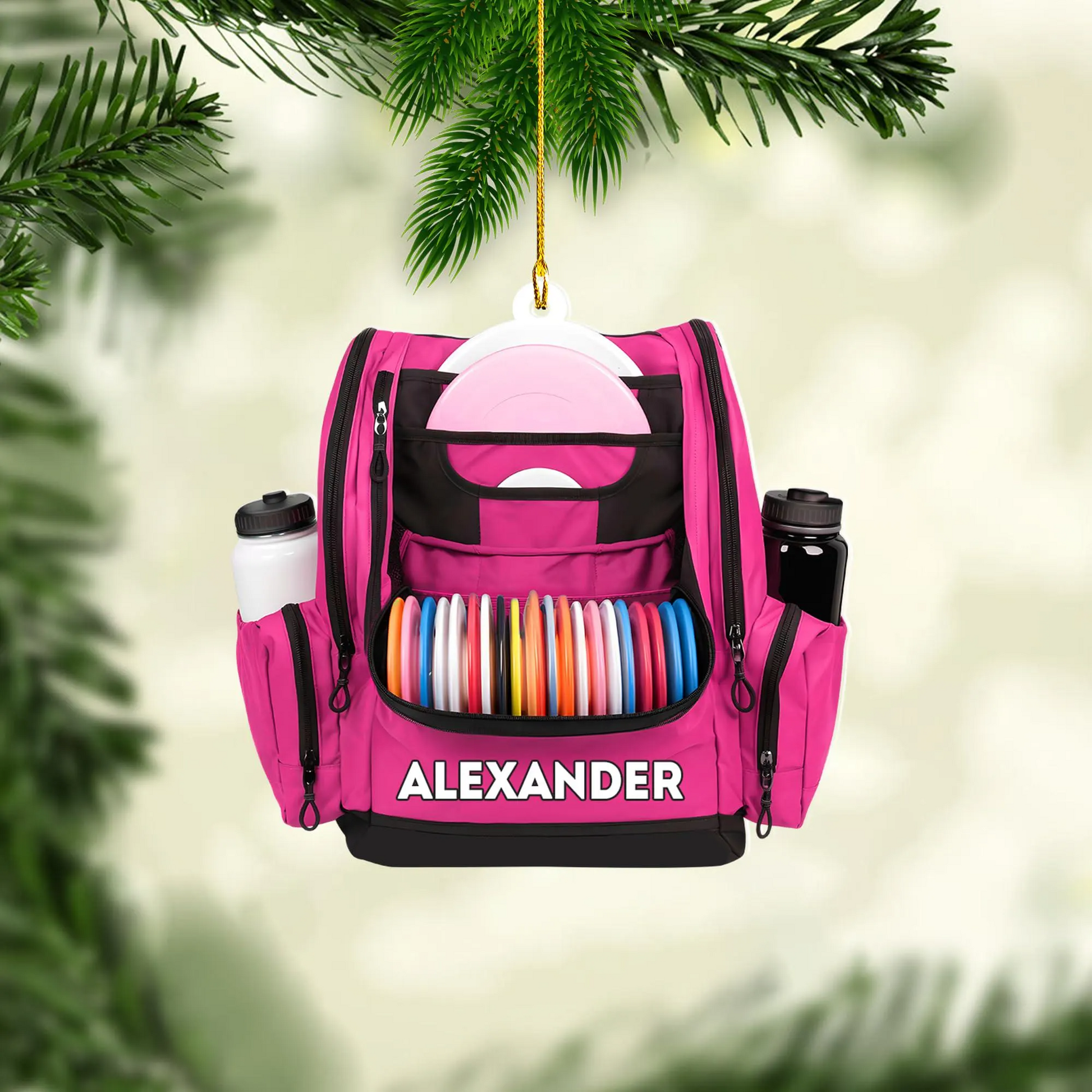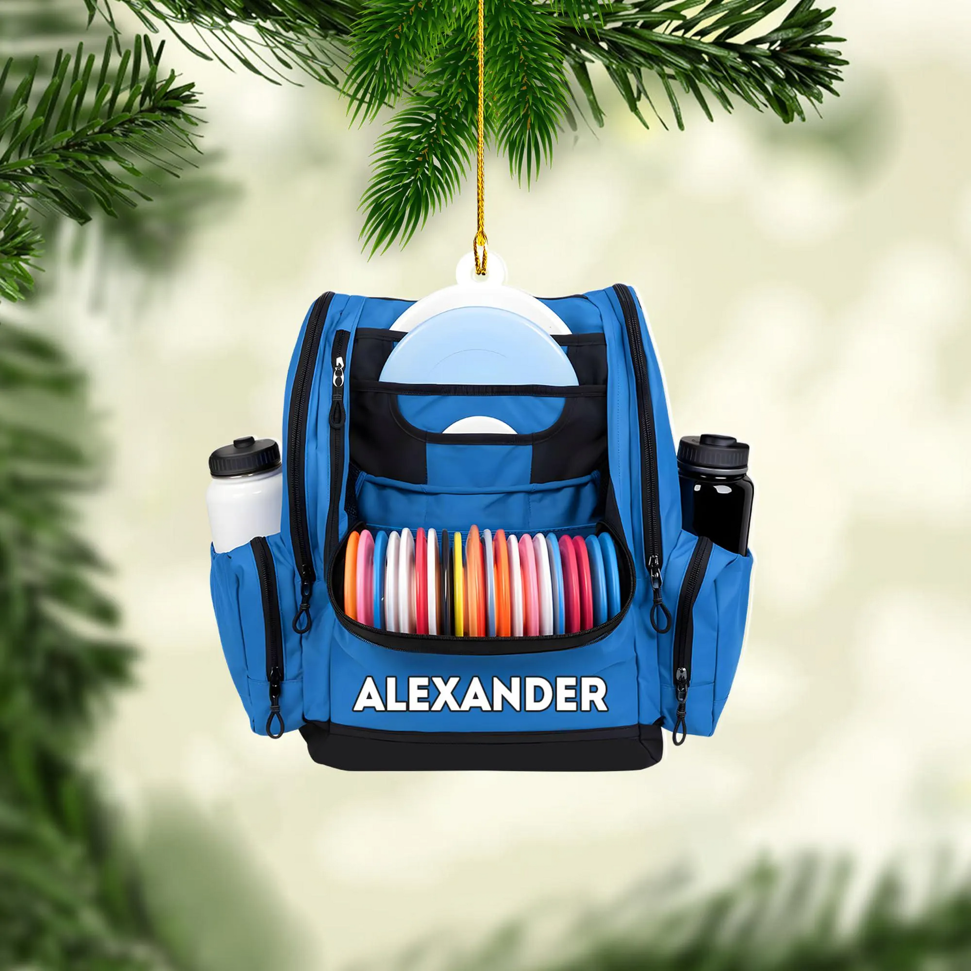 Custom Name Disc Golf Backpack Christmas Acrylic Ornament, Disc Golf Gift, Christmas Golf Gift
