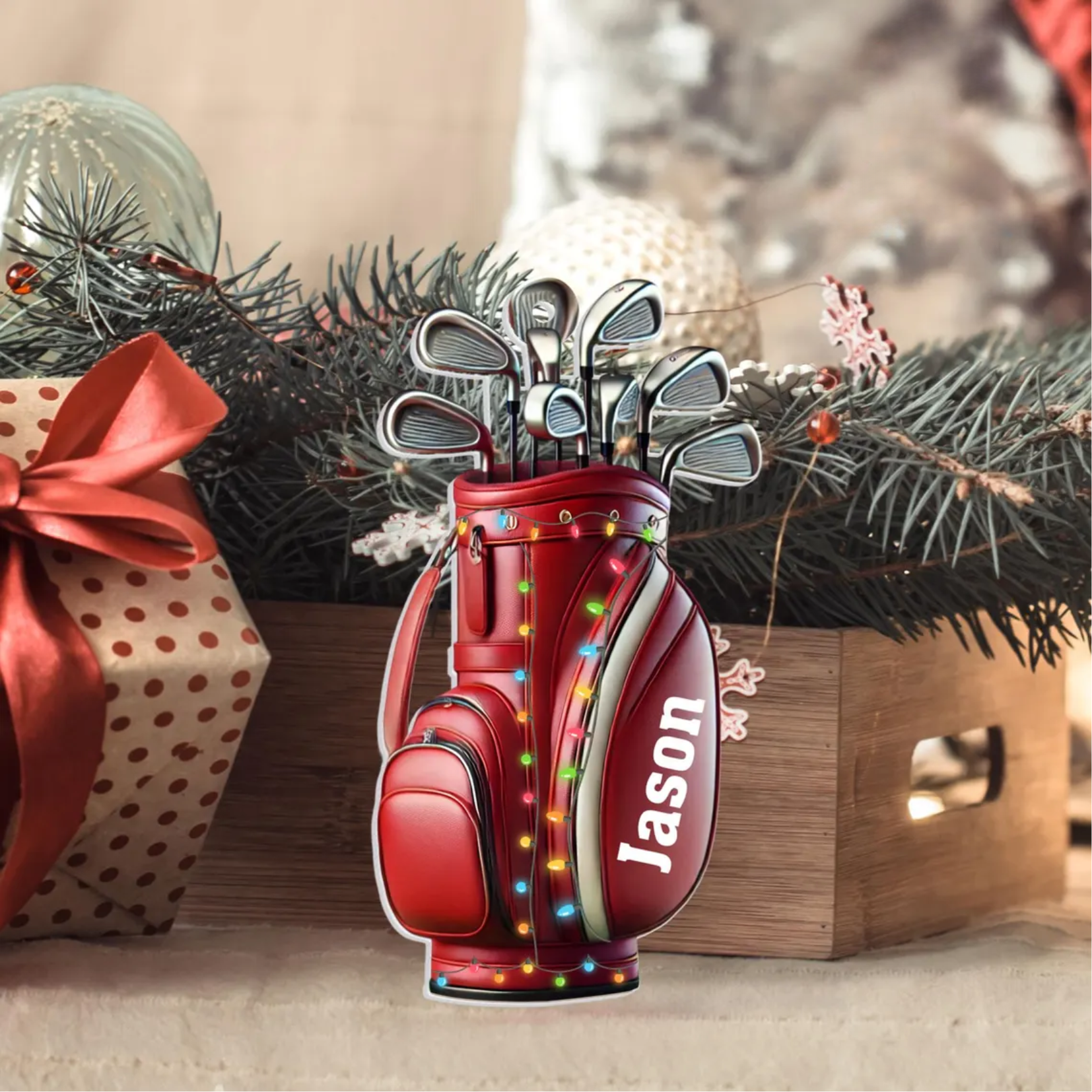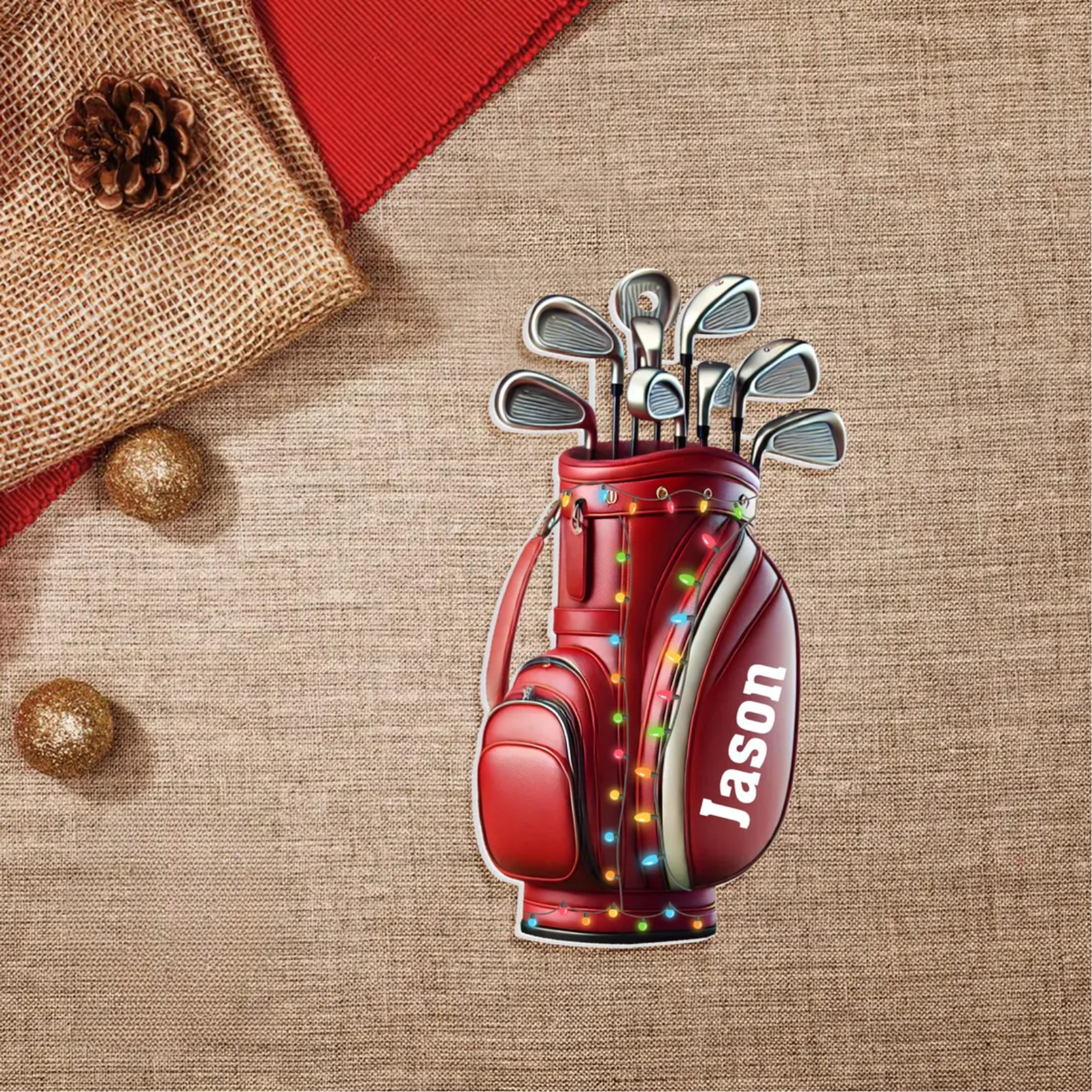 Custom Name Golf Backpack Xmas Ornament, Golf Keychain, Golf Accessories, Christmas Golf Gift