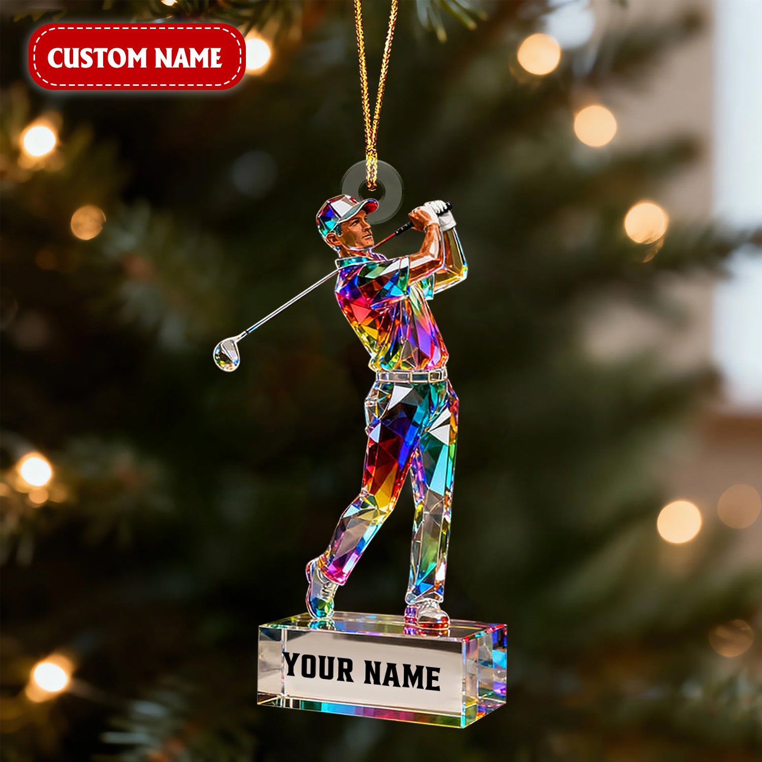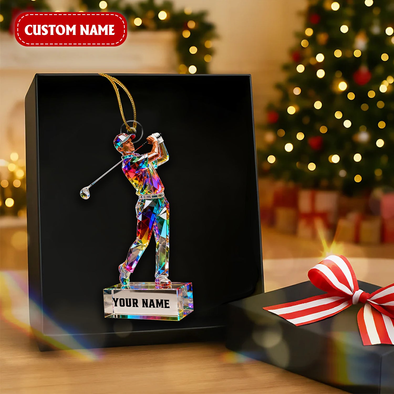 Custom Name Golf Pose Crystal Effect Christmas Acrylic Ornament, Gift For Golf Lover, Xmas Ornament