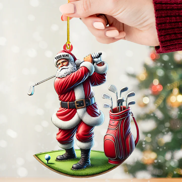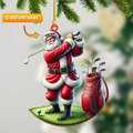 Custom Name Santa Claus Golf Player Xmas Ornament, Golf Keychain, Golf Accessories, Christmas Golf Gift